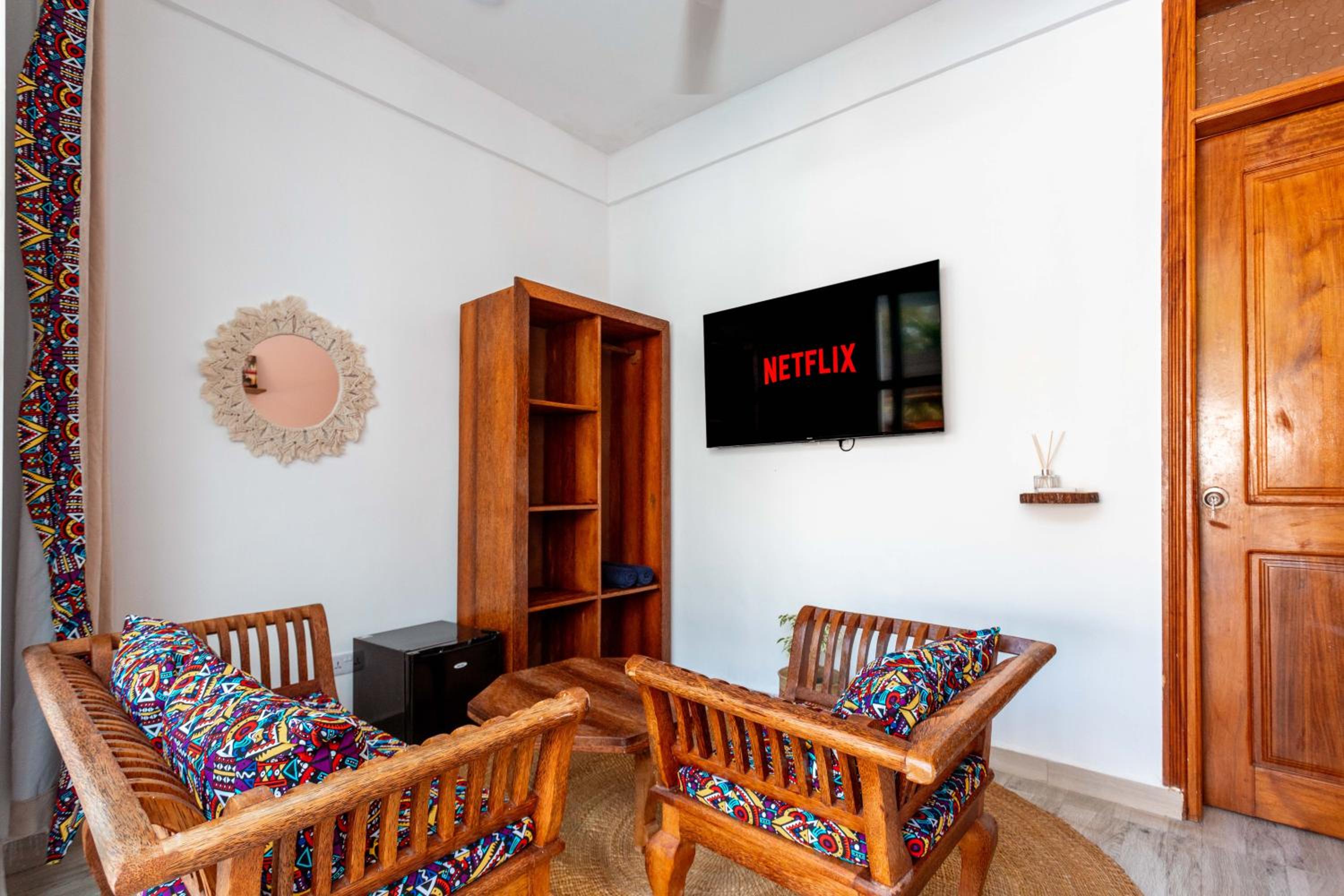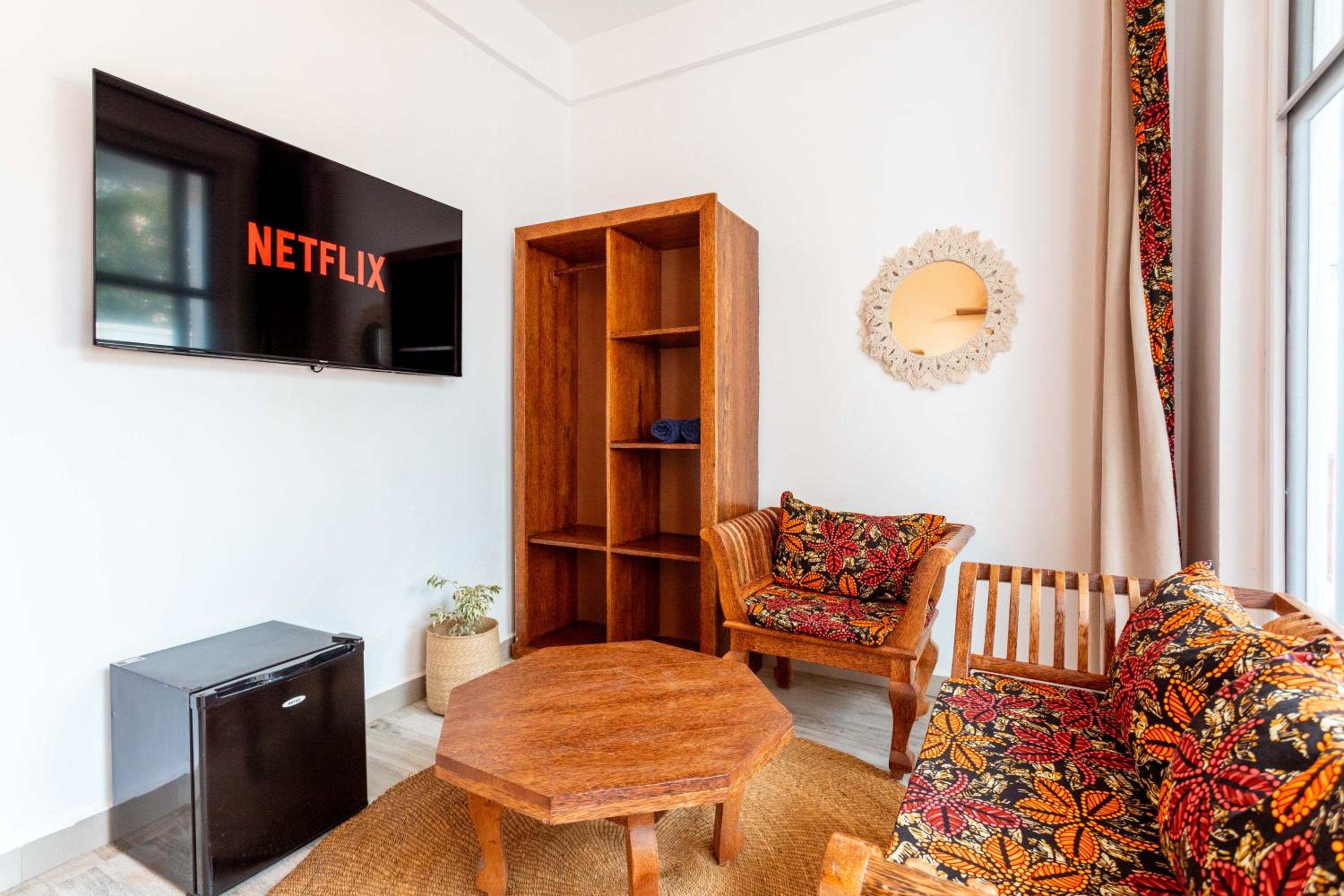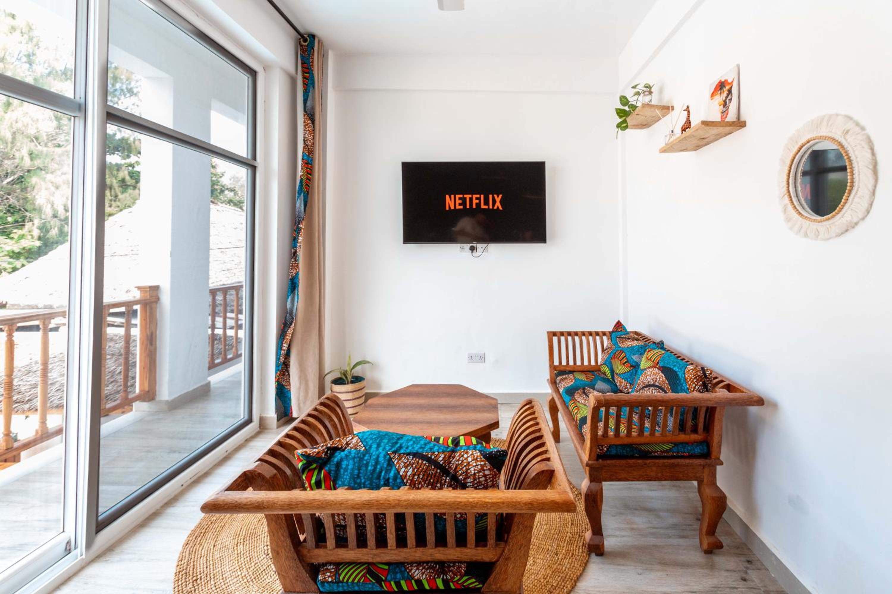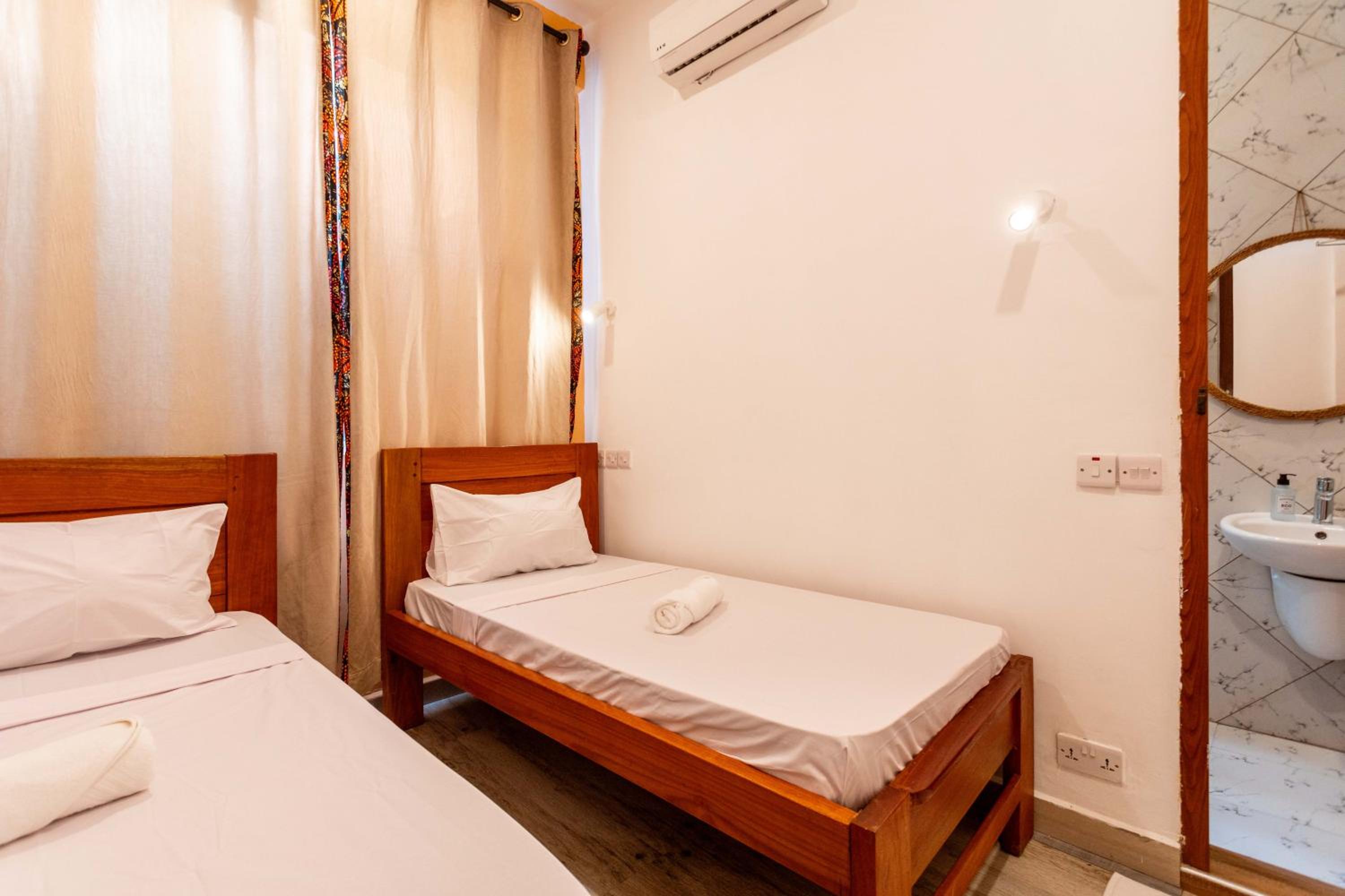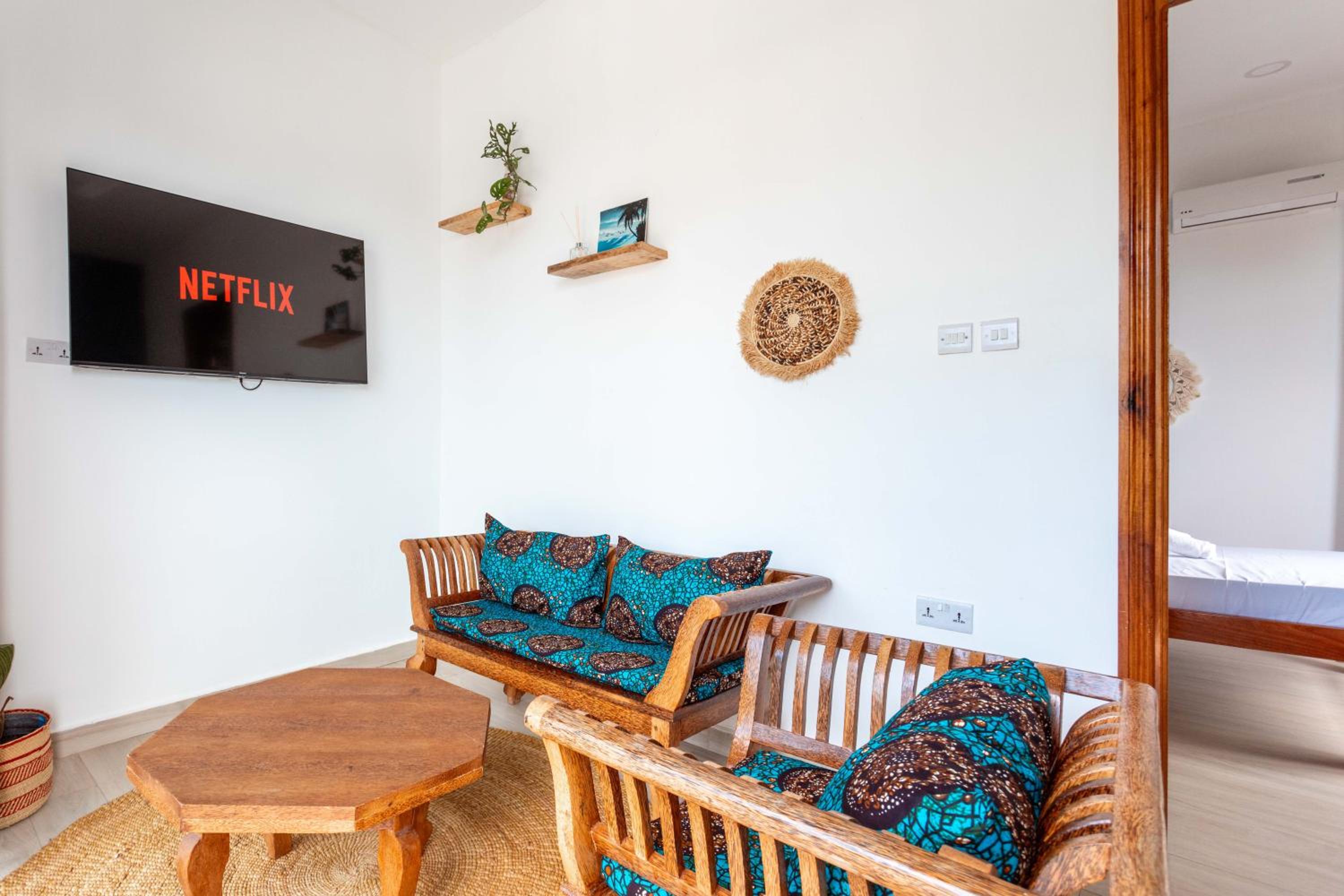 Unwind by the outdoor swimming pool, stroll through the garden, or lounge in the shared lounge area for a tranquil retreat in the heart of Jambiani.