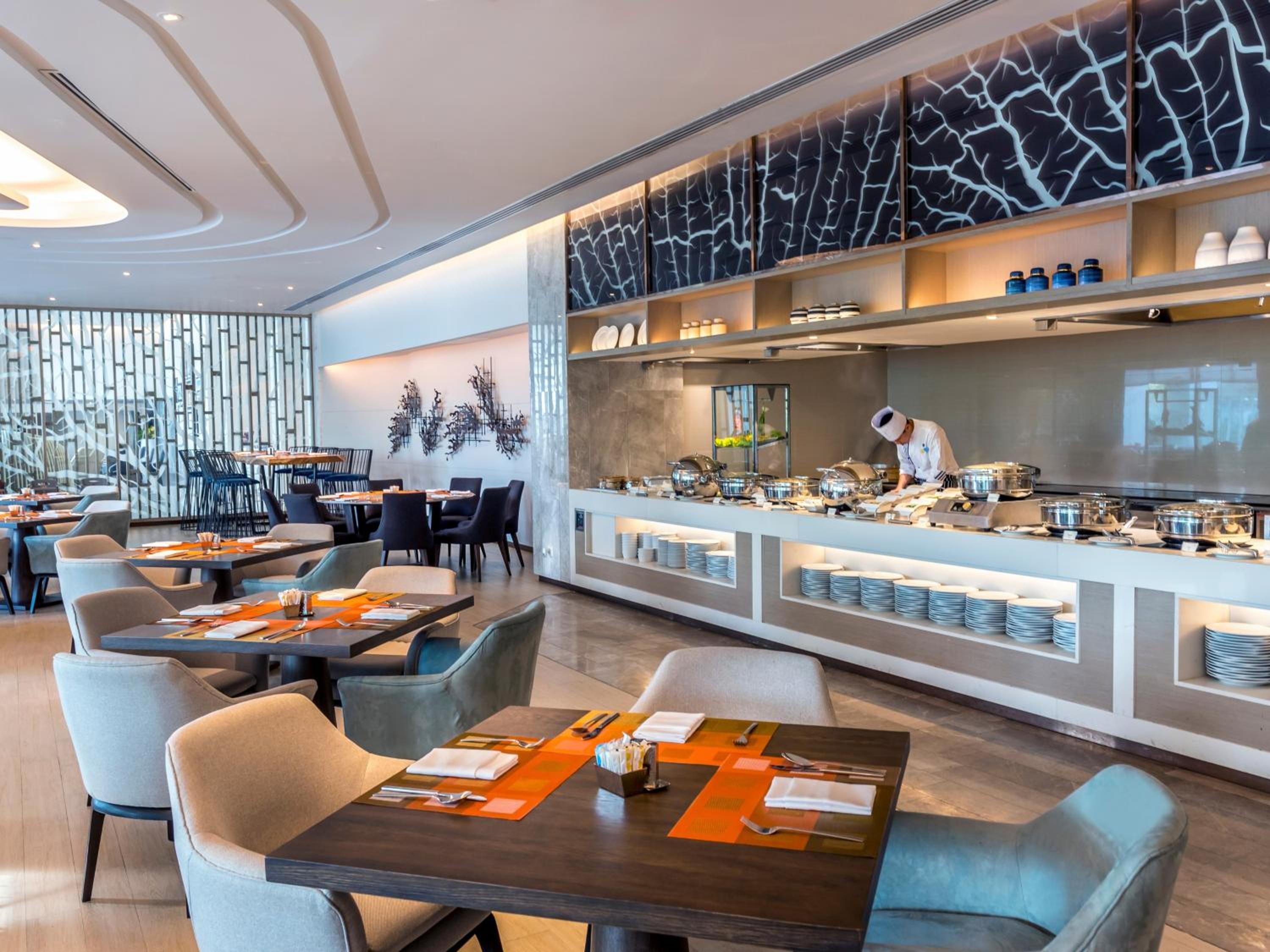 Indulge in a culinary journey at the all-day dining restaurant offering a diverse range of cuisines in buffet and a la carte options. Unwind at the lobby lounge or sky lounge with panoramic views, perfect for relaxing with drinks and small bites.