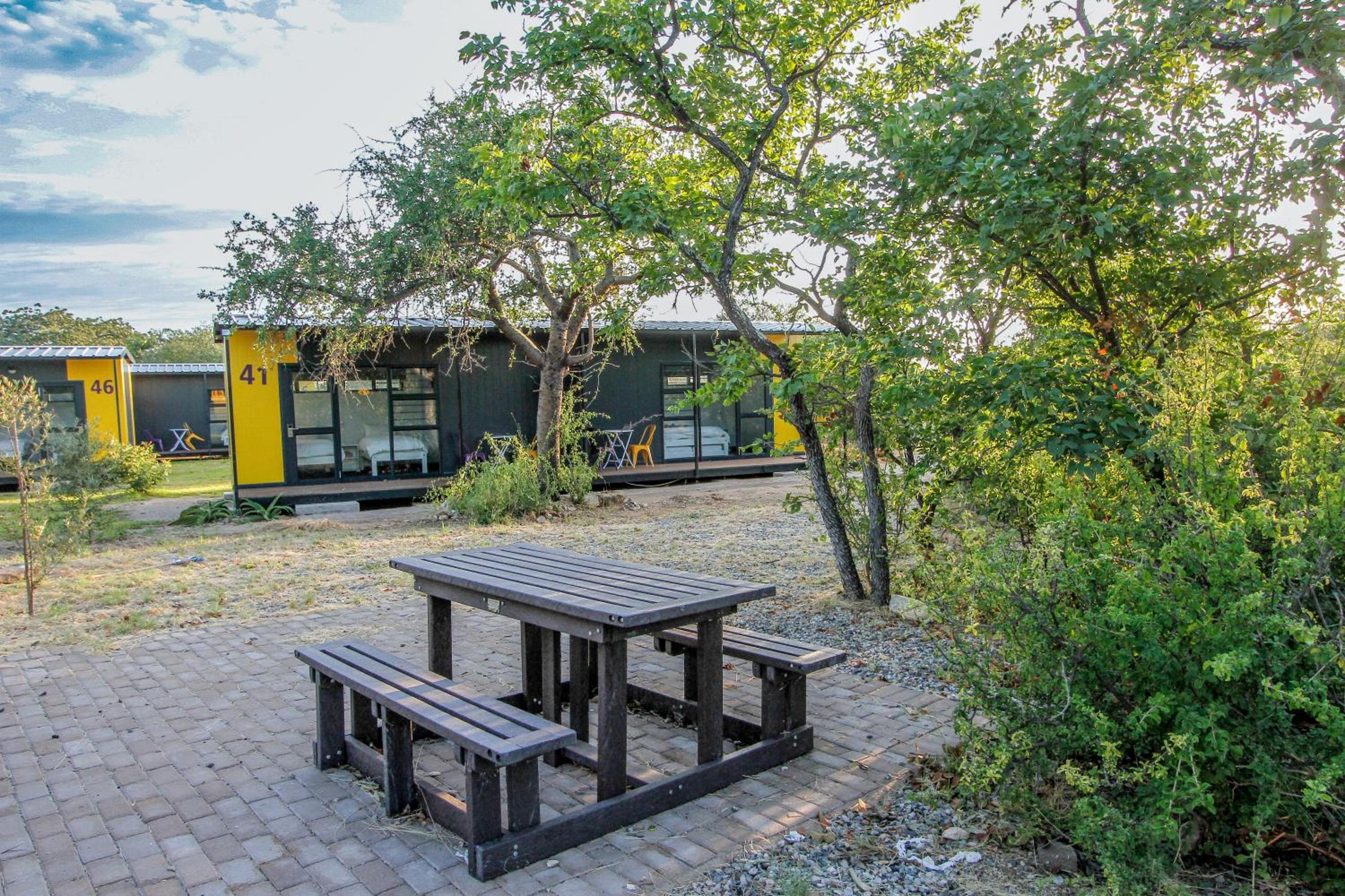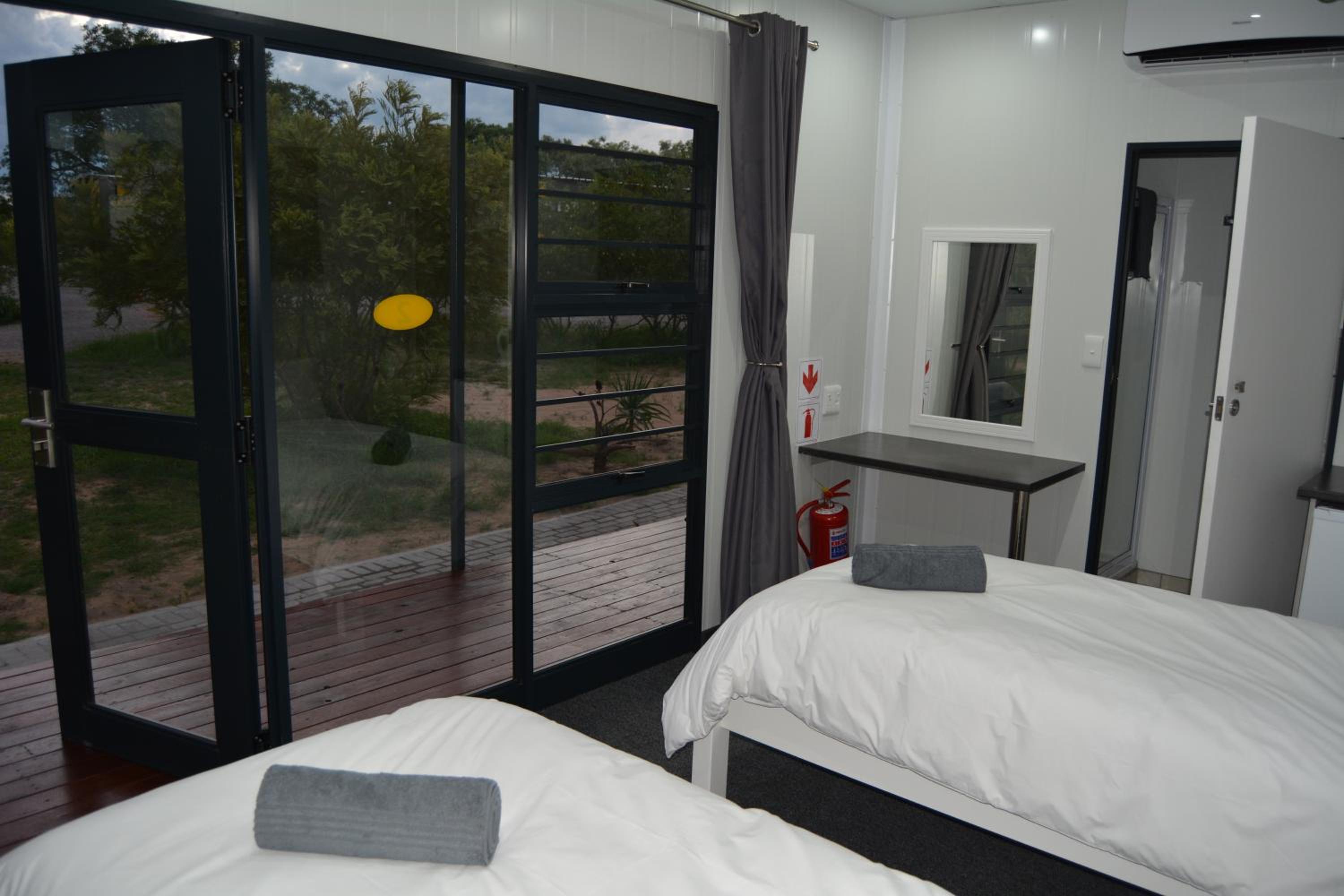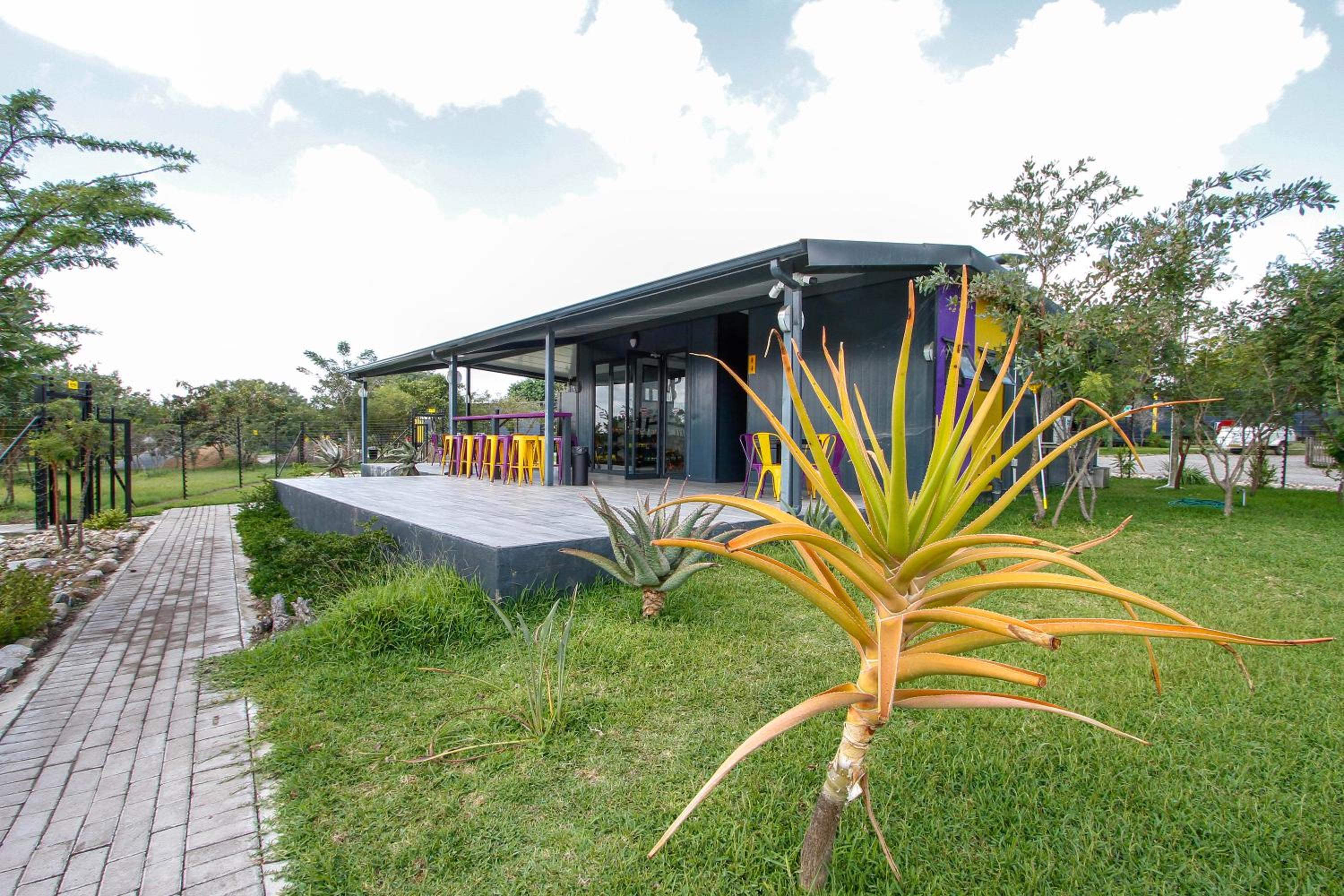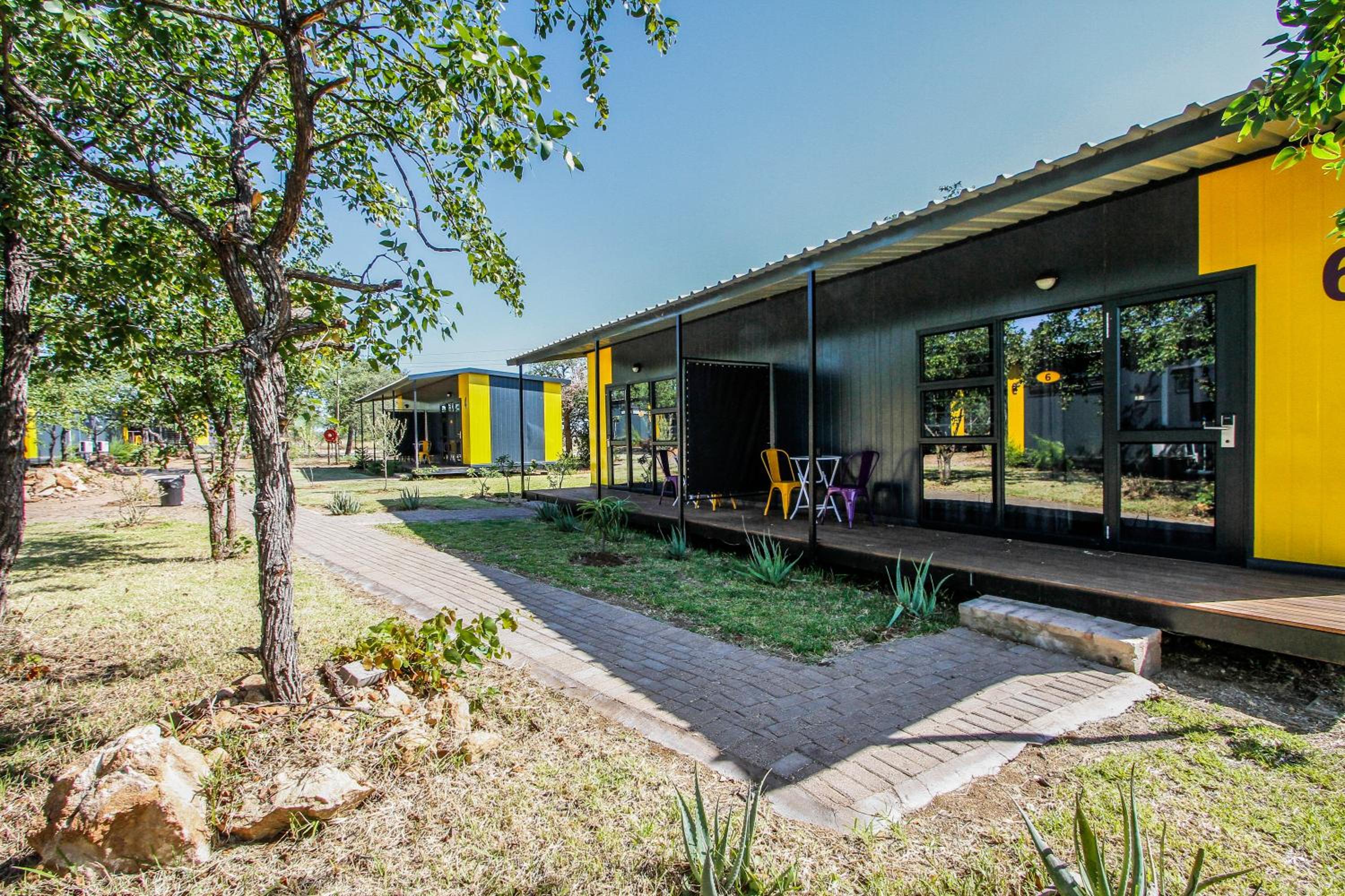 Hotel a 5 min do parque kruger cama muito confortavel !! E em container mais e muito confortavel !! Tem uma lanchonene na recepcao