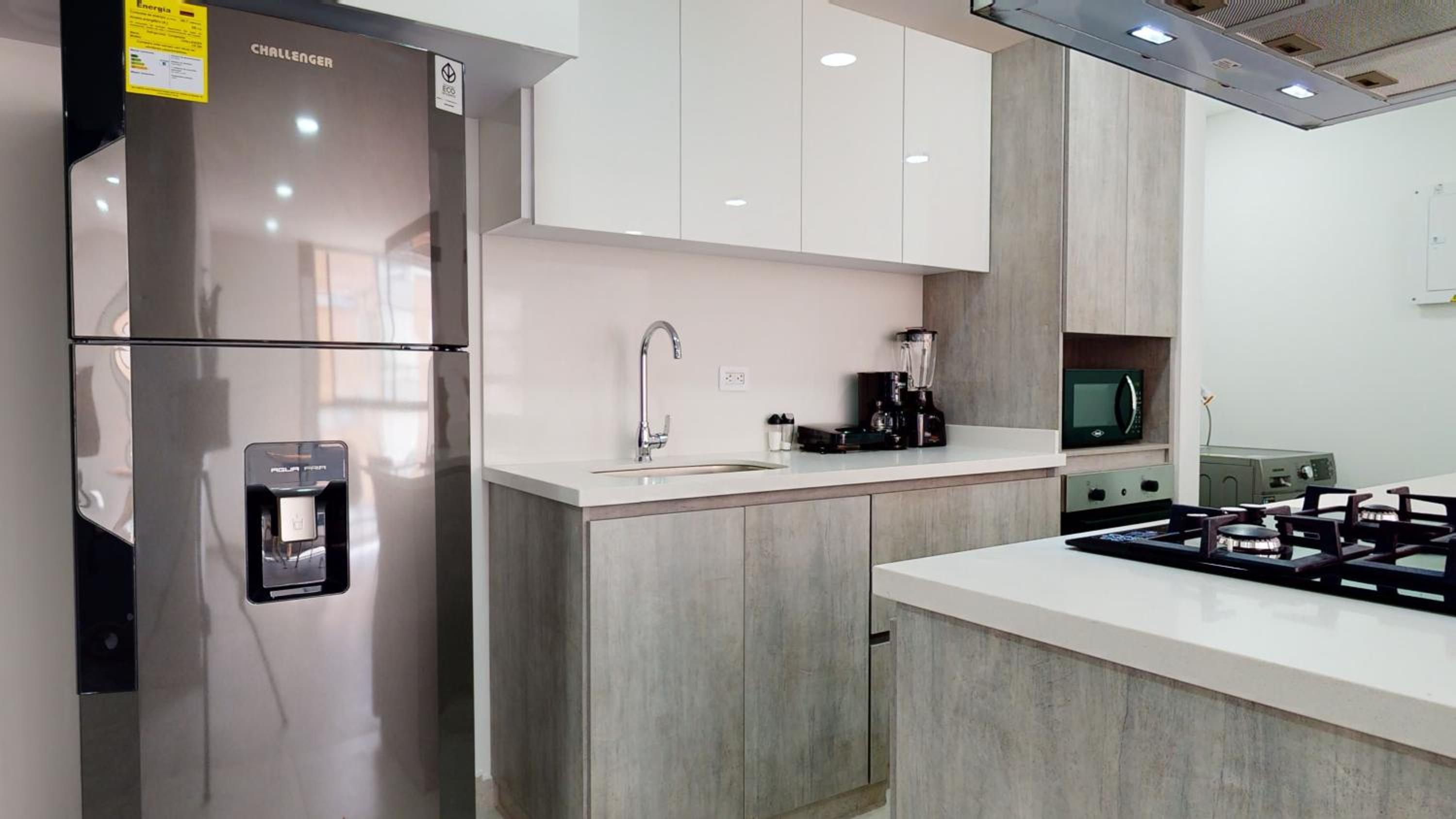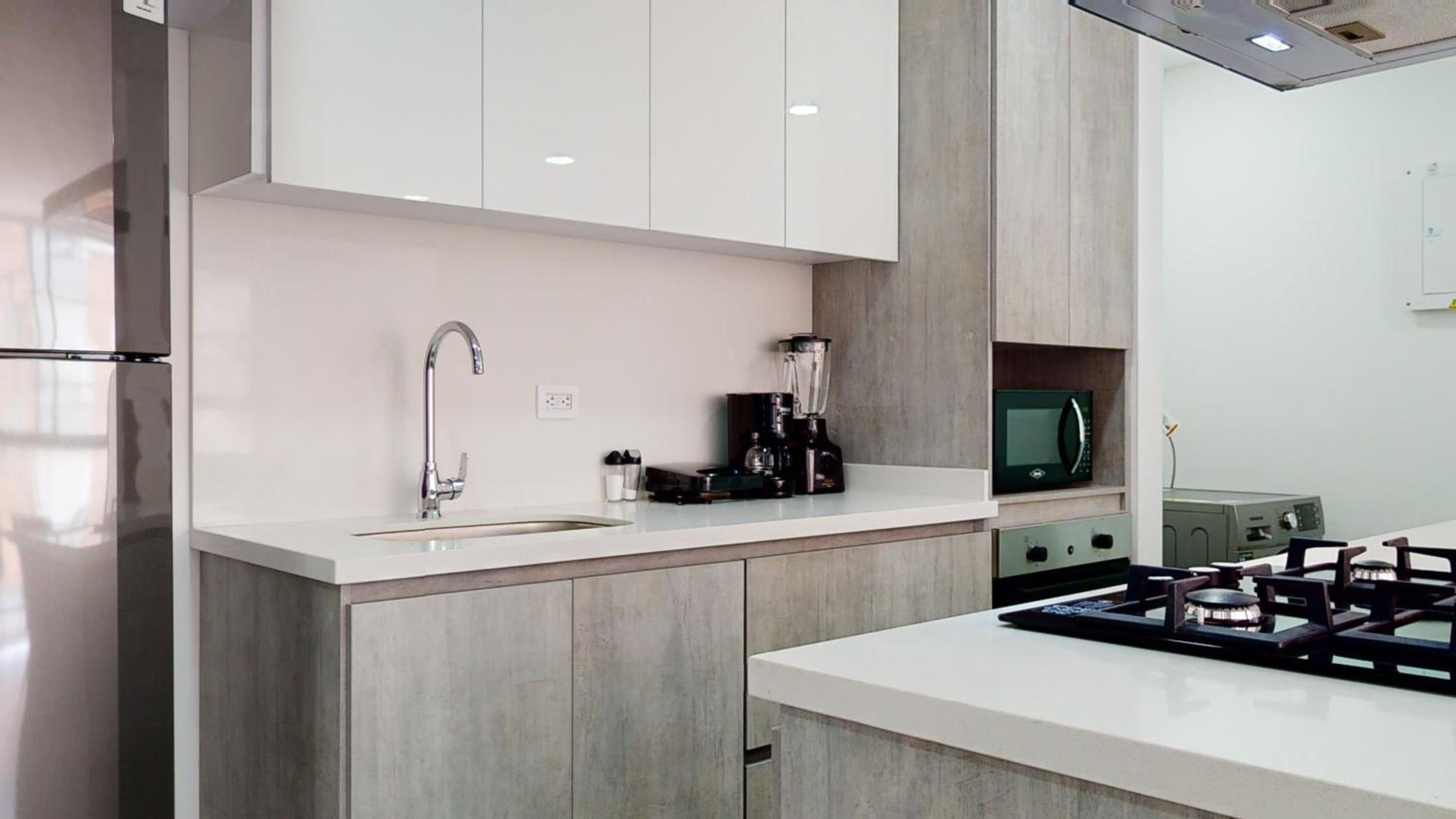 El apto estaba sucio en la cocina (acumulación excesiva de polvo en lavadora y nevera). Adicional para 5 personas para 6 noches nos dejaron solo dos rollos de papel. El lavamanos del primer piso estaba tapado y nunca lo solucionaron. Para estancias de más de 7 noches supuestamente había incluida una limpieza y no nos la dieron a pesar de pedirla bastante.
