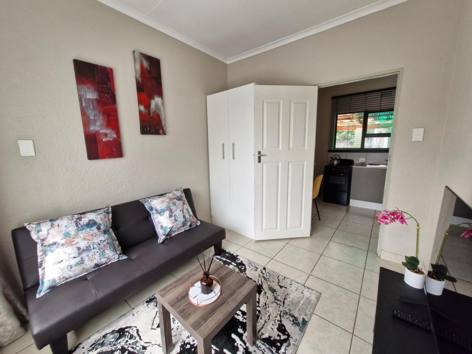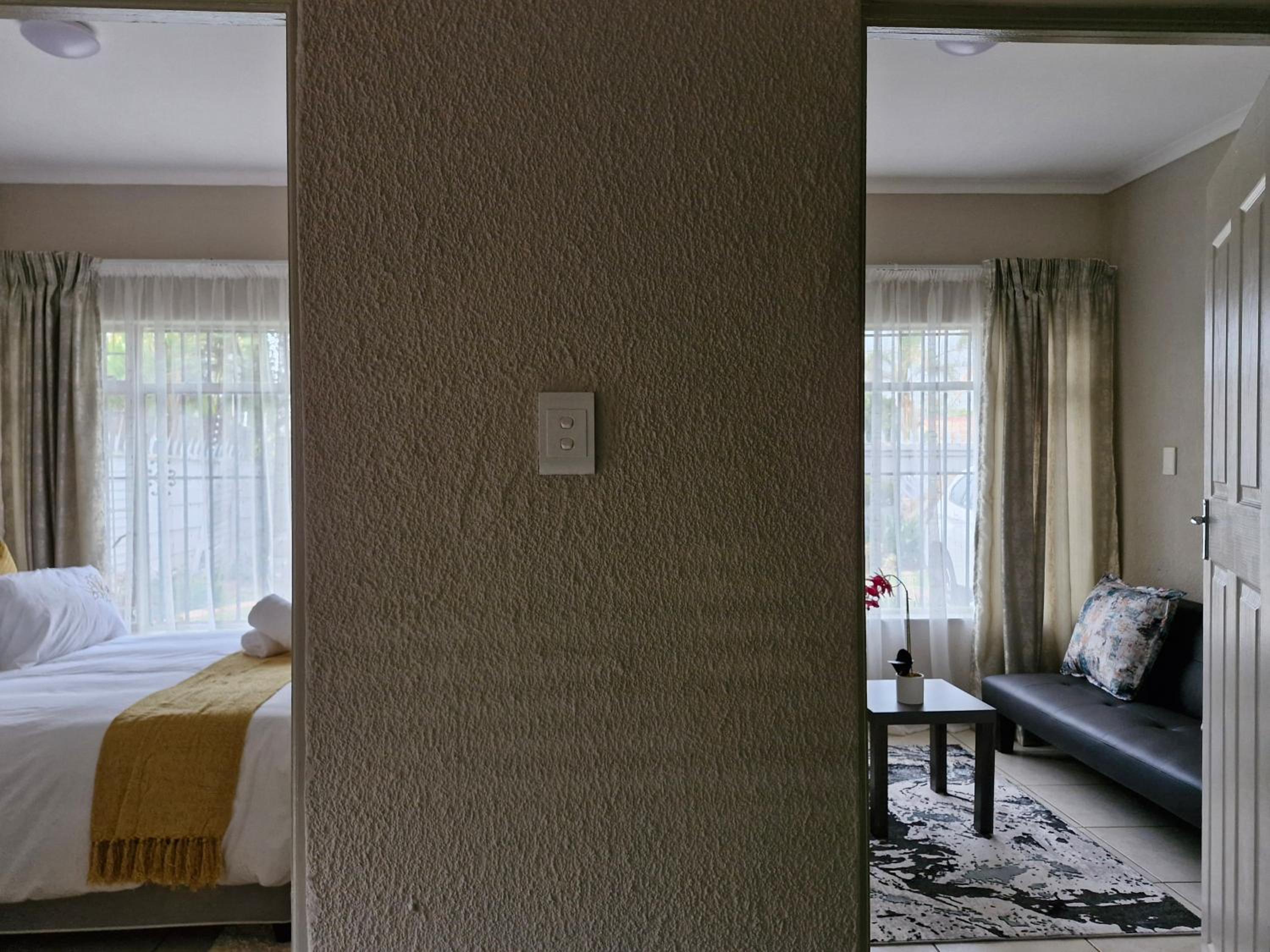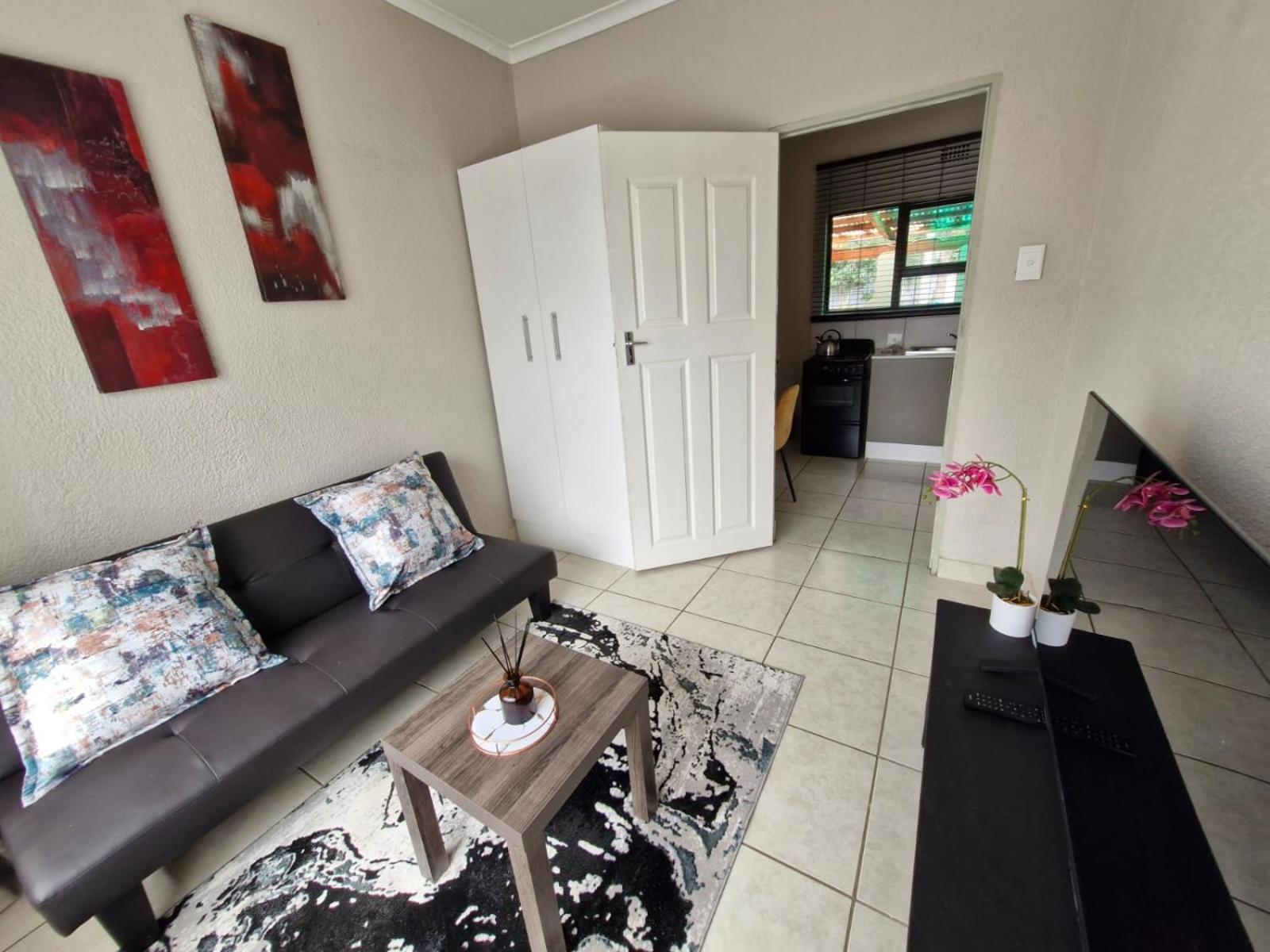 Guests can unwind in the garden or explore nearby attractions like Sandton City Mall.