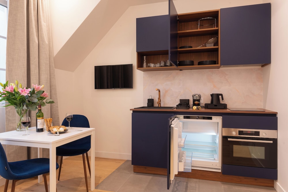 The location is extremely convenient, the studio ideal for a single person or couple. Everything was new, and the bed comfortable. A quiet oasis next to the station.
