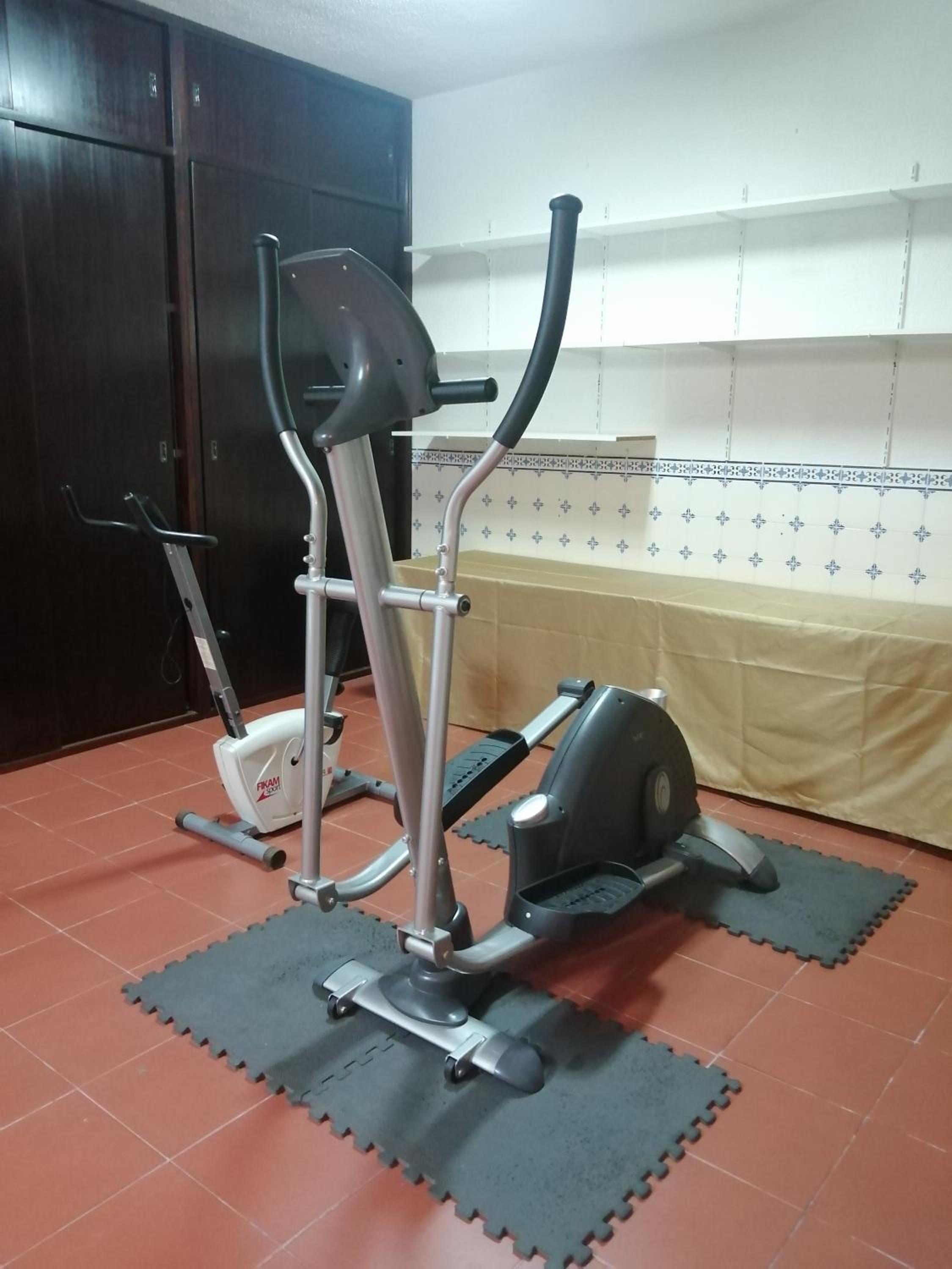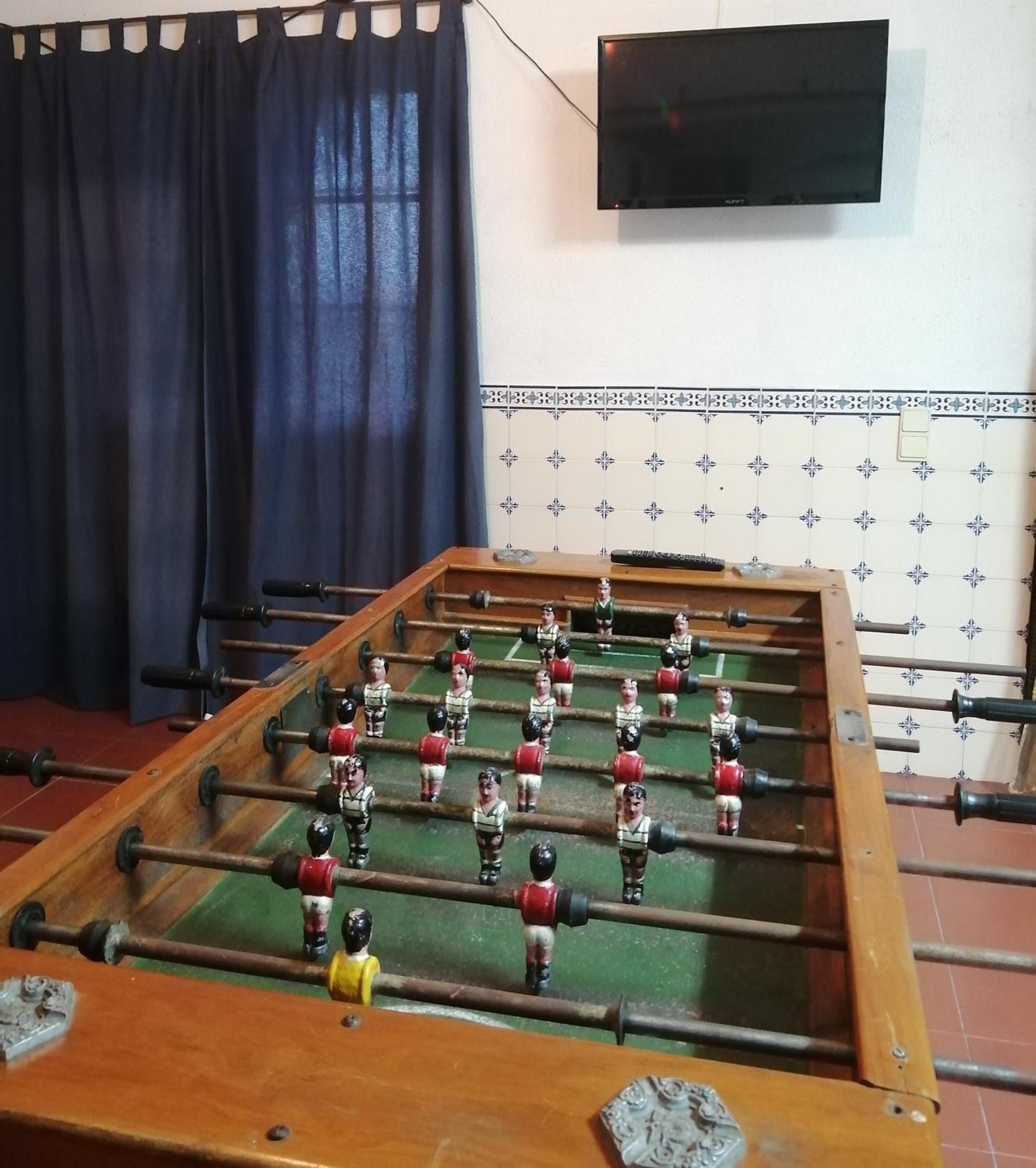 O quarto é super espaçoso e tem de tudo: frigorífico, sofá, entretenimento com mesas de matraquilhos e mini-ginasio.