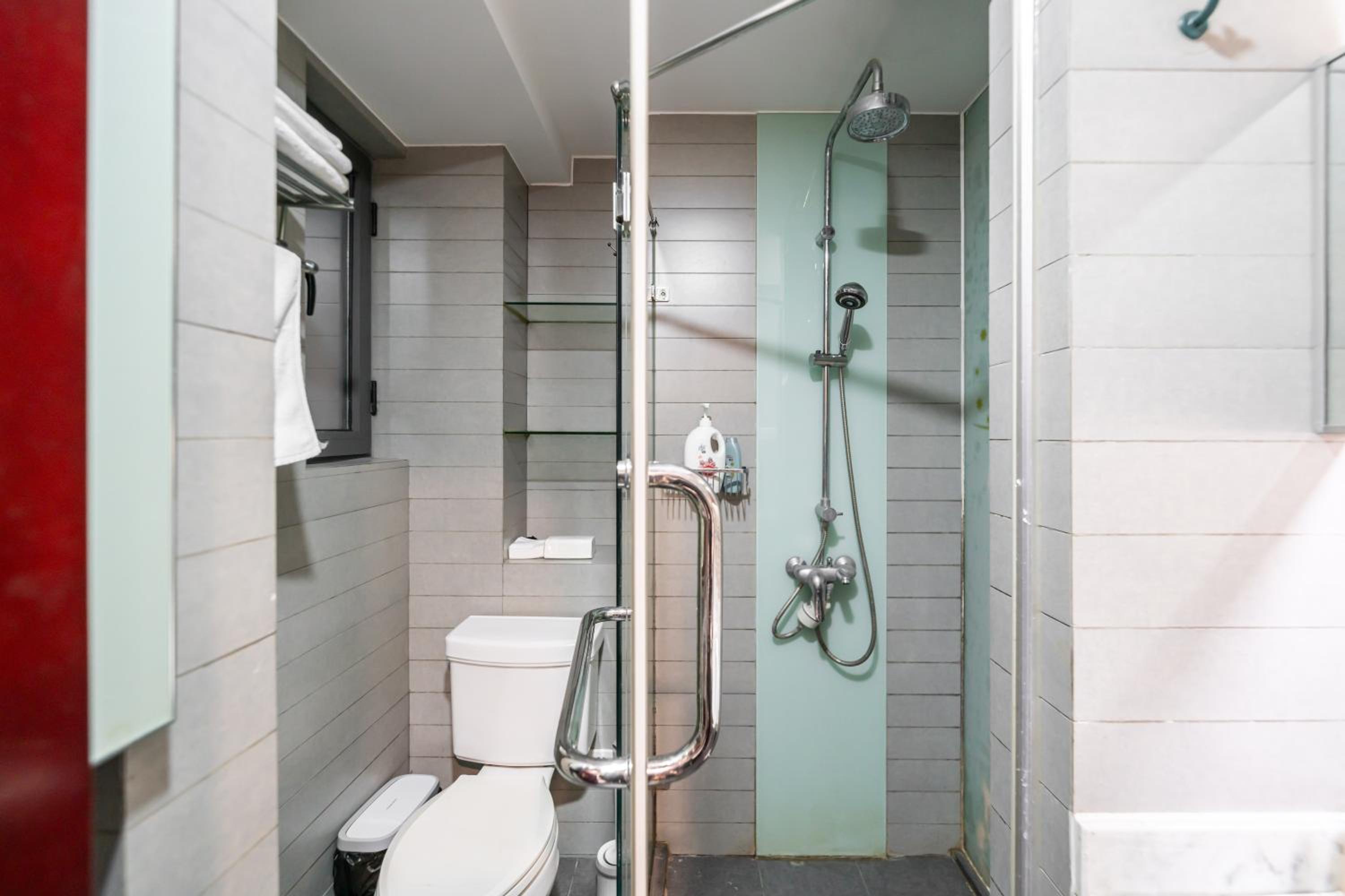 Is a big room with 2 double bed. very spacious, even you open up 4 big luggage u still have lots of spaces. Big TV and can watch lots of movie too. Staff service are excellent. Text them for help they try their best to help us. There is a small kitchen in the room, a washing machine too. Metro station is 2block down the road not far.