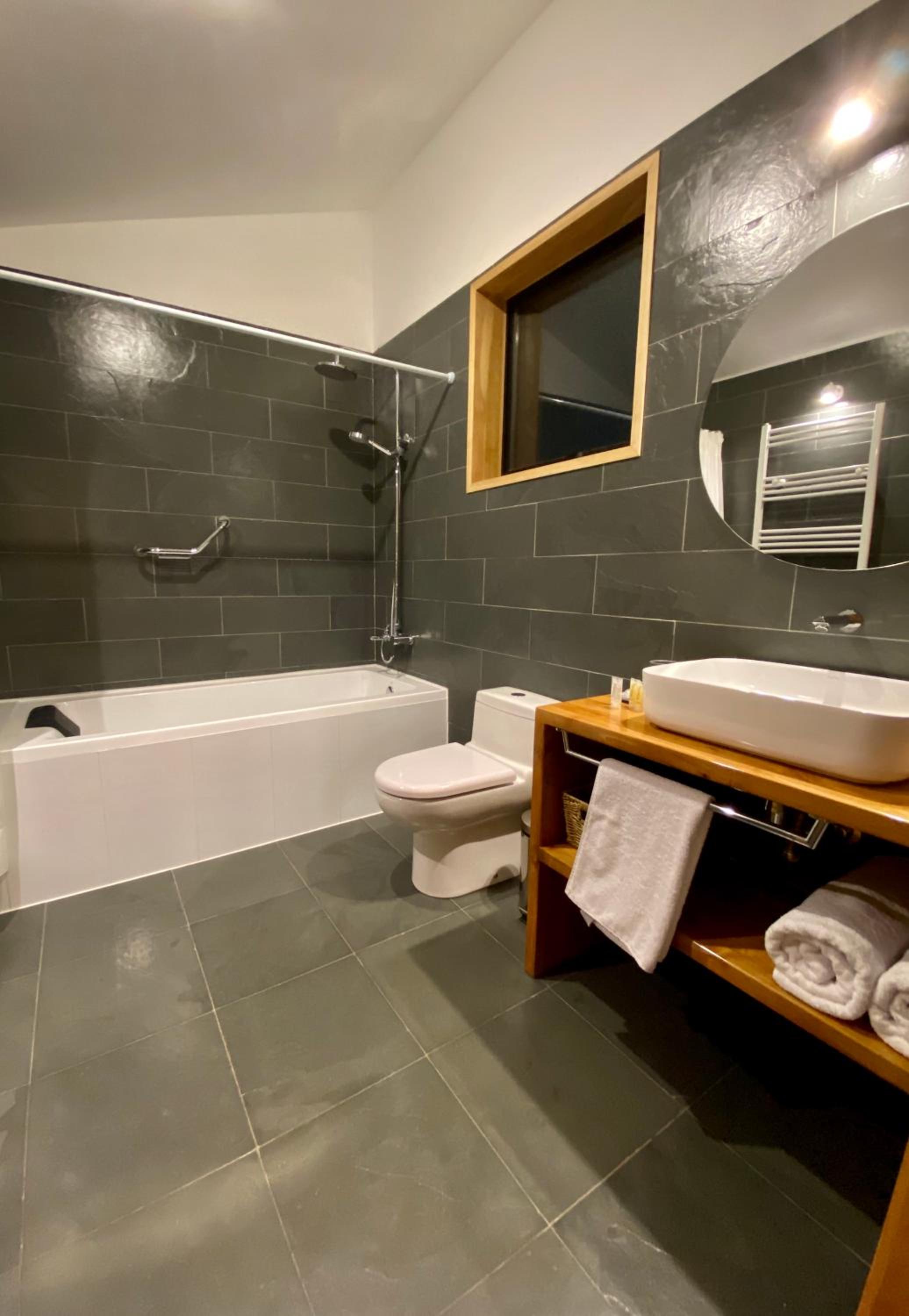 The location was a bit tricky as it is tucked away about 1.5 km out of main town centre. It is architecturally built, small boutique hotel. Laura (Owner) was in regular contact via what's app and gave directions and answered any queries. You would need a car. The room was large, soft comfy beds, beautiful views across the water and it was very quiet. The bathroom is large, heated and had a bath and shower, hair dryer etc. This was by far the best hotel we stayed in throughout our time in Chile and Argentina. The dining room/ breakfast area is in a separate room with views and Jocelyn will cook eggs as you like them. Small, quiet , luxurious and just what we needed after Torres del Paine. Would definite;y recommend this hotel to others.