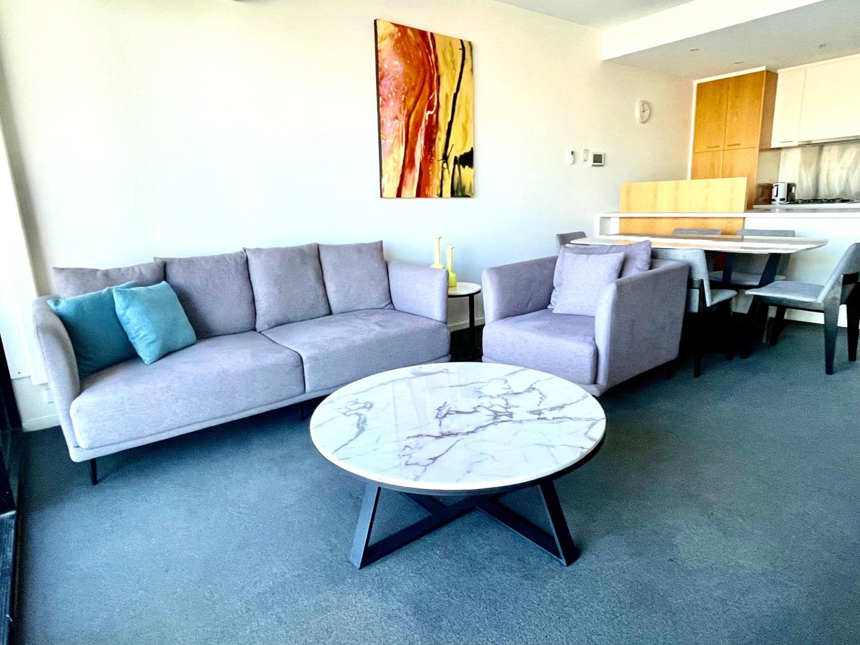 everything is conveniently nearby. Woolworths, IGA, free city tram, restaurants, ferry, cafe all within walking distance and a few minutes from the apartment. Very close to Marvel Stadium