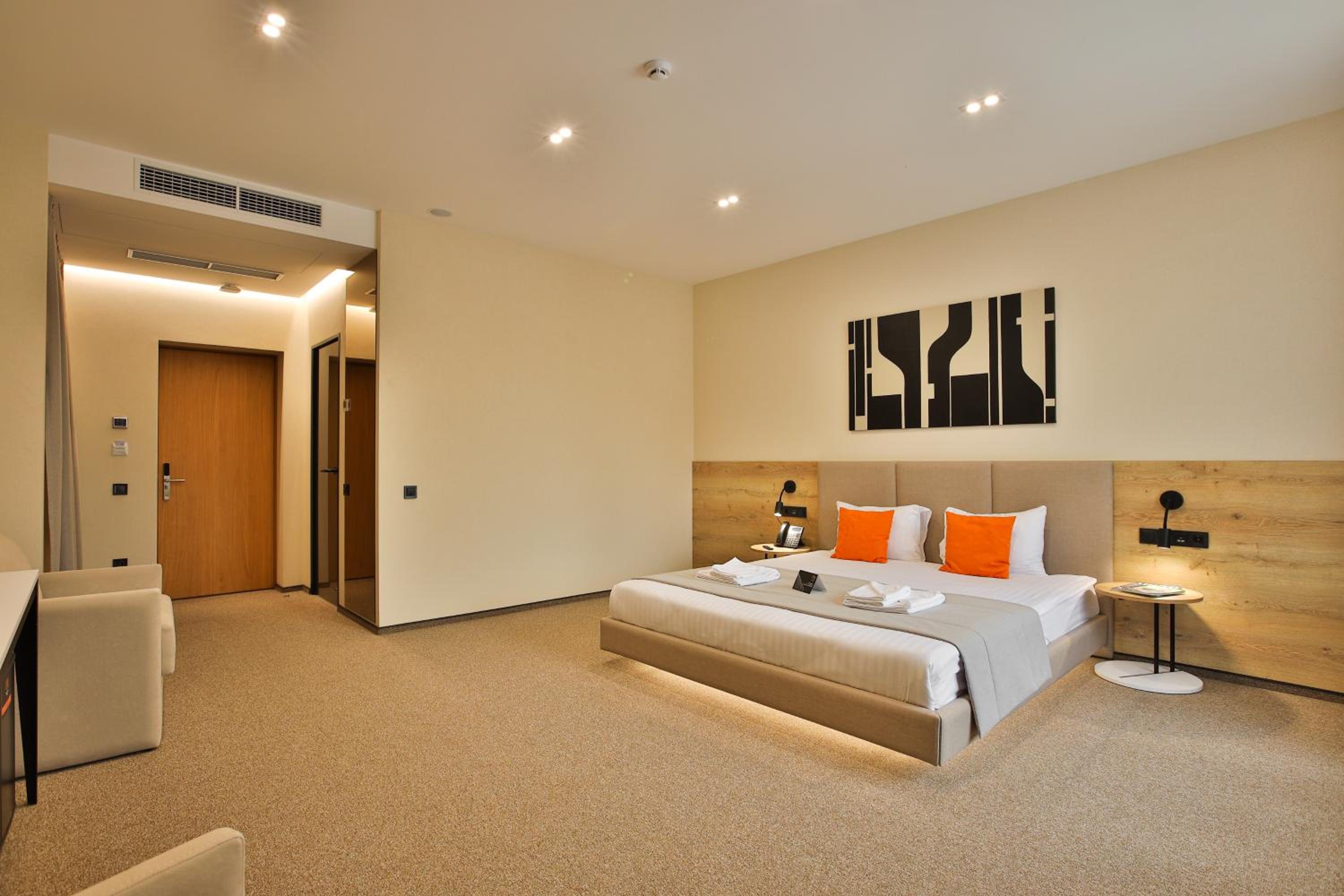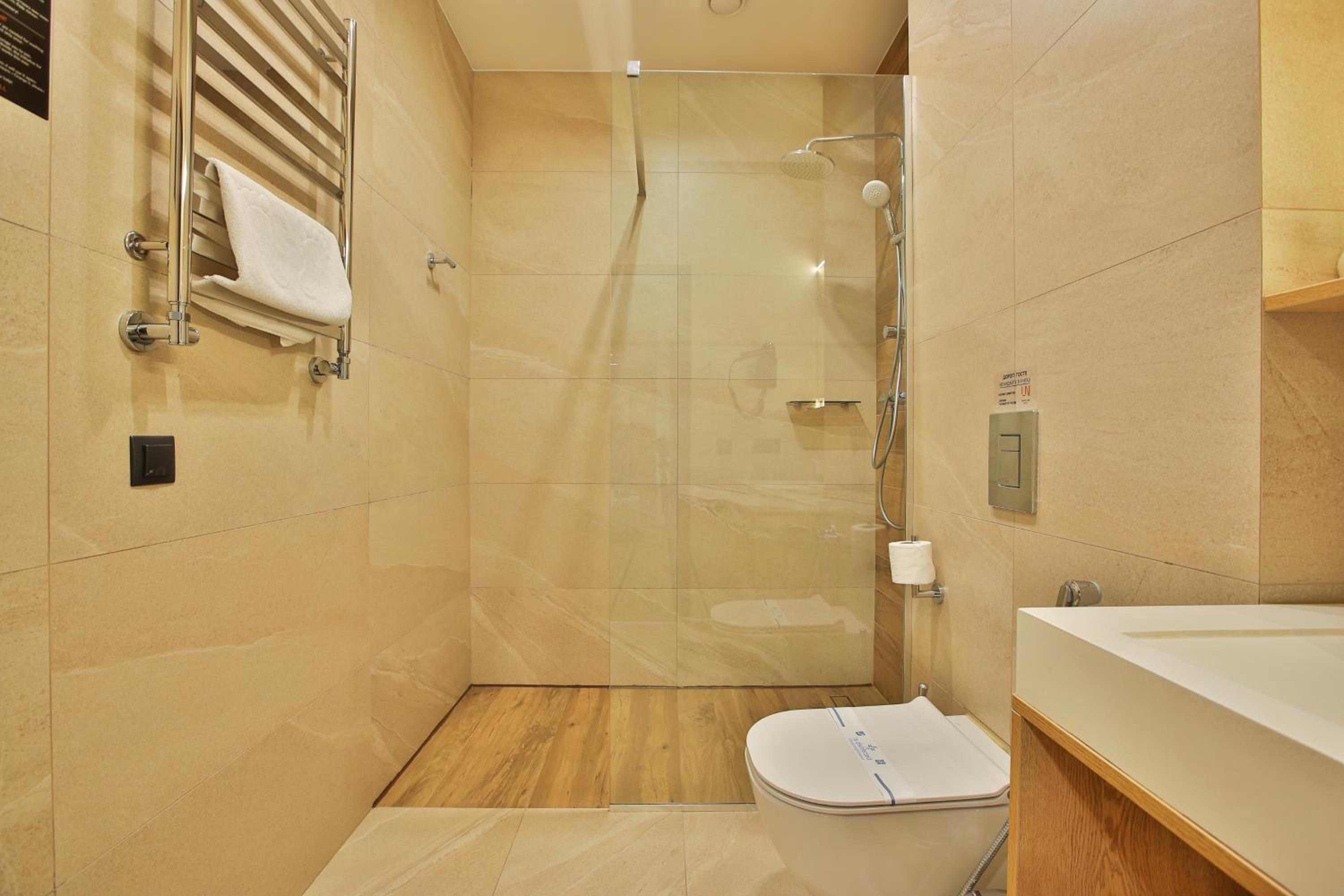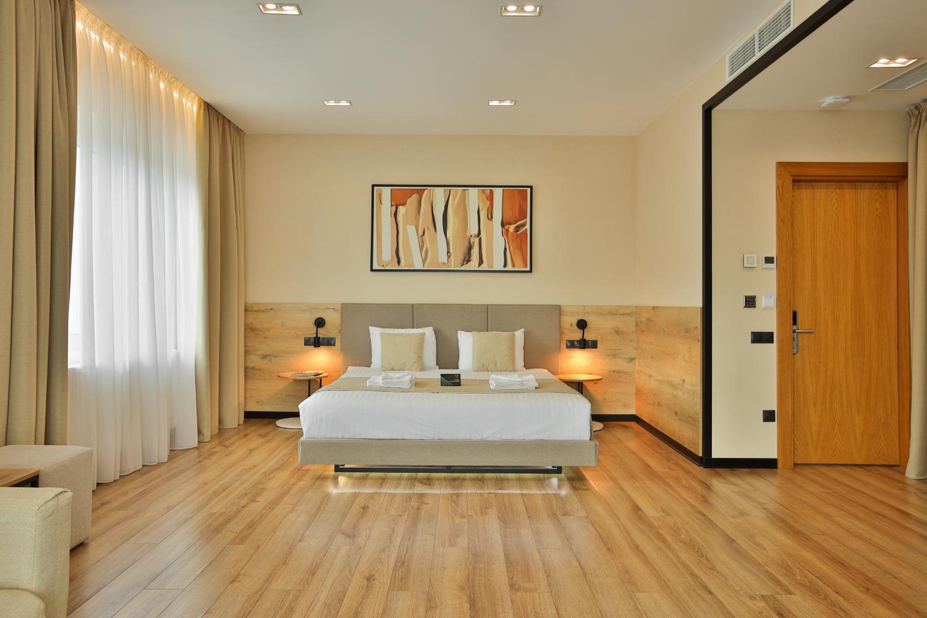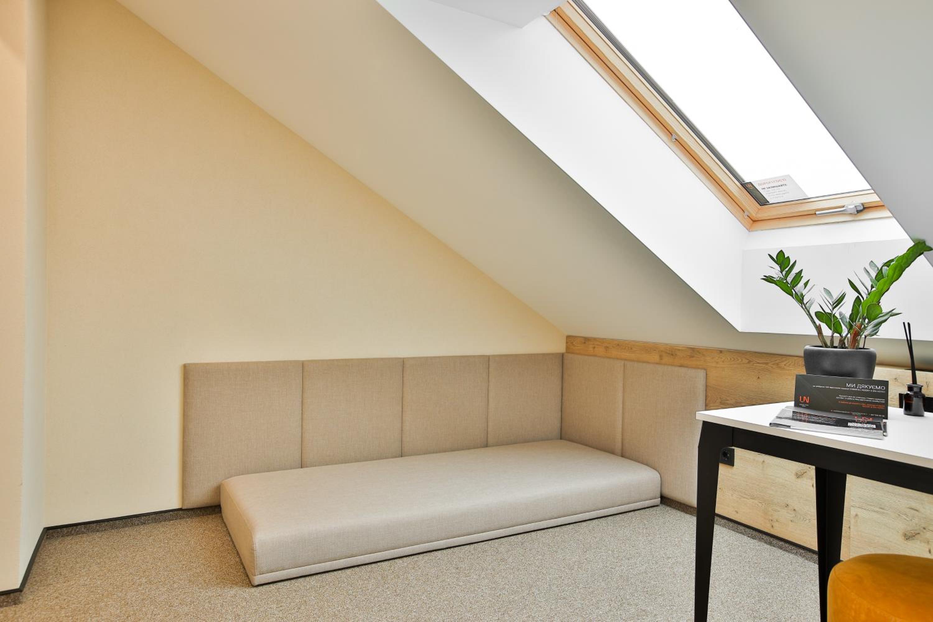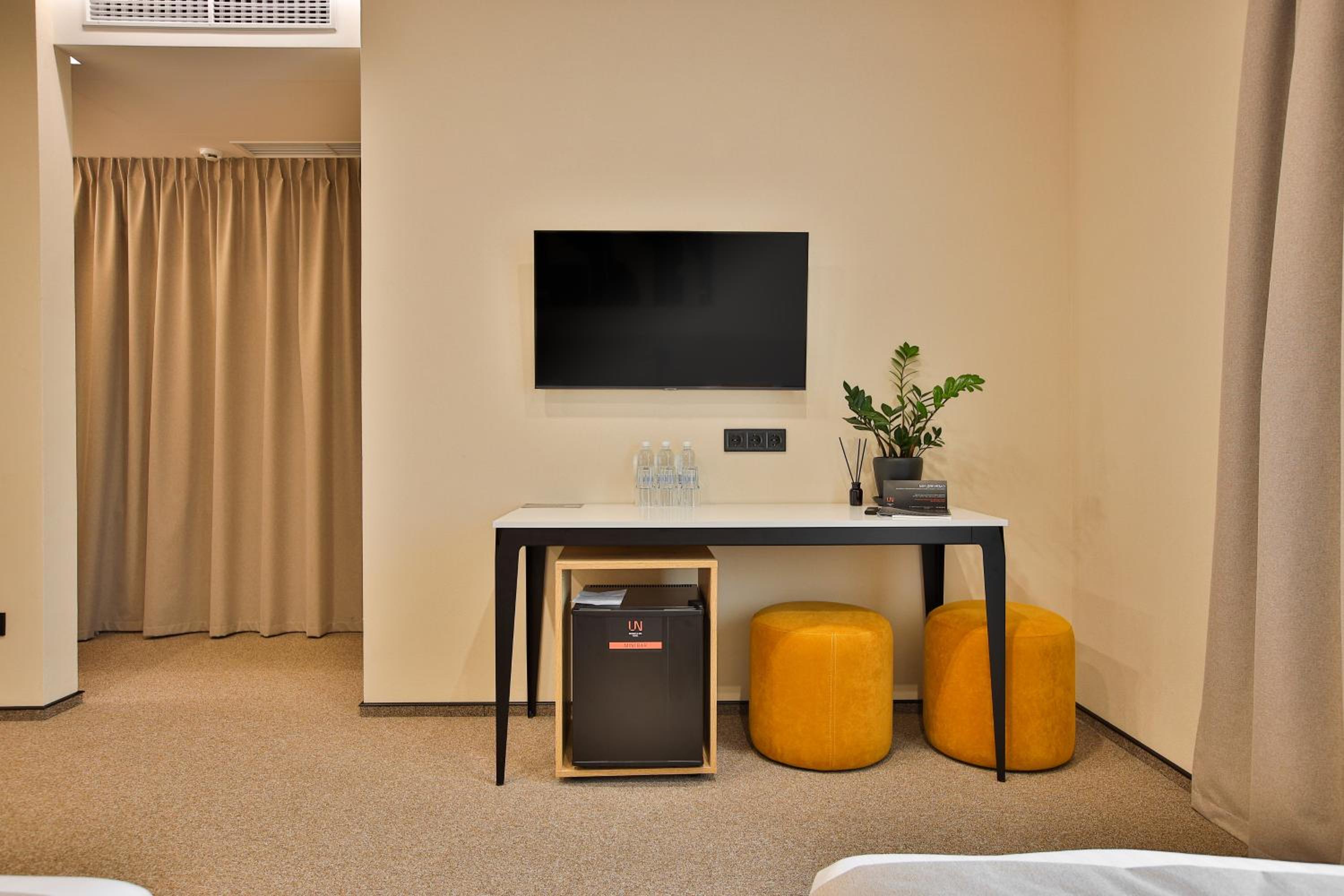 сучасний дизайн, просторий номер з балконом. величезне зручне ліжко, все чисто, зручний диван, два телевізора з інтернетом( ютуб і т.д) наявність хоч і не великого але спа, поруч андерхіл парк