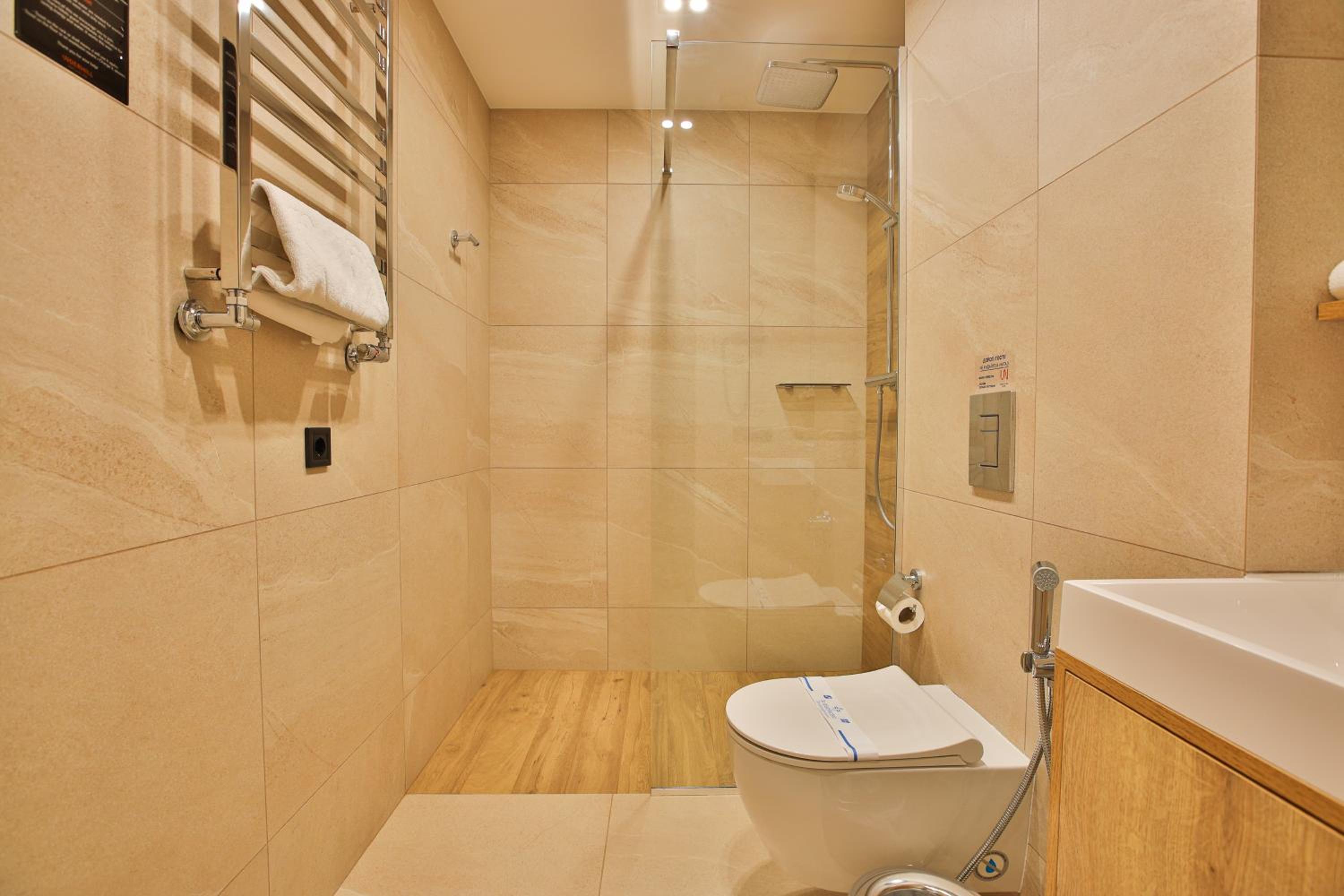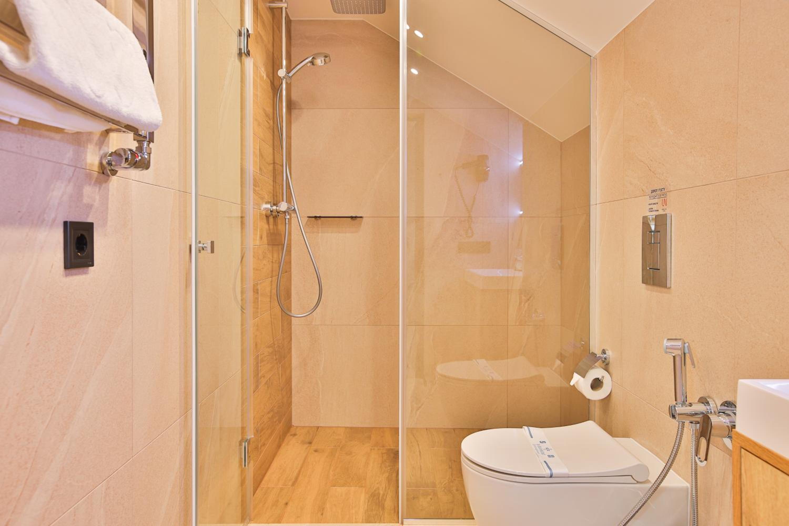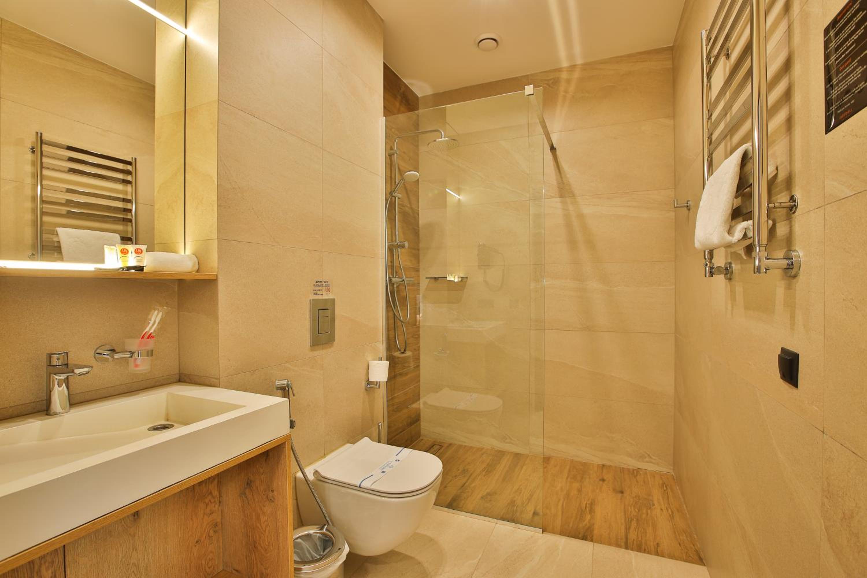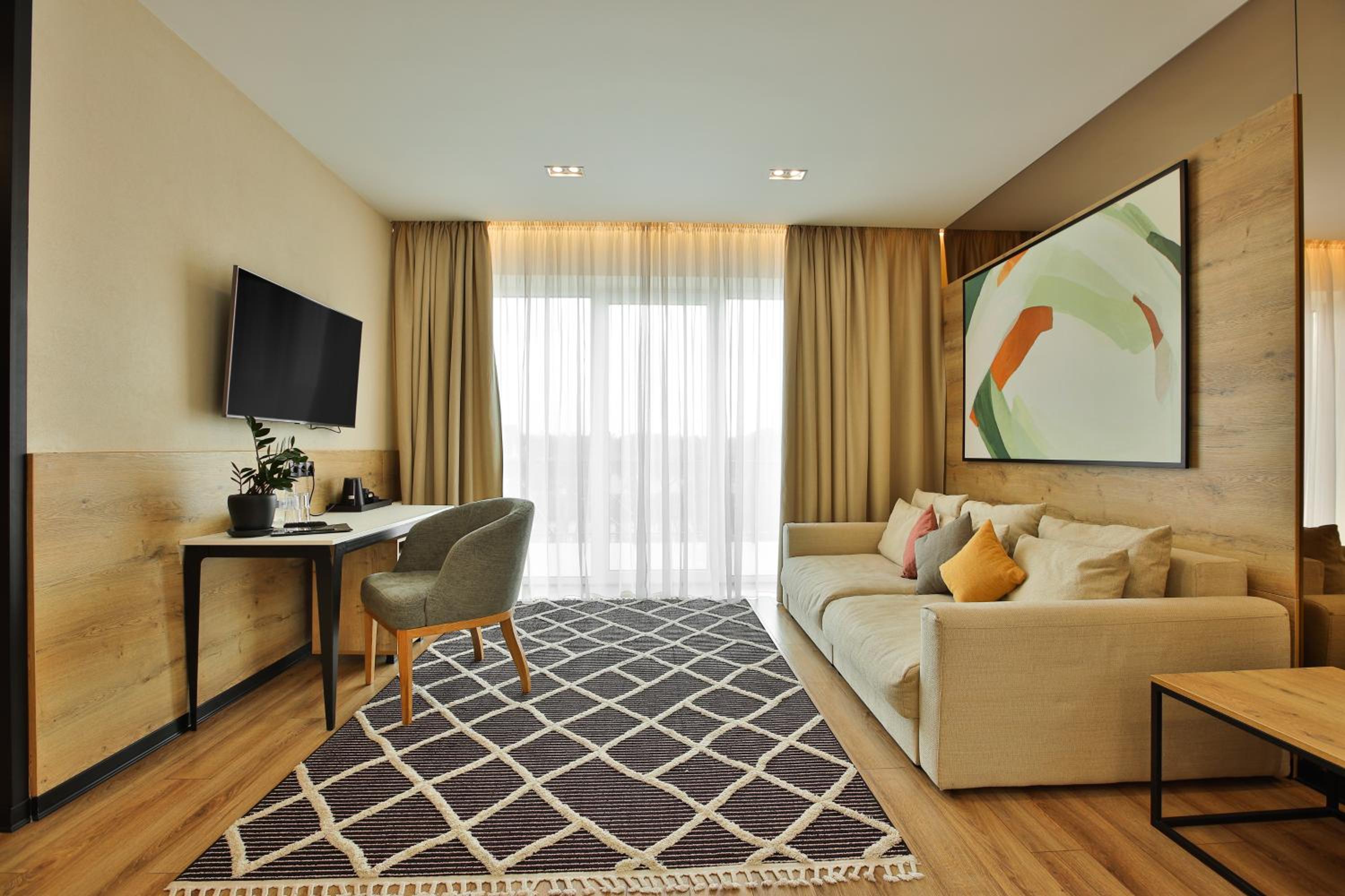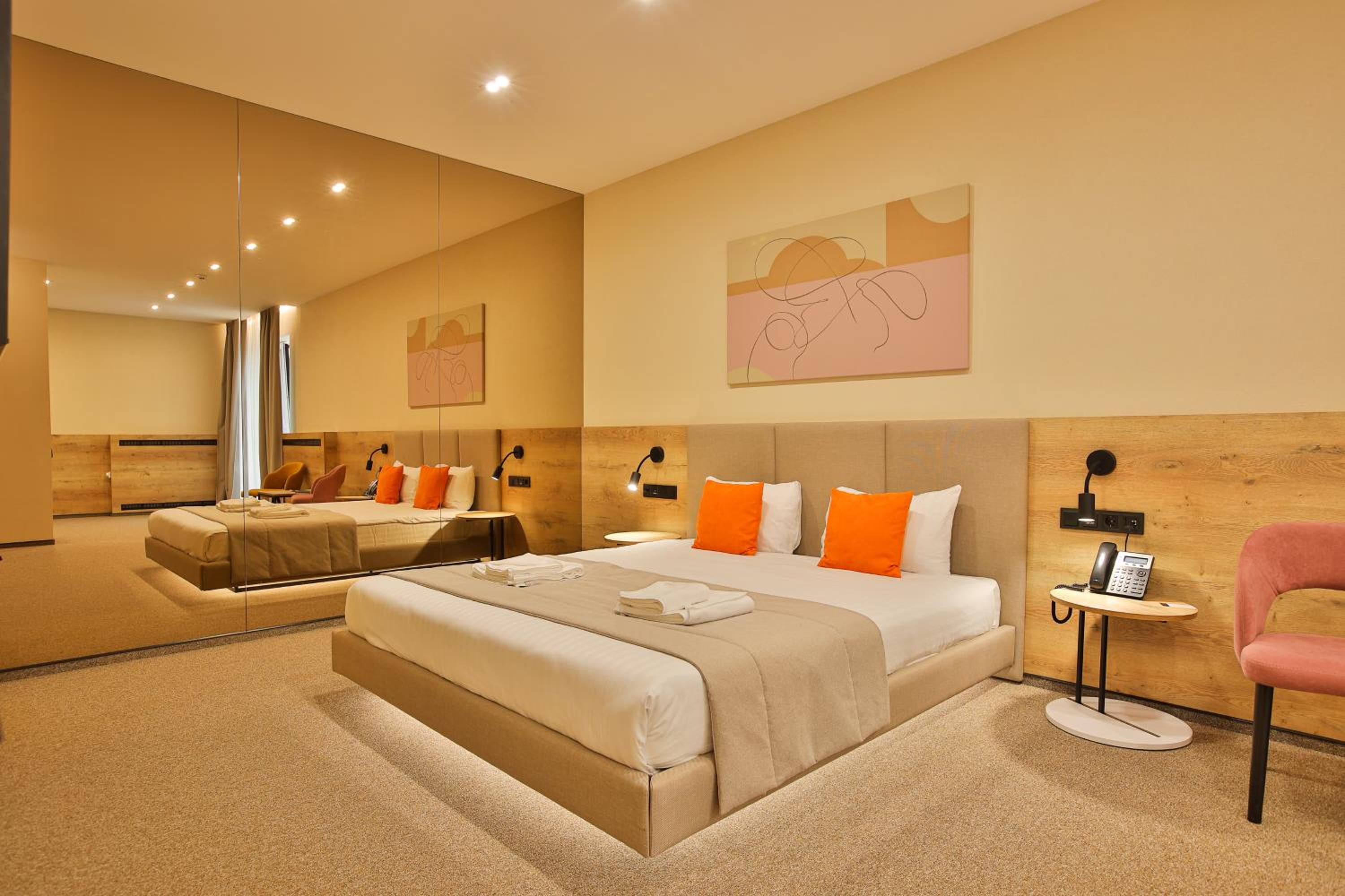сучасний дизайн, просторий номер з балконом. величезне зручне ліжко, все чисто, зручний диван, два телевізора з інтернетом( ютуб і т.д) наявність хоч і не великого але спа, поруч андерхіл парк