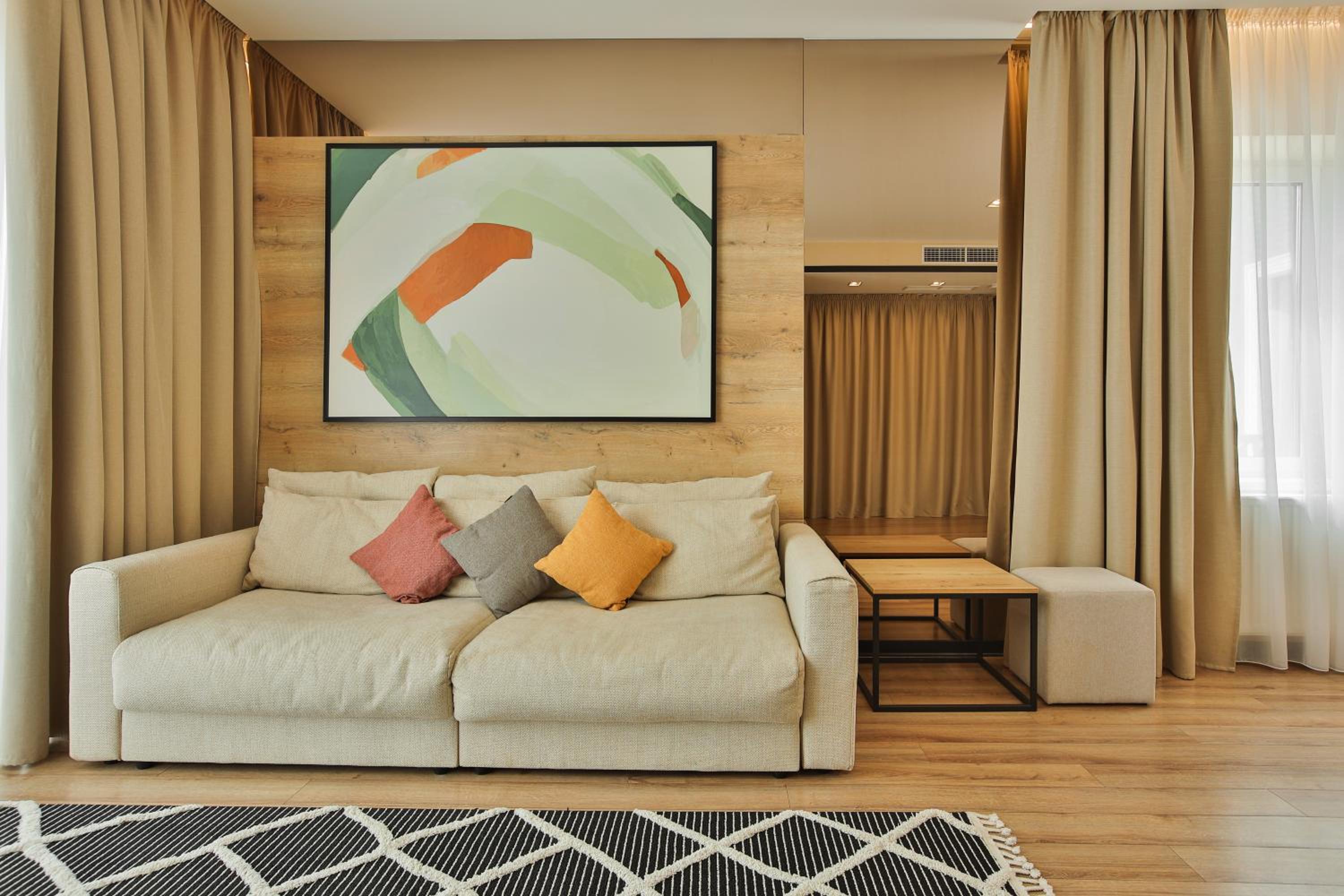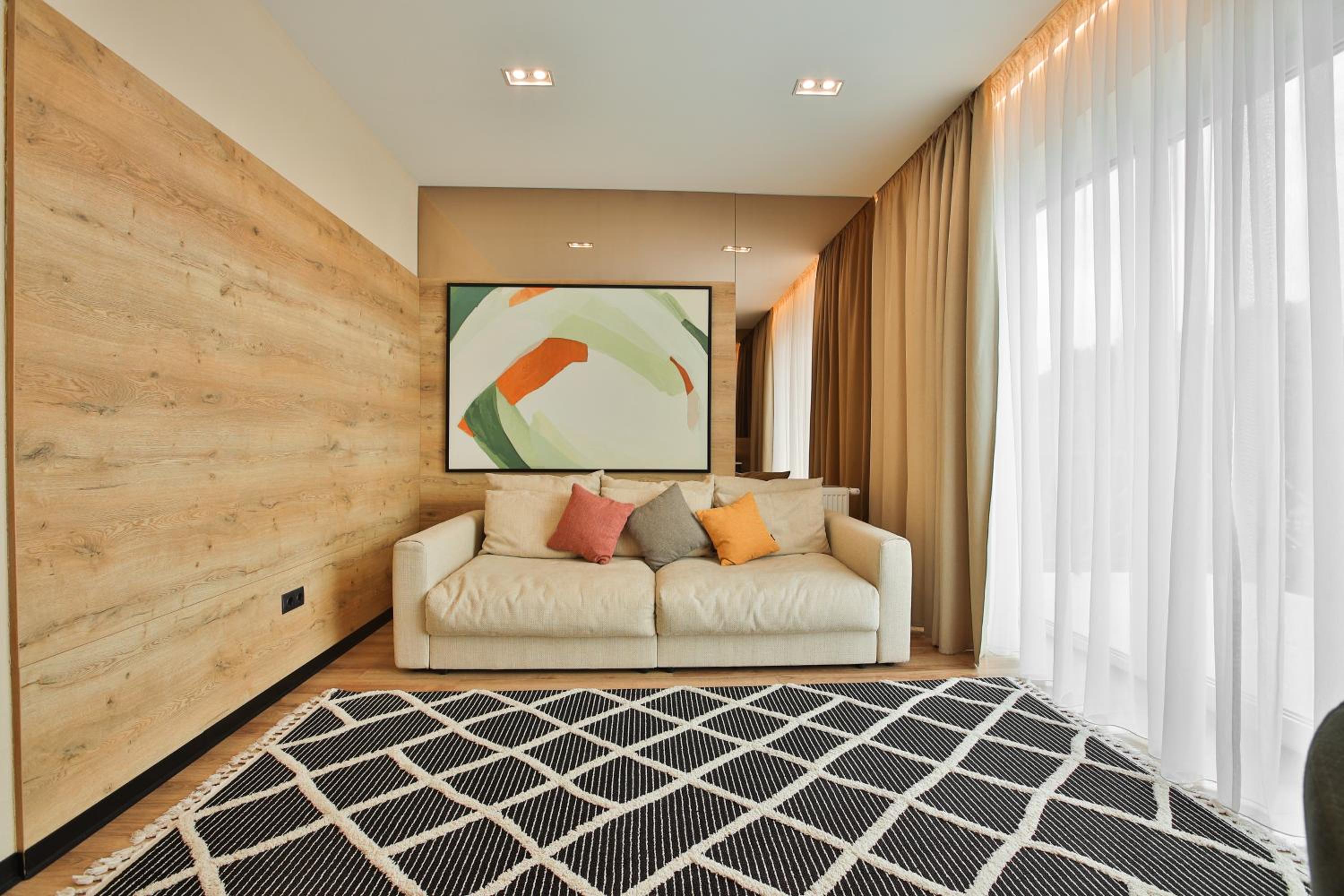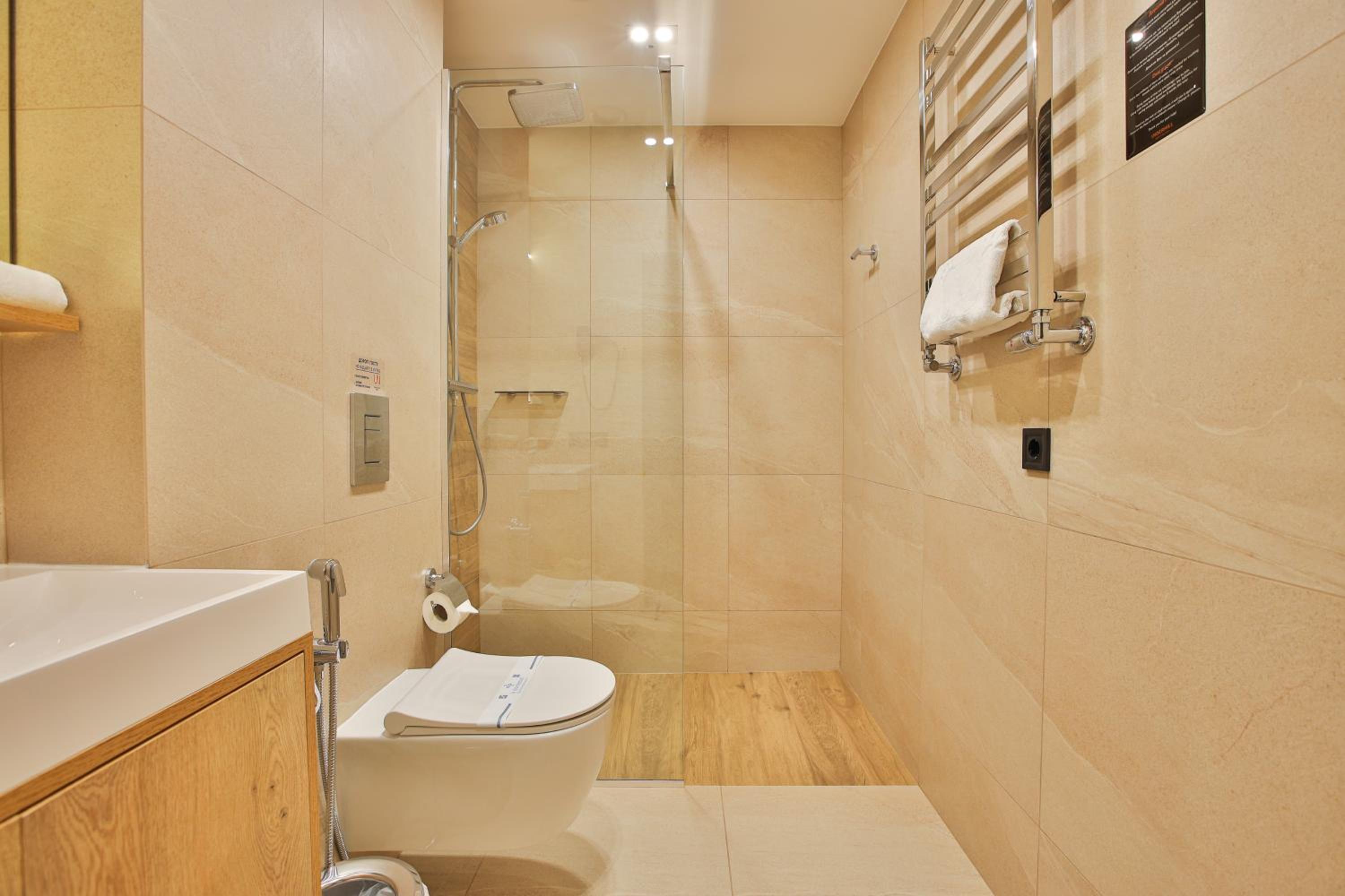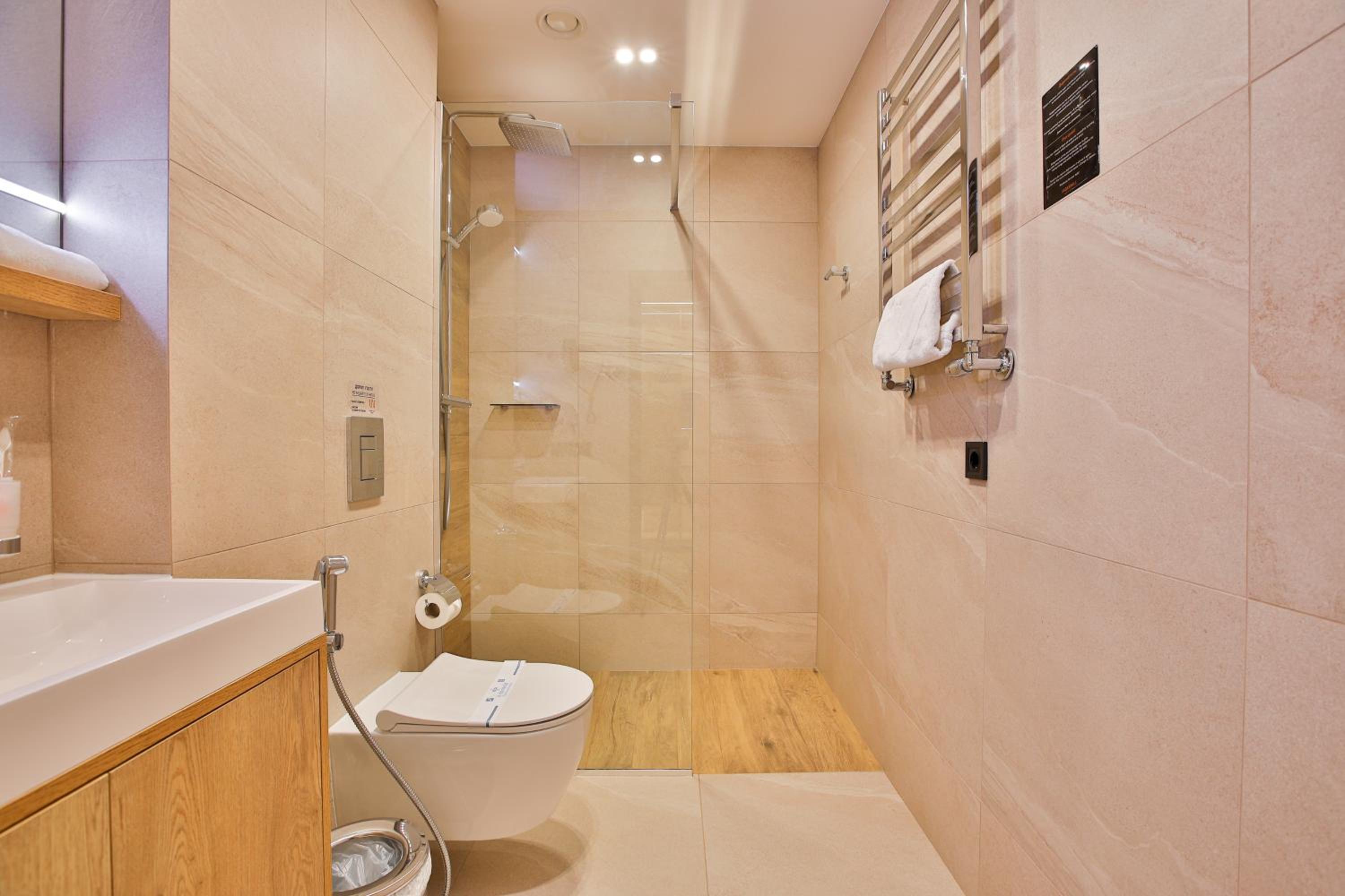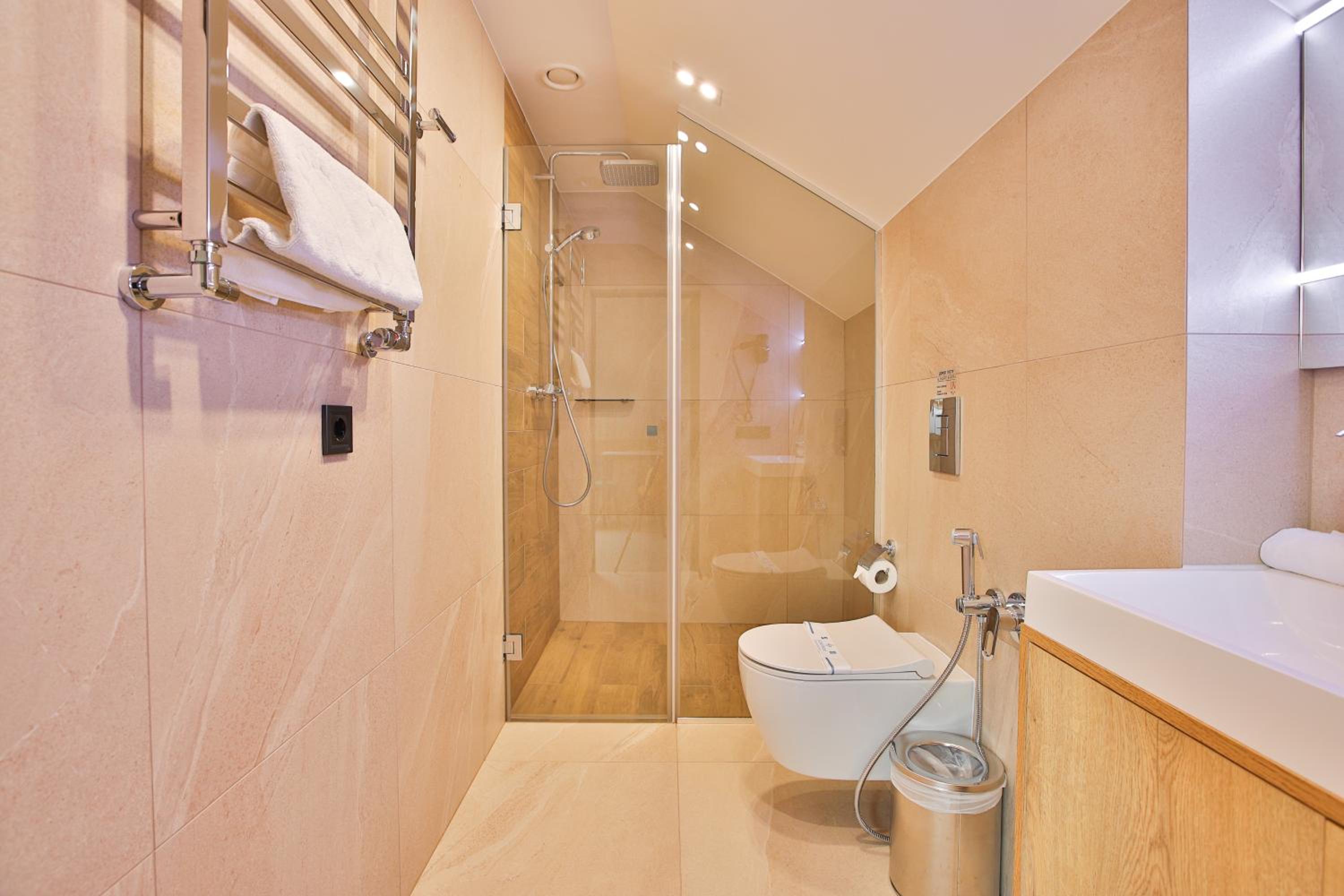 сучасний дизайн, просторий номер з балконом. величезне зручне ліжко, все чисто, зручний диван, два телевізора з інтернетом( ютуб і т.д) наявність хоч і не великого але спа, поруч андерхіл парк