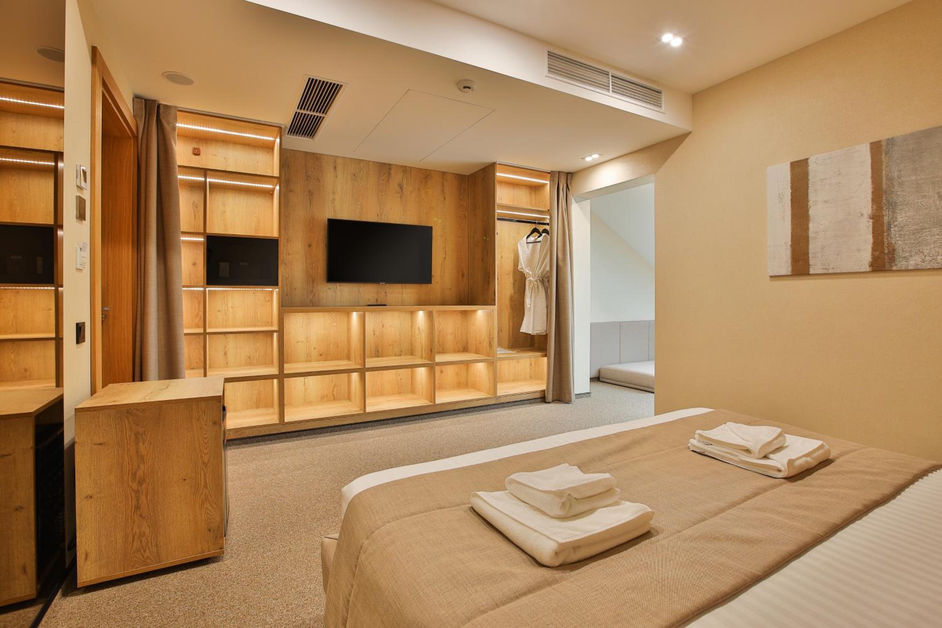 Були ньюагси: нас не завчасно не попередили, що одна сауна в SPA не працює. Про це нам сказали вже при заселені. В номер заселятися чотири особи, але номер був підготовлений тільки для двох людей ( полотенця, халати, решта принесли після дзвінка на ресепшн). Загалом перебуванням задоволені.