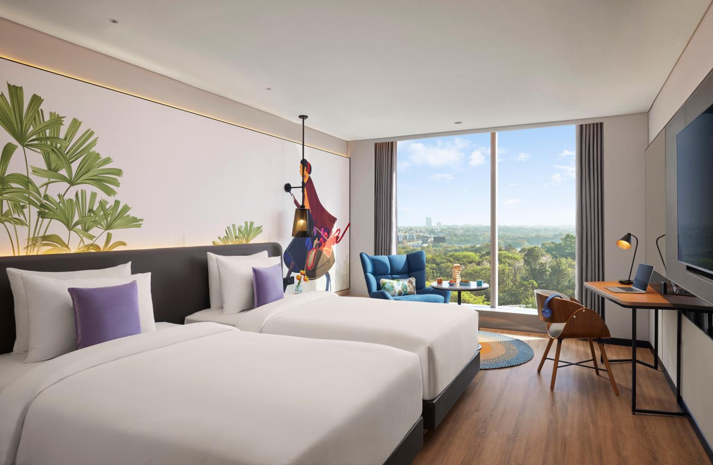Comfortable Accommodation: Relax in well-appointed guest rooms featuring modern comforts like air conditioning, flat-screen TVs, and private bathrooms with free toiletries, along with stunning city views from select rooms.