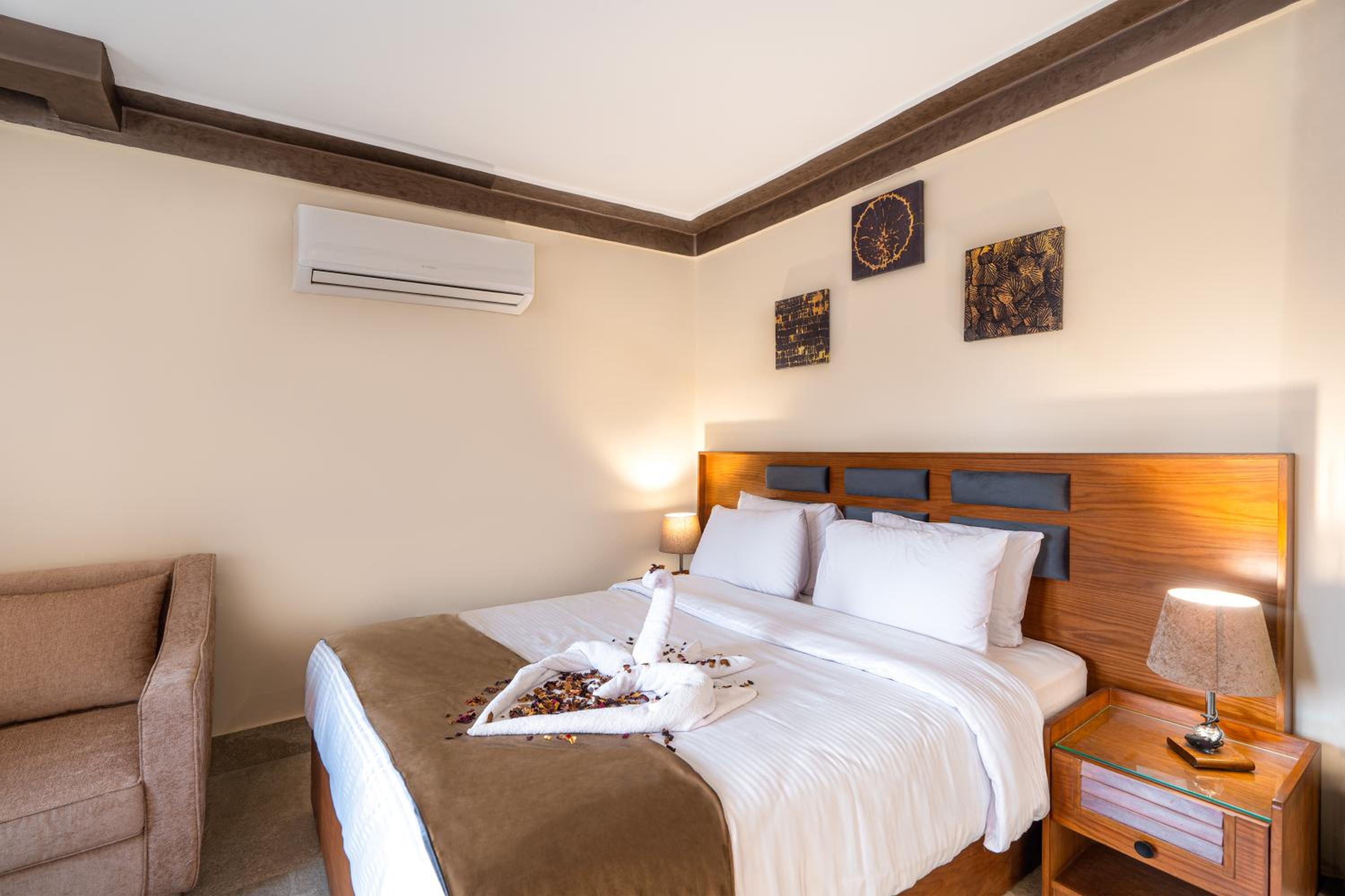 Relax in our air-conditioned rooms equipped with modern amenities such as a minibar, flat-screen TV, and free Wi-Fi.