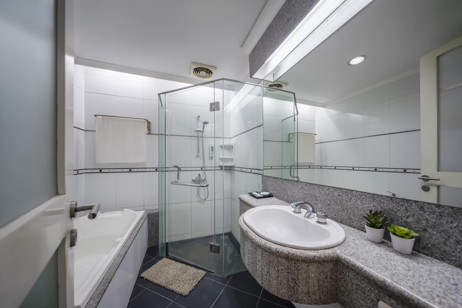 Kamar mandinya sering banjir karena lubang pembuangan air lebih tinggi dari lantainya jd air tdk bisa mengalir ke lubang pembuangan