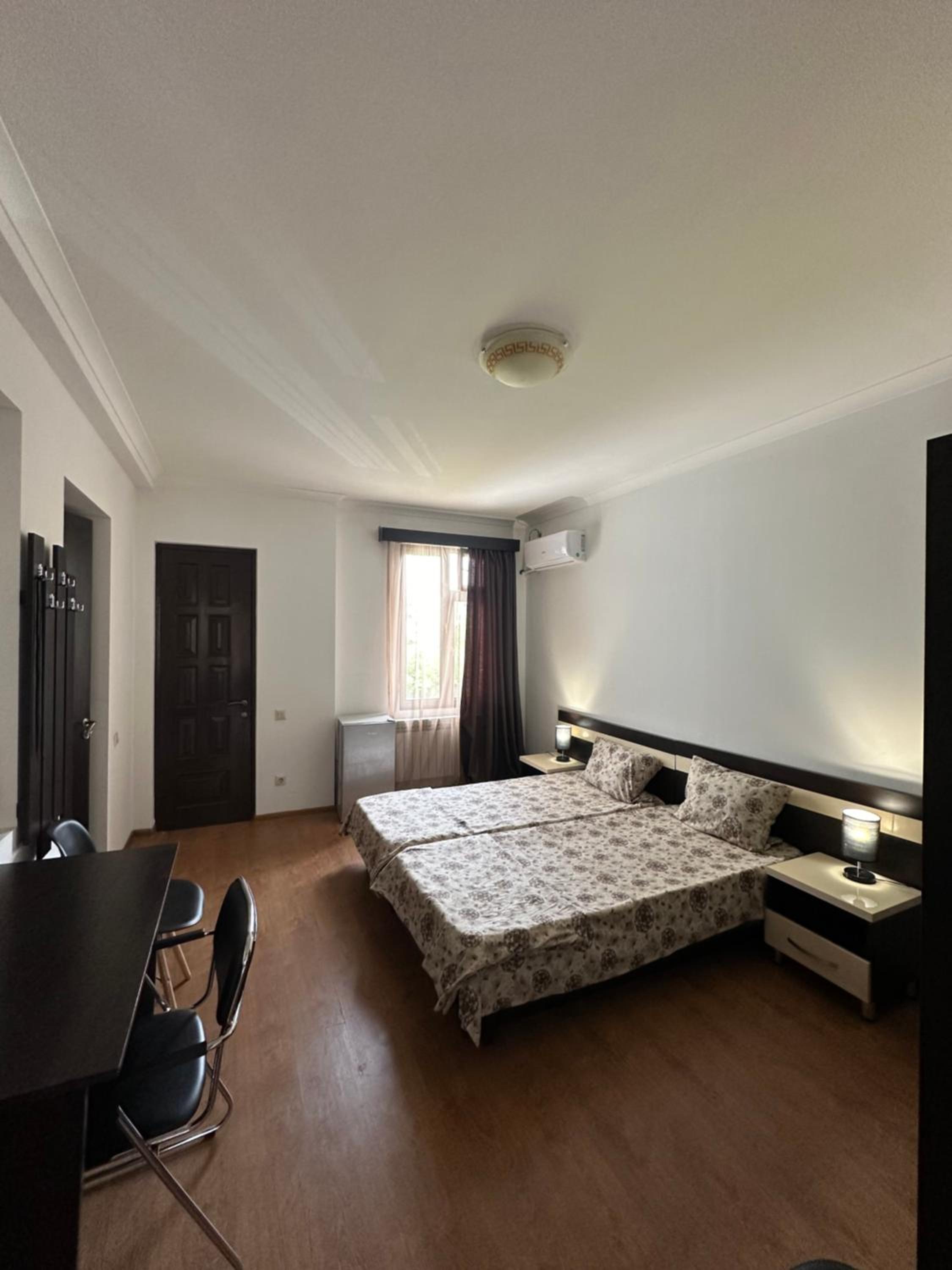 Very kind and hospitable staff. Late check-in and late check-out. You can have a cat. A spacious room, there is a refrigerator in the room, air conditioning, high ceilings and a huge balcony.