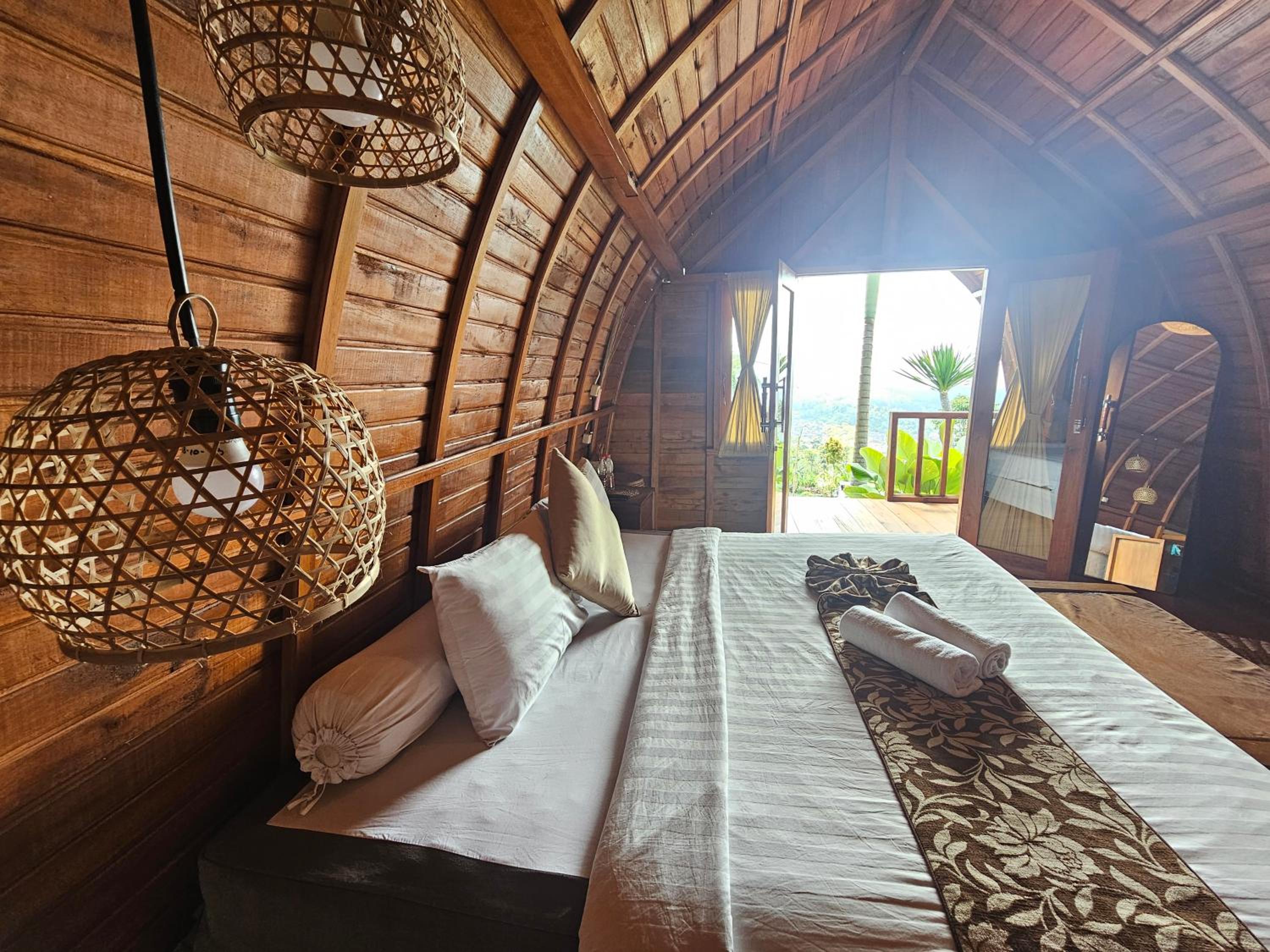 Comfortable and well-equipped rooms - Each room at Lumbung Hill Bedugul is thoughtfully designed with your comfort in mind, featuring modern amenities such as a flat-screen TV, private bathroom, and a balcony offering panoramic garden views.