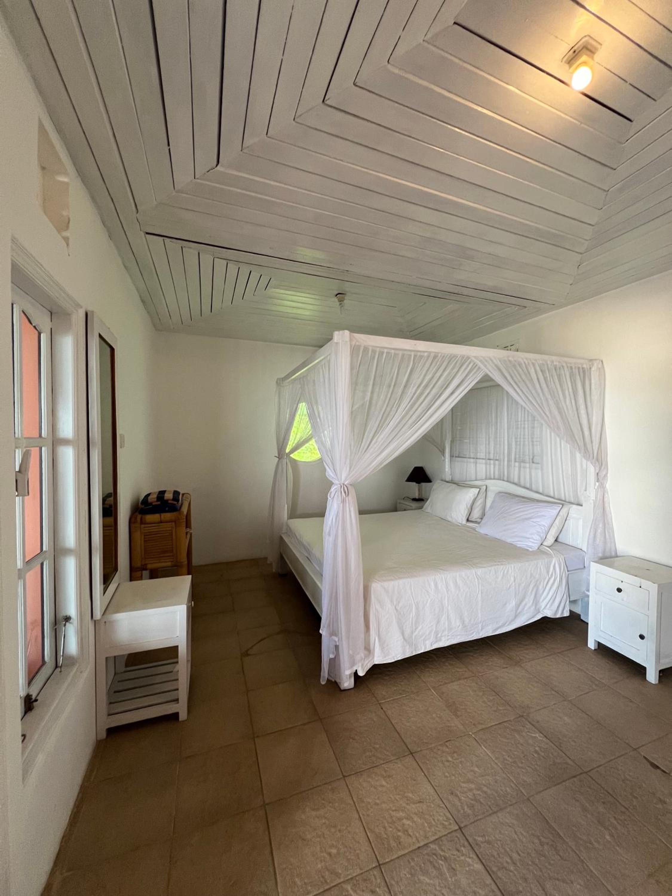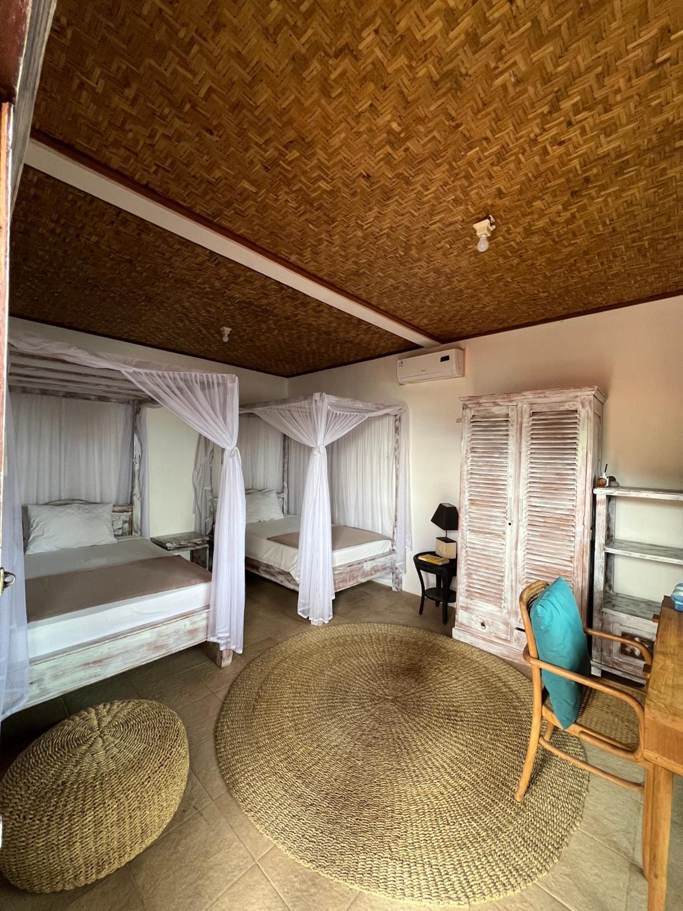 Location on the beach with a dreamy view. The sound of the waves when falling asleep and waking up is magical. Comfortable bed with a mosquito net, spacious room with a mirror. Shower is fine, with soap provided. Both beach and shower towels are available.