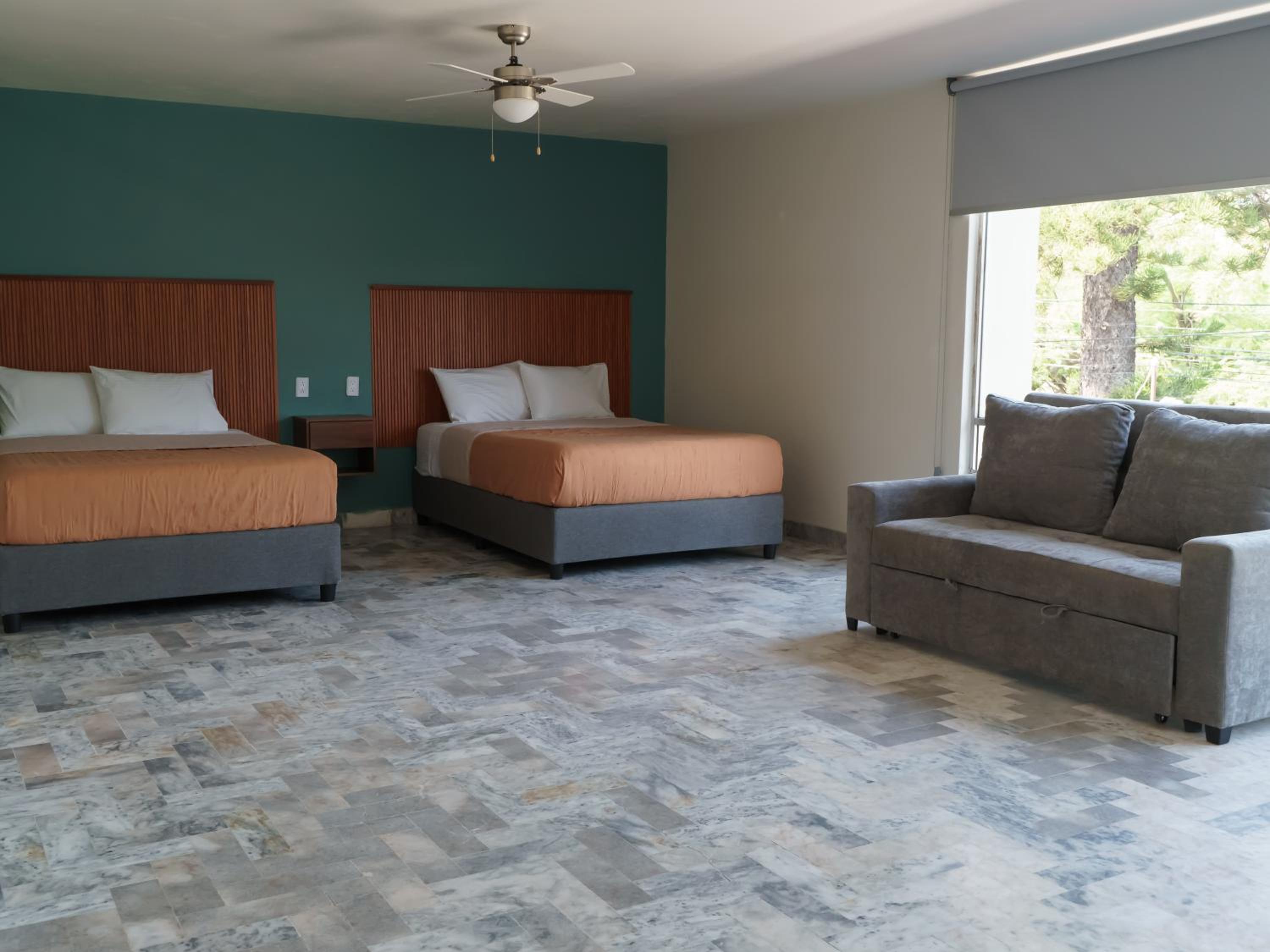 El hotel colinda con unas canchas de tenis o algo así, el detalle fue que casualmente una vez que terminaron sus juegos (12 de la noche aprox) los usuarios de dichas canchas se pusieron a platicar con música a alto volumen hasta las 5:00 am lastimosamente no pude conciliar el sueño toda la noche. Sé que no es responsabilidad del hotel, de hecho le comenté a la recepcionista que estaba a esa hora para que las autoridades calmaran el ruido. Como consejo, pudieran platicar con los propietarios de las canchas para que regulen sus horarios y no perturben la tranquilidad de los huéspedes