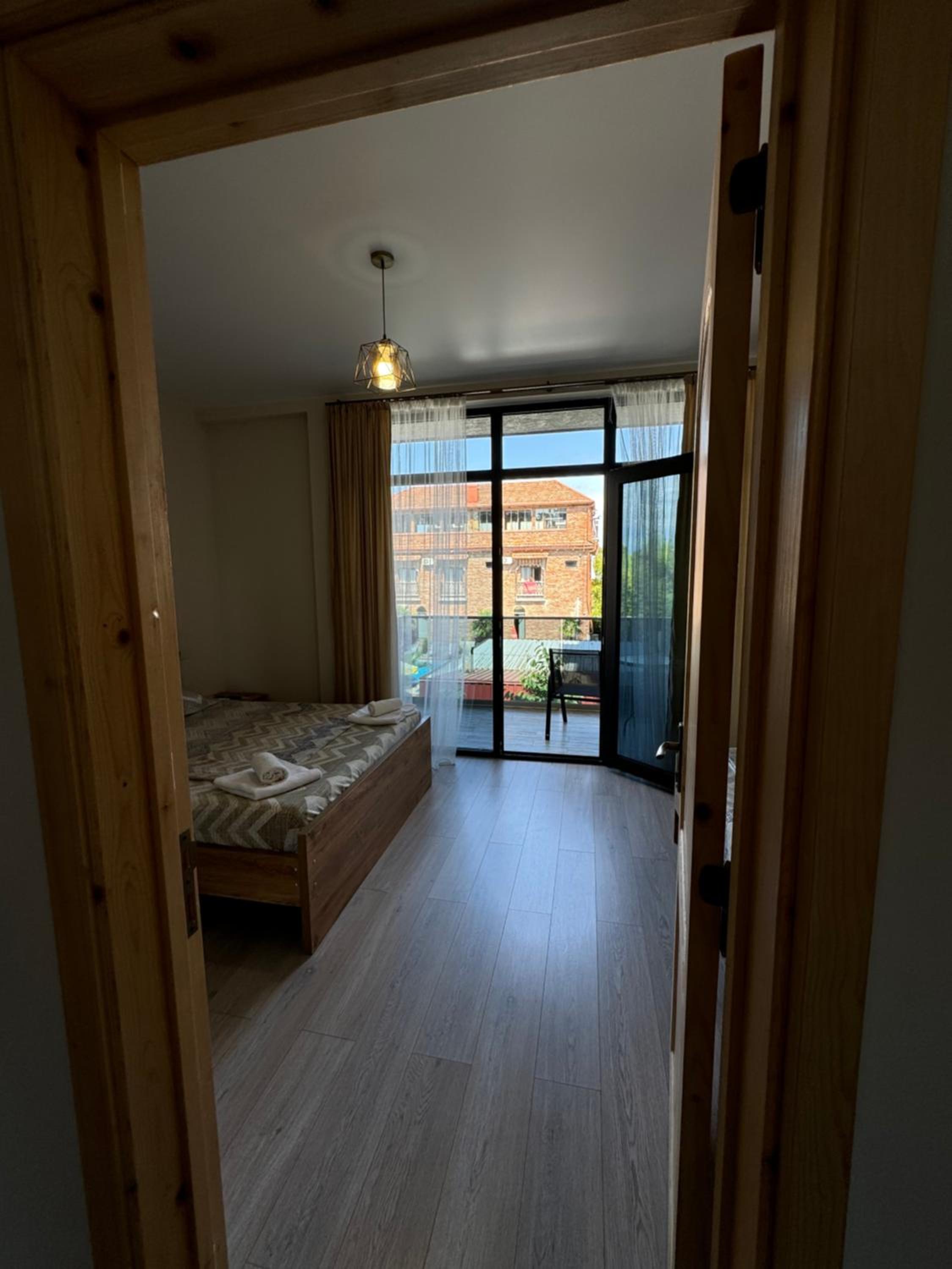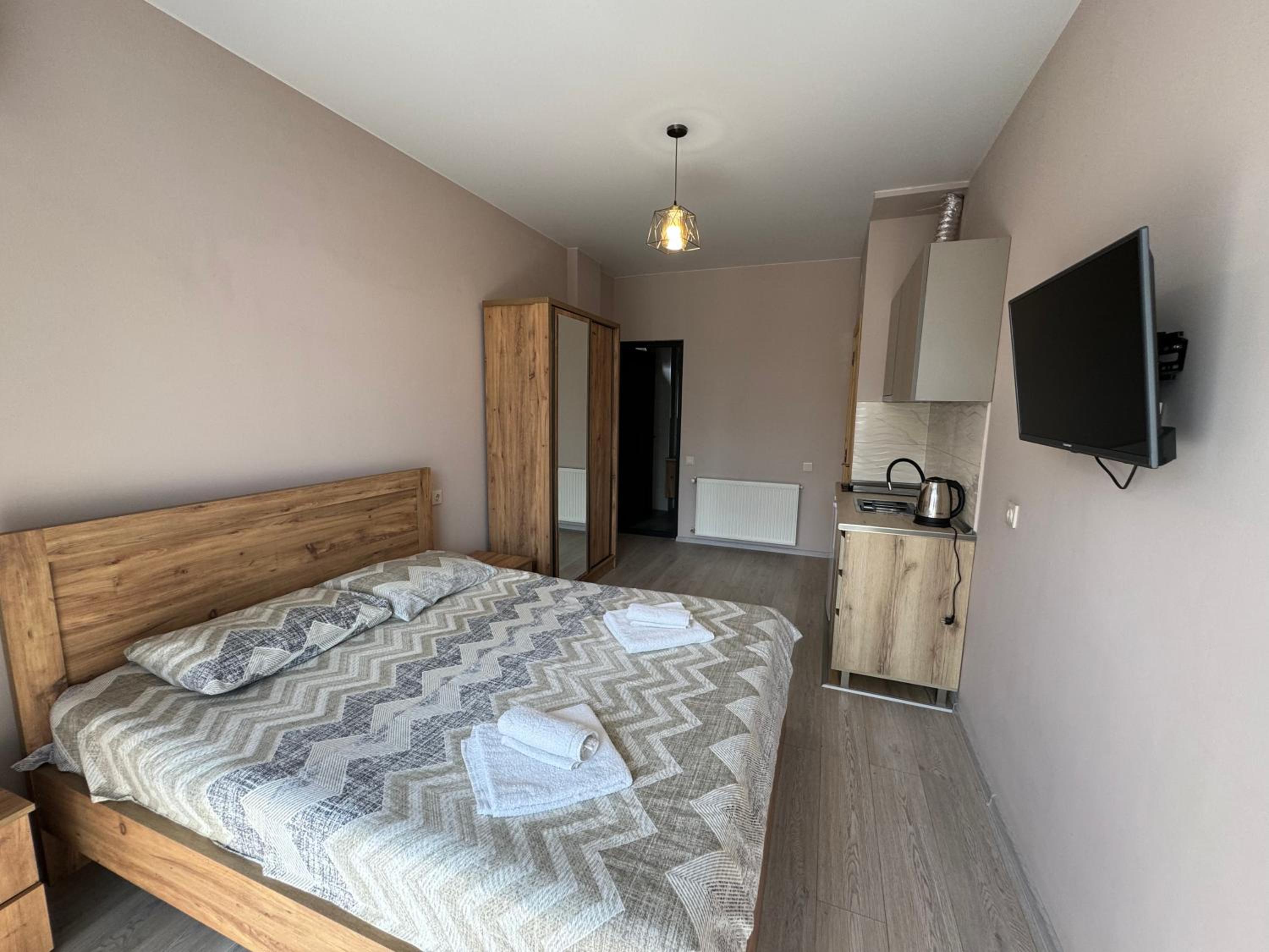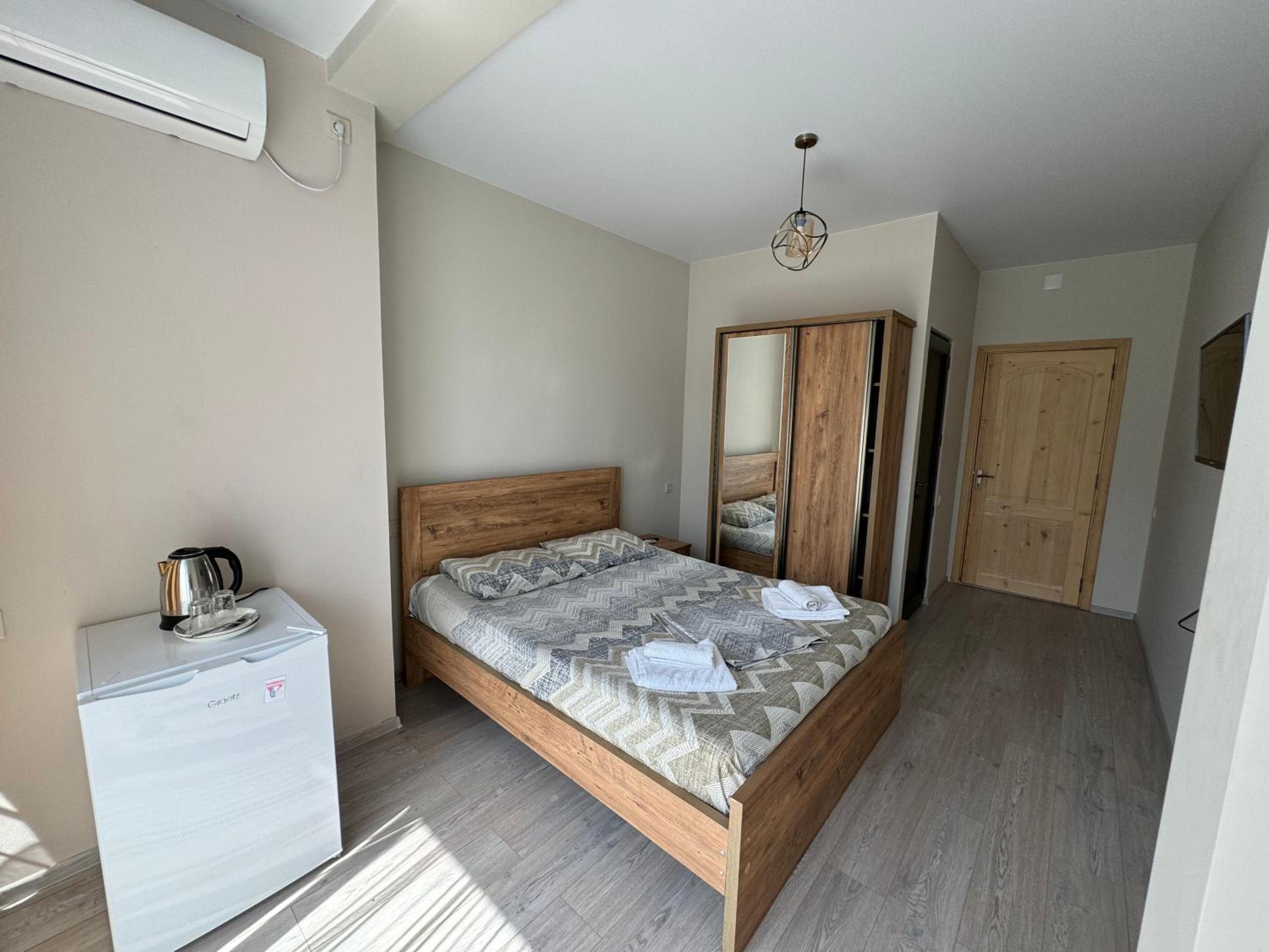 Сам номер был очень аккуратный, небольшой, но со всем необходимым. Кровать мягкая, удобная. Рядом с номером есть общая кухня с базовым набором посуды и утвари, а также стиральная машинка и гладильная доска (в общем доступе)