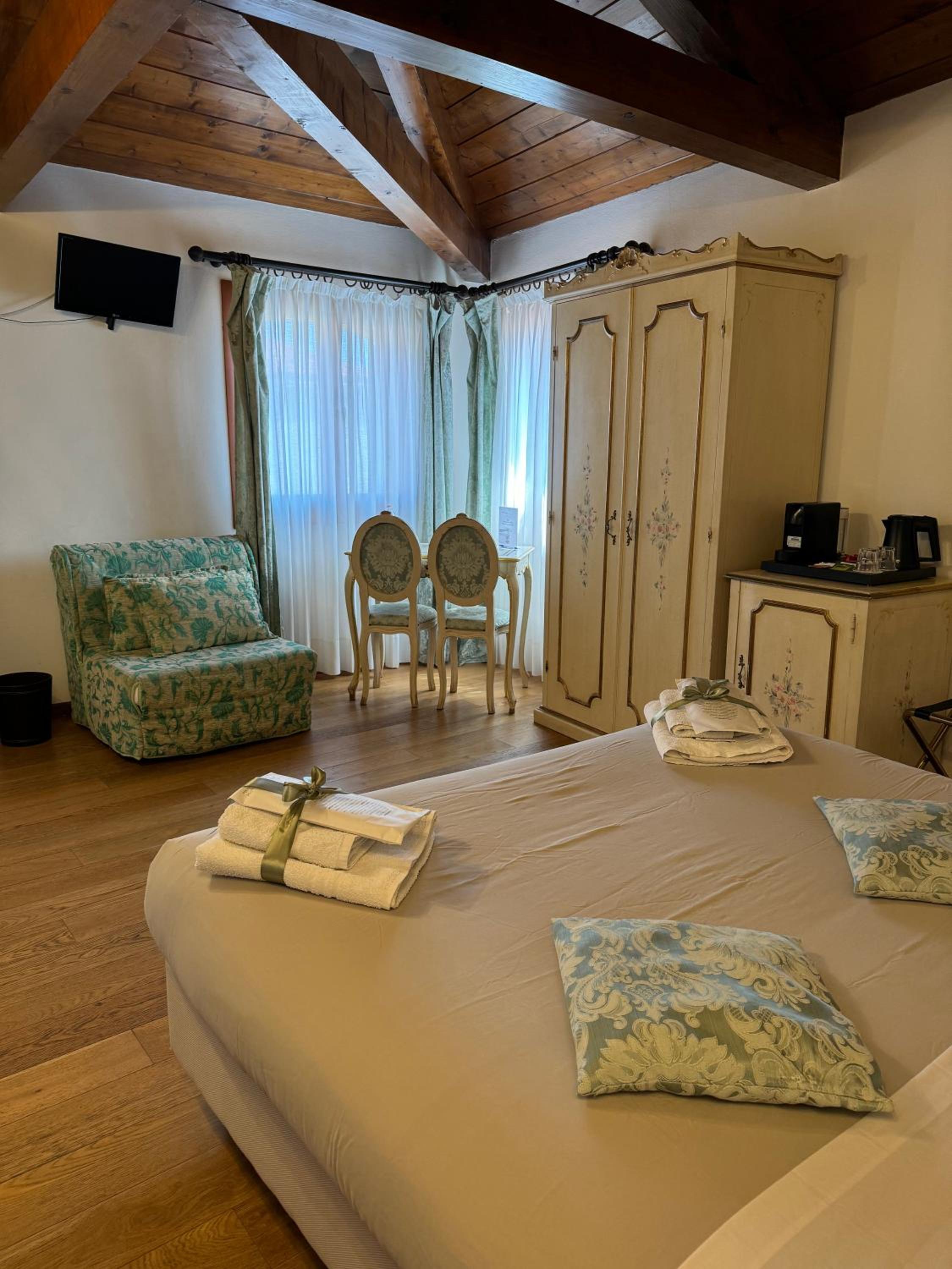 Very cosy little hotel with the typical classic Venetian classic style. We had a cosy corner-room overlooking the roofs of Venice. Clean good bed, clean bathroom. We loved the breakfast served at our door, so we could take the tray in and enjoy our breakfast in our room. We were allowed to leave our luggage at the reception until we had to take the boat back to the airport, so we could stroll all day in Venice without having to carry the bags.
