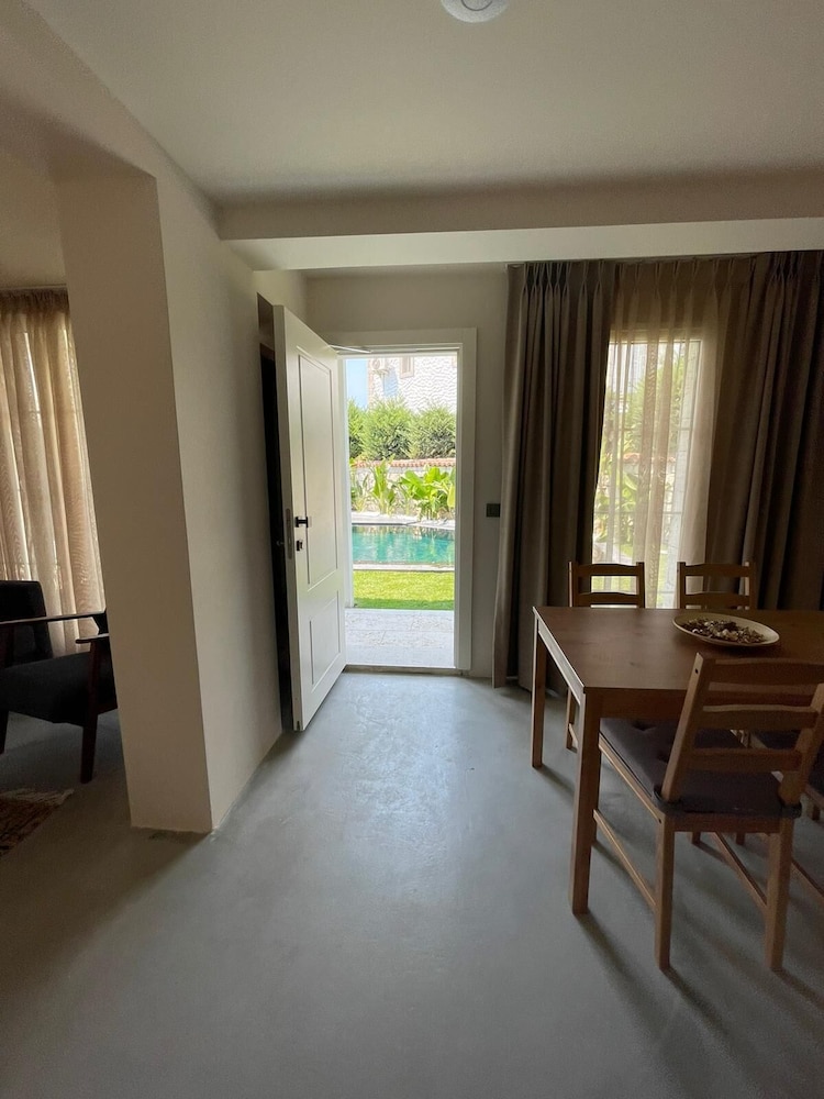 gayet güzel bir deneyimdi. tek sorun kalacağımız yer ile resepsiyon ve kahvaltının bulunduğu kısım birbirinden ayrı, bu durum belirtilmemişti ama arkadaşlar arayınca hemen yardımcı oldu 2dakikalık yürüme mesafesi vardı. havuz fotoğraflarda daha büyük gözüküyor, biz konaklarken kimse kullanmadı sorun yaşamadık ama kalabalık zamanlarda çok iç içe olunur o problem. oda gayet yeterliydi televizyon internete bağlıydı. yarı mutfak alanı bardak çatal kaşık tabak vs mevcut elektrikli ocak da var ama kullanmadık. çarşıya yürüme mesafesi 8 10dk genel olarak memnun kaldık. kahvaltısı gayet yeterliydi tekrar geliriz.