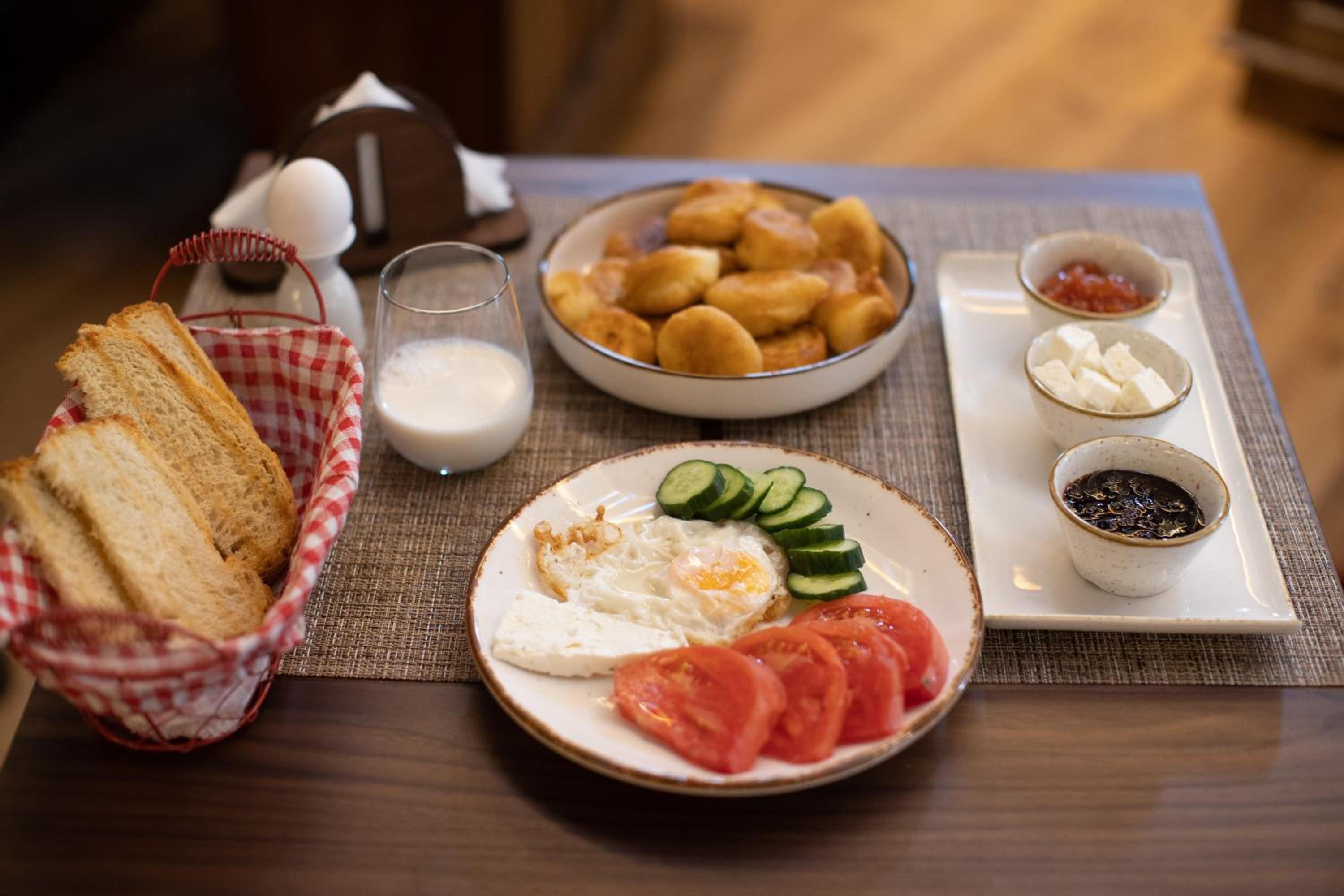 Our hosts were lovely, from start to finish. The trolley ride from the car park was a treat, as was the welcoming glass of raki. As the hotel was not busy, they gave us a larger room. The breakfast was freshly prepared and bountiful. And their restaurant recommendations were excellent. Just what one wants on a trip!