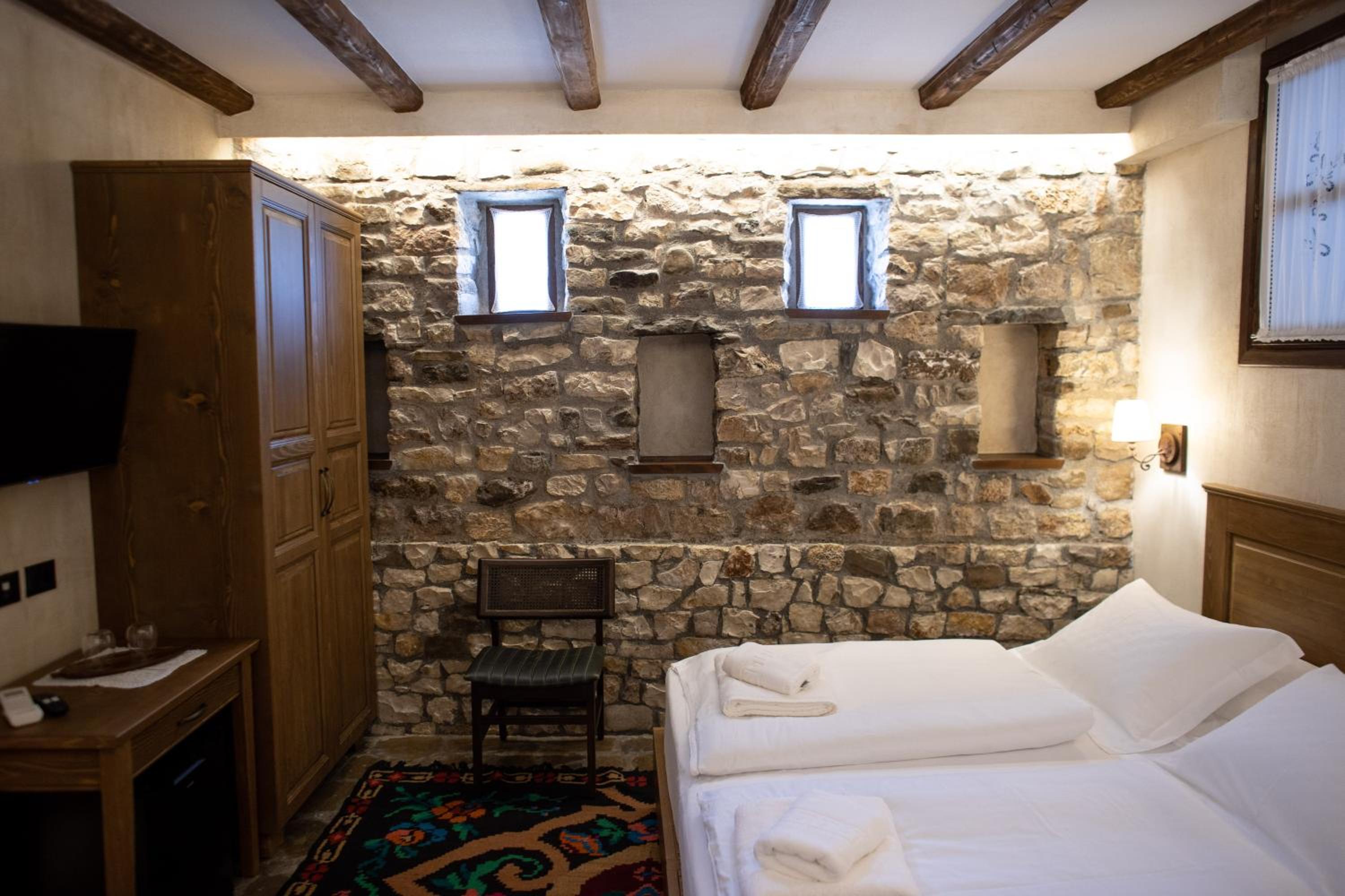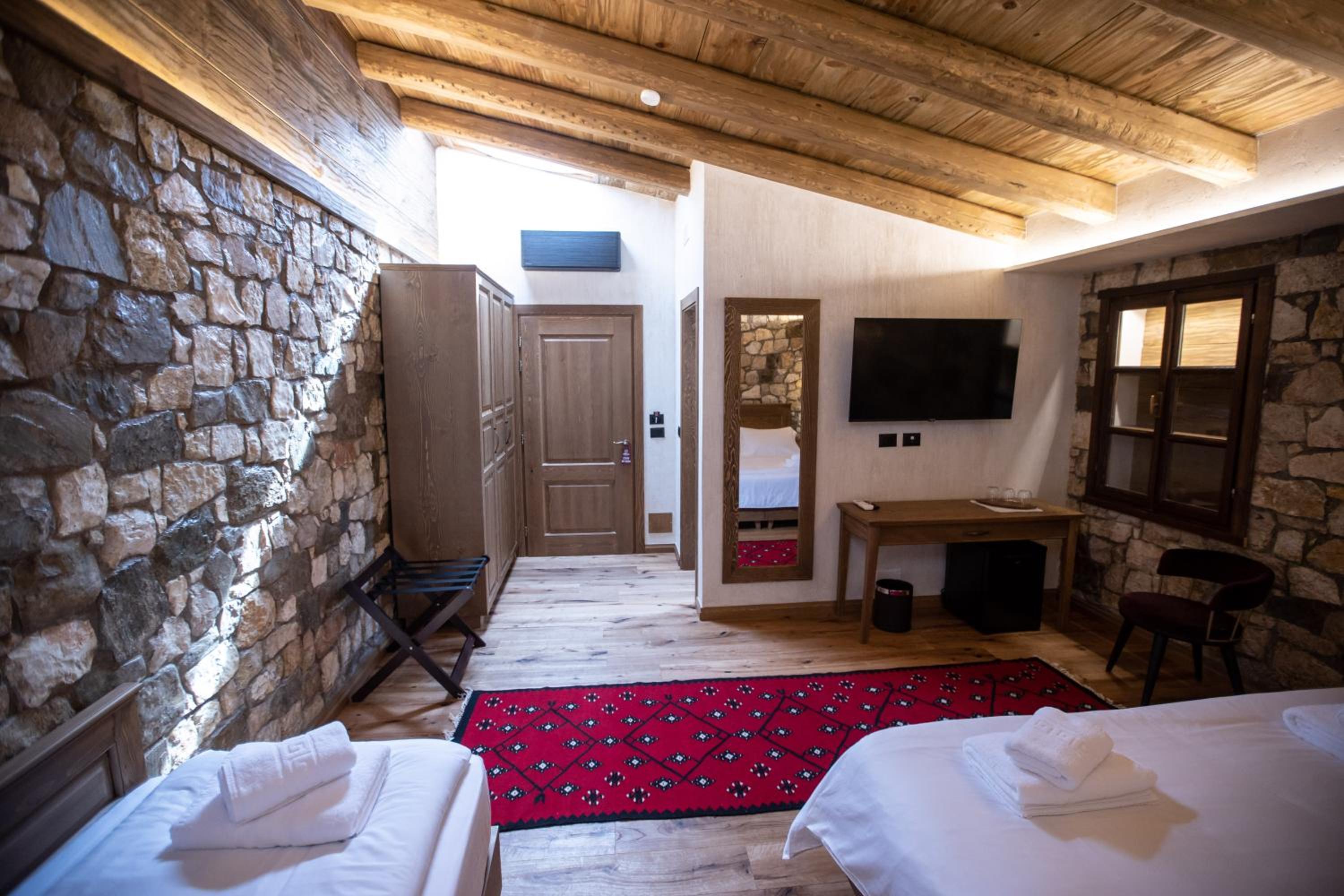 Beautiful boutique hotel in a stunning location with great views of Berat. Dino picked us and our extensive luggage from the secure parking area in a buggy on our arrival. Our room was very comfortable and had lovely views of the town. Breakfast was delicious. Staff were exceptional!