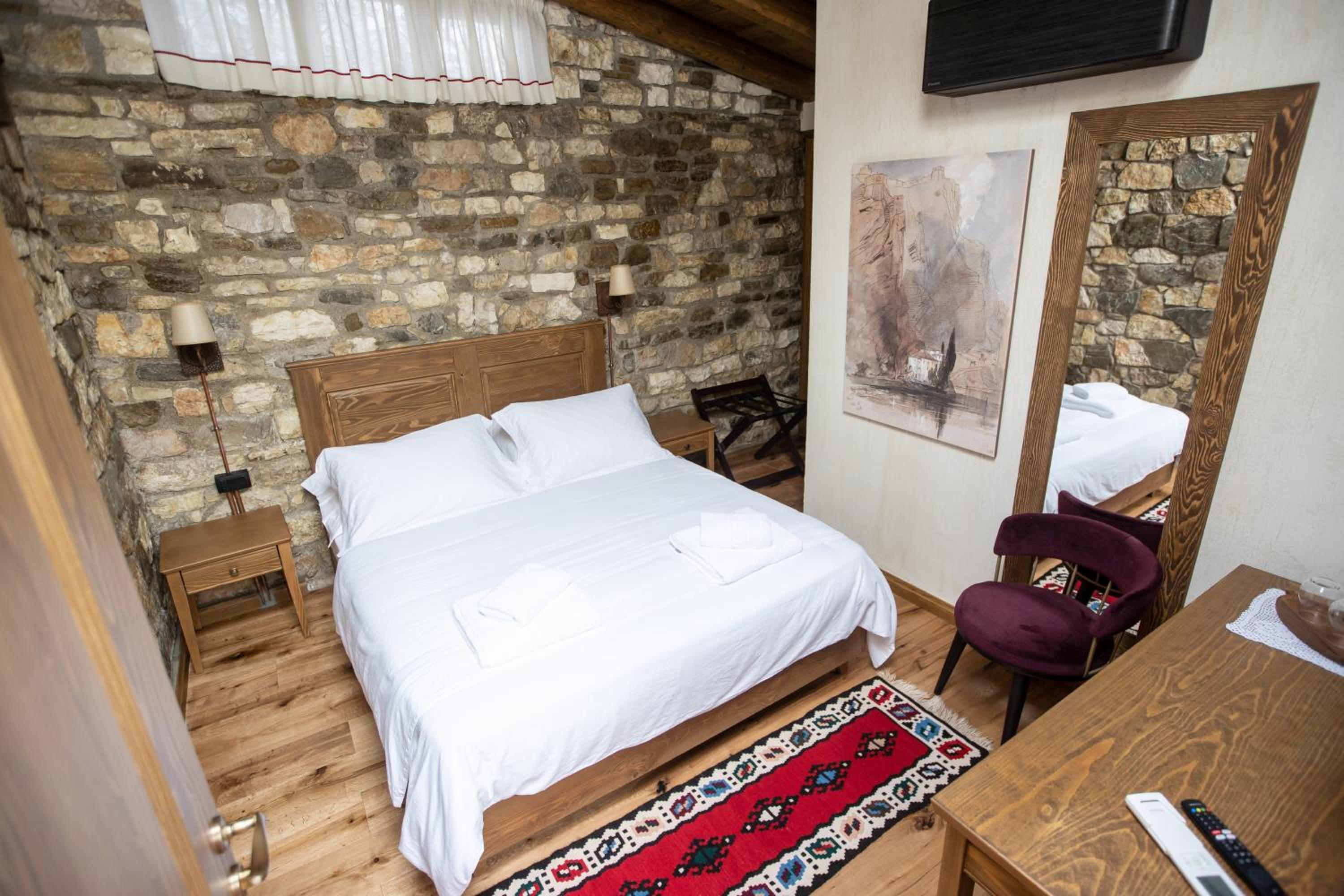 Die Kommunikation mit den aufmerksamen Gastgebern hat wunderbar funktioniert. Es gibt eine komfortable Parkmöglichkeit für das Auto mit umgehendem Transfer zum Hotel. Die Zimmer prima, viel Dachterrasse mit wunderschöner Aussicht auf Berat. Das Frühstück grandios!