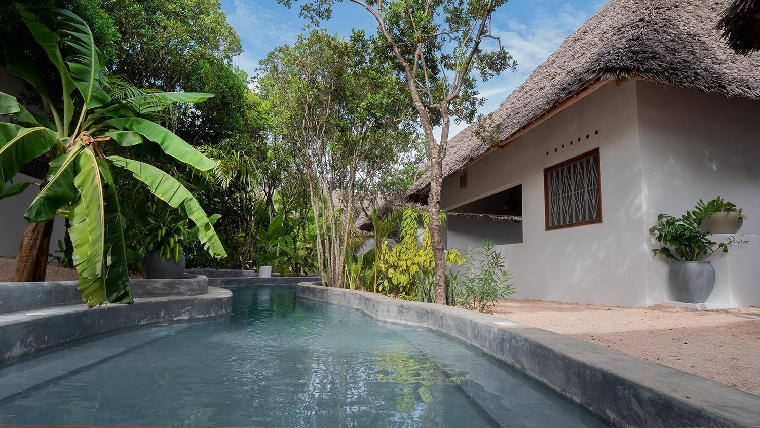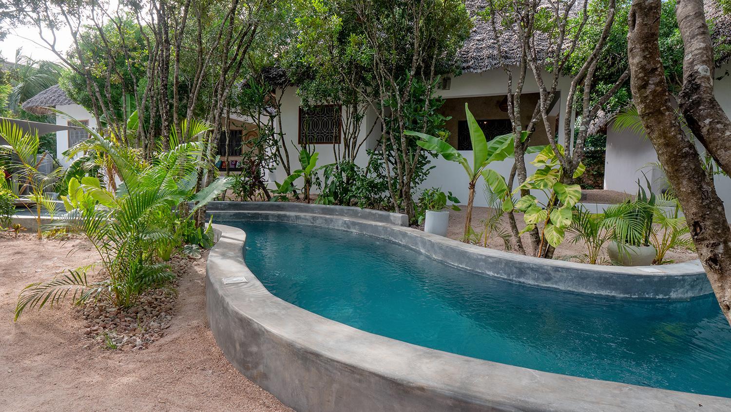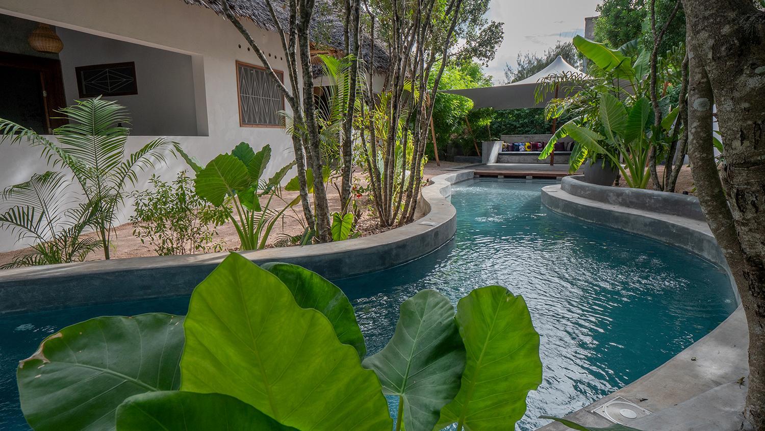 Experience the tranquility of our pool and garden views at Bila Residence Suites Jambiani.