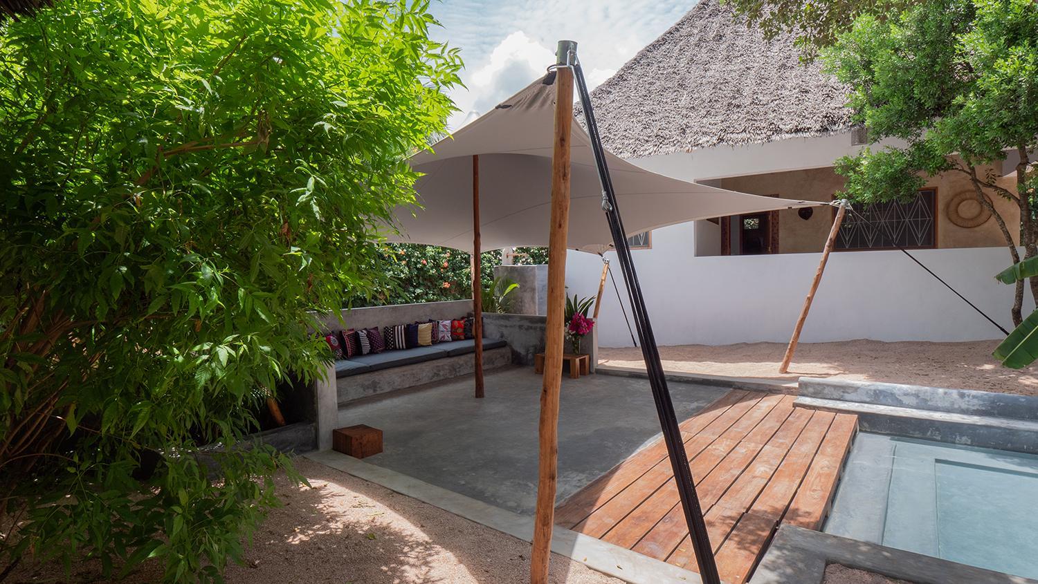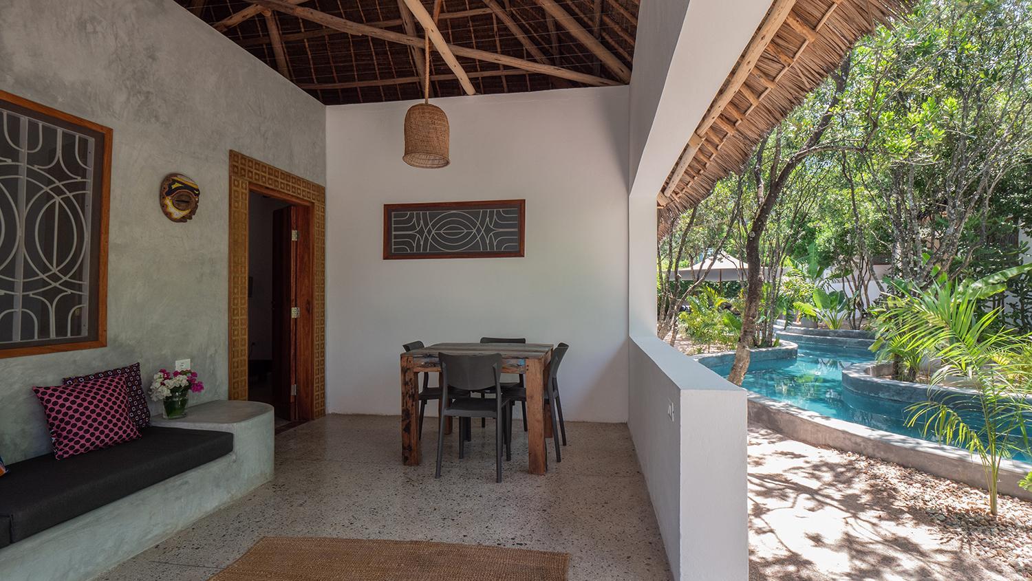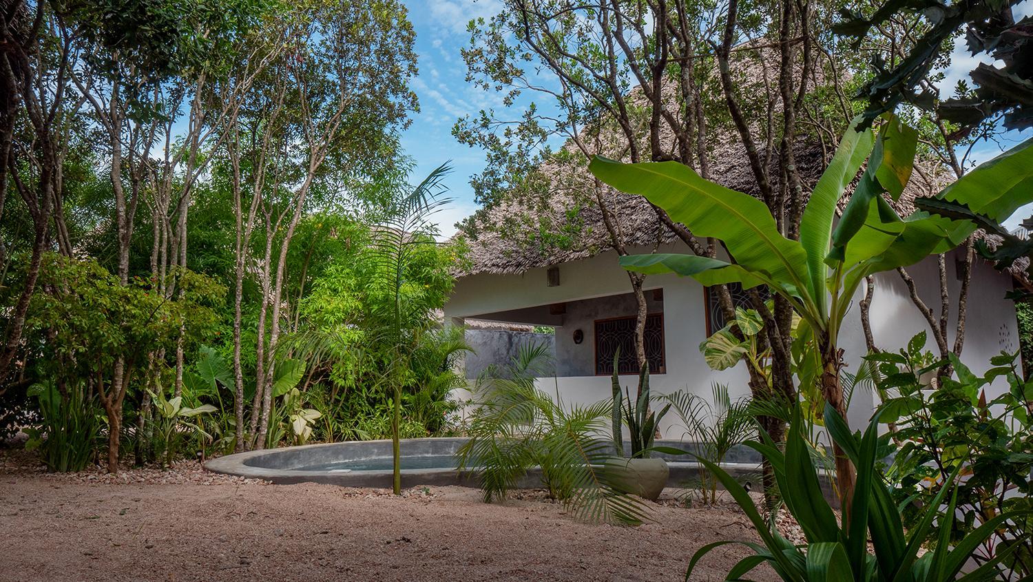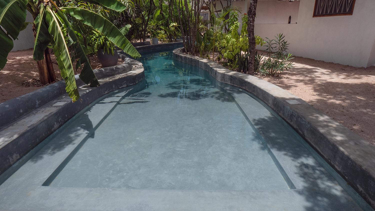 Experience the tranquility of our pool and garden views at Bila Residence Suites Jambiani.
