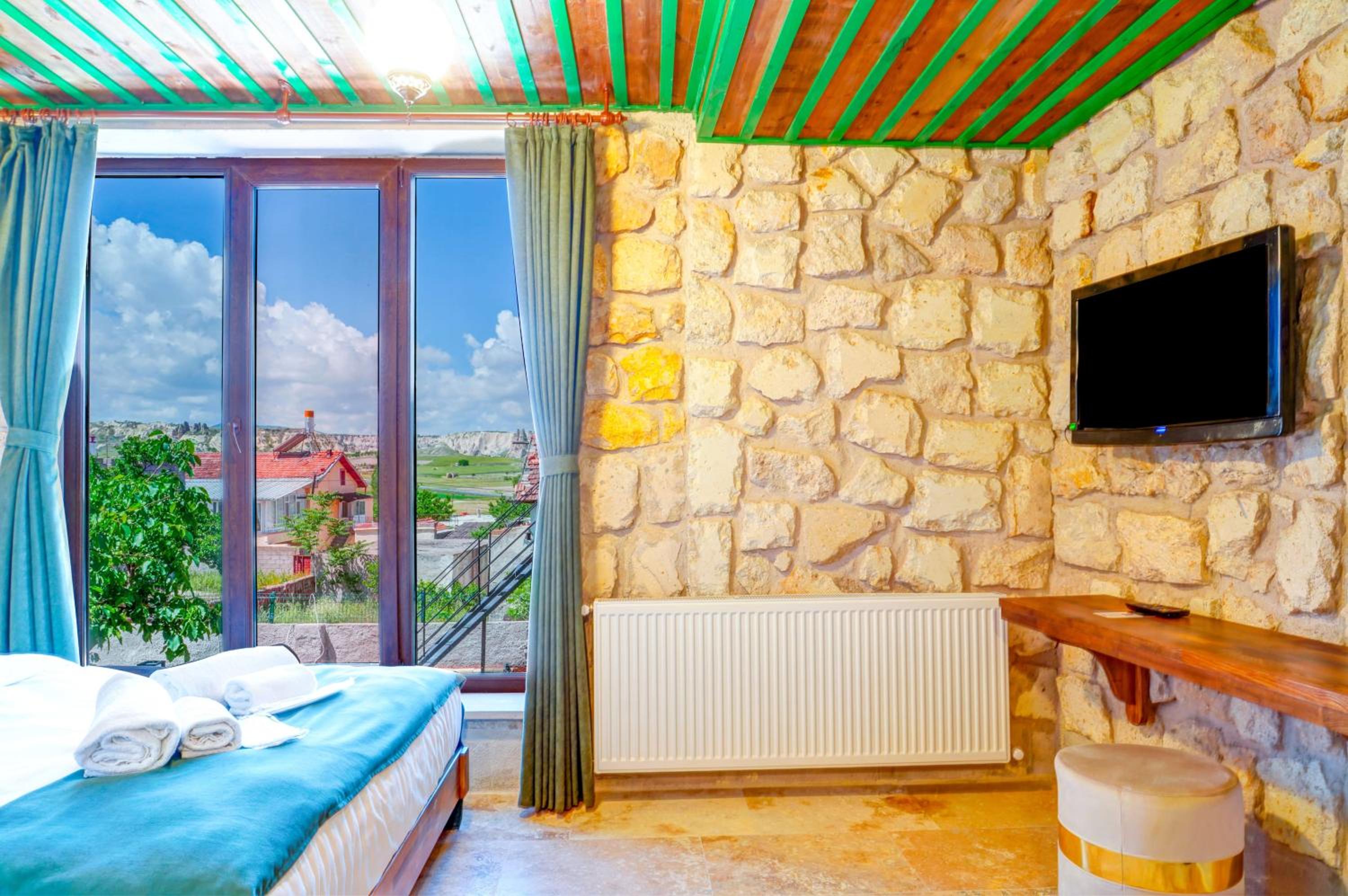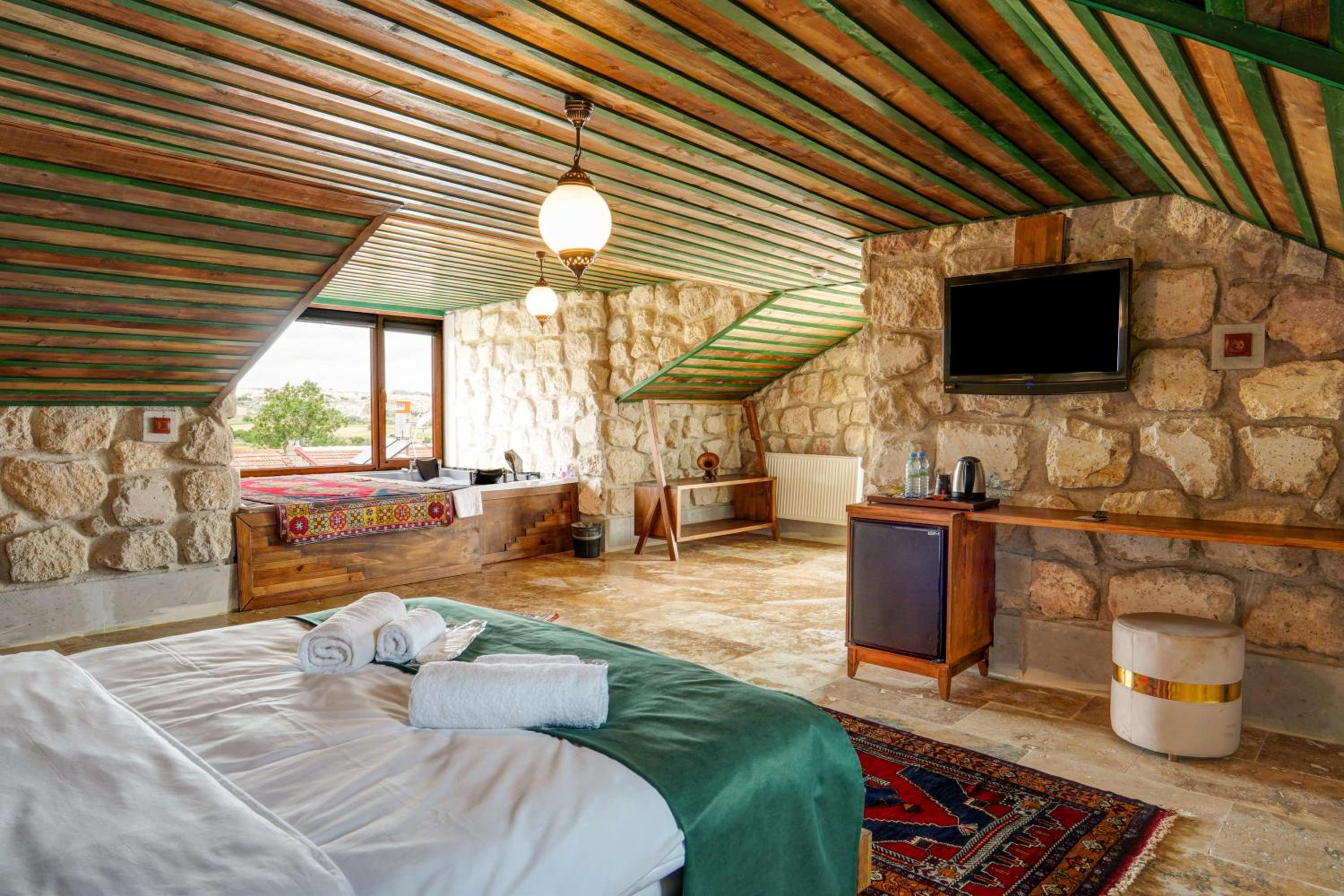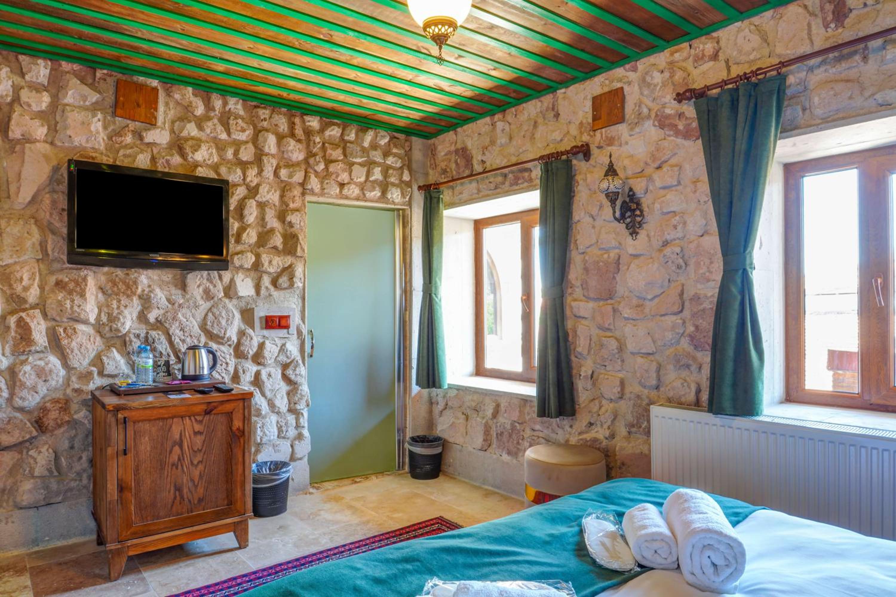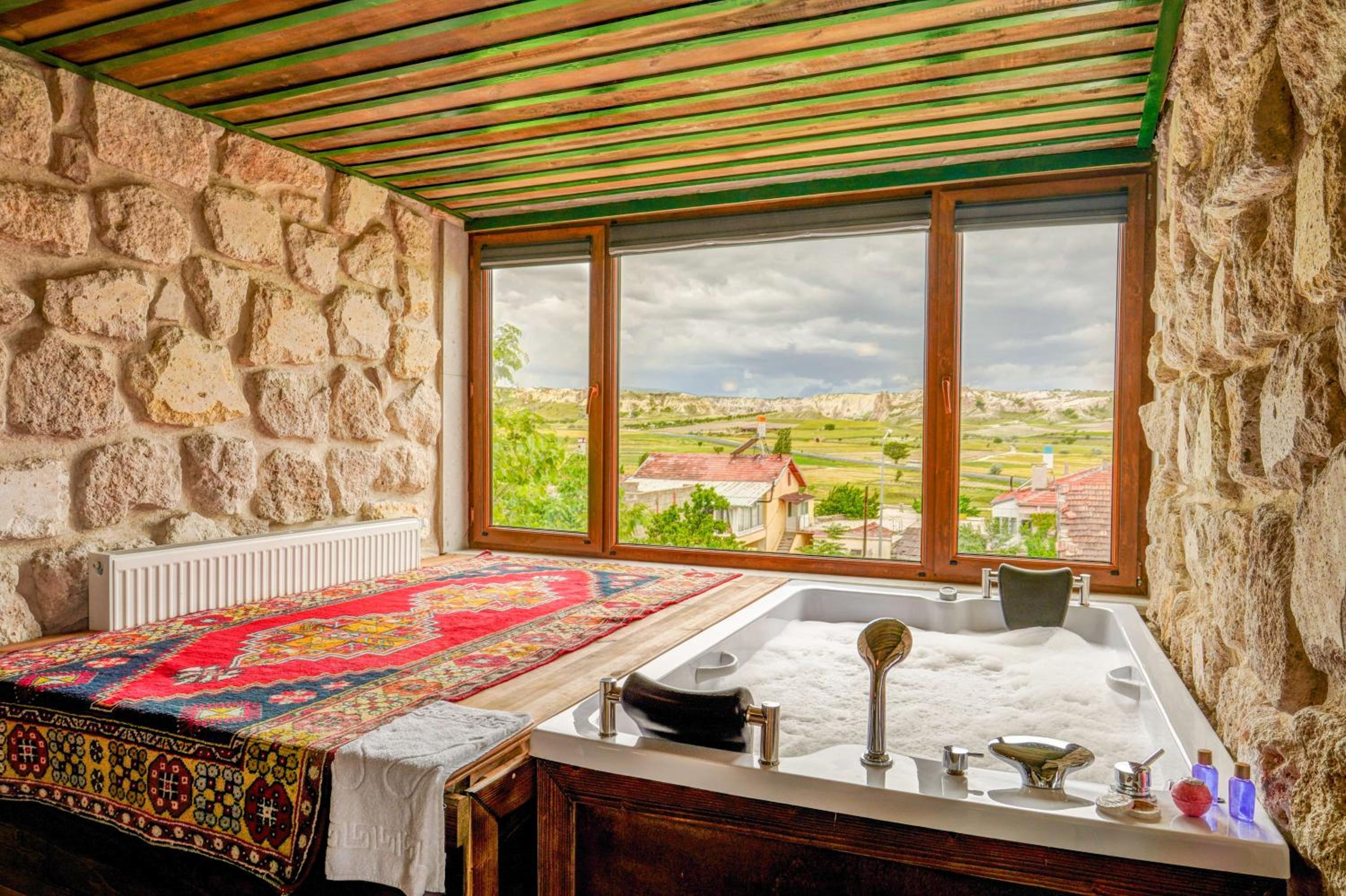 Le bâtiment est magnifique et idéal pour observer les ballons chaque matin depuis les toits en terrasse. La chambre était spacieuse avec tous les équipements nécessaires . L'hôtel est situé au calme et proche des sites de départs de randonnée ou du centre du magnifique village de çavuçin.