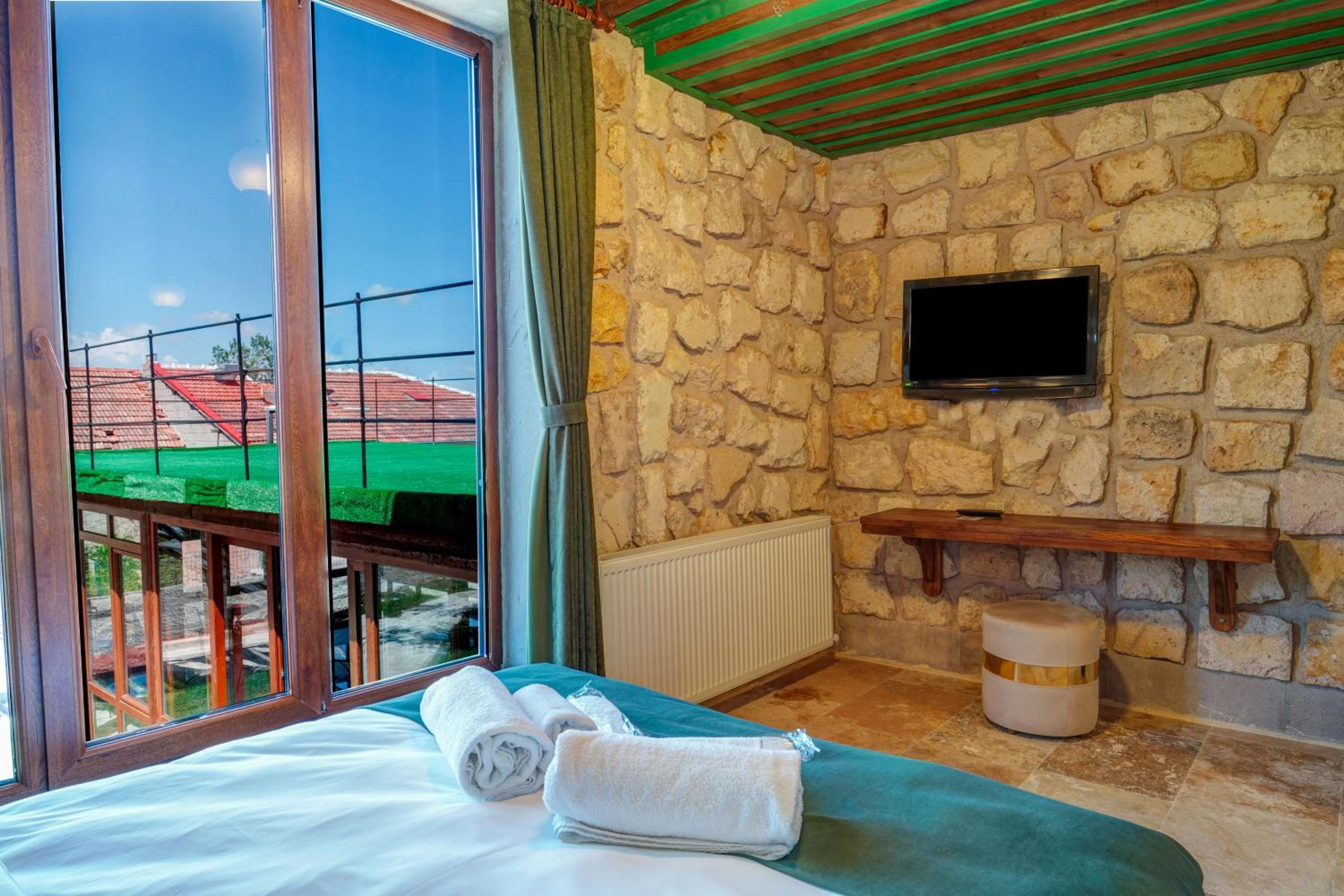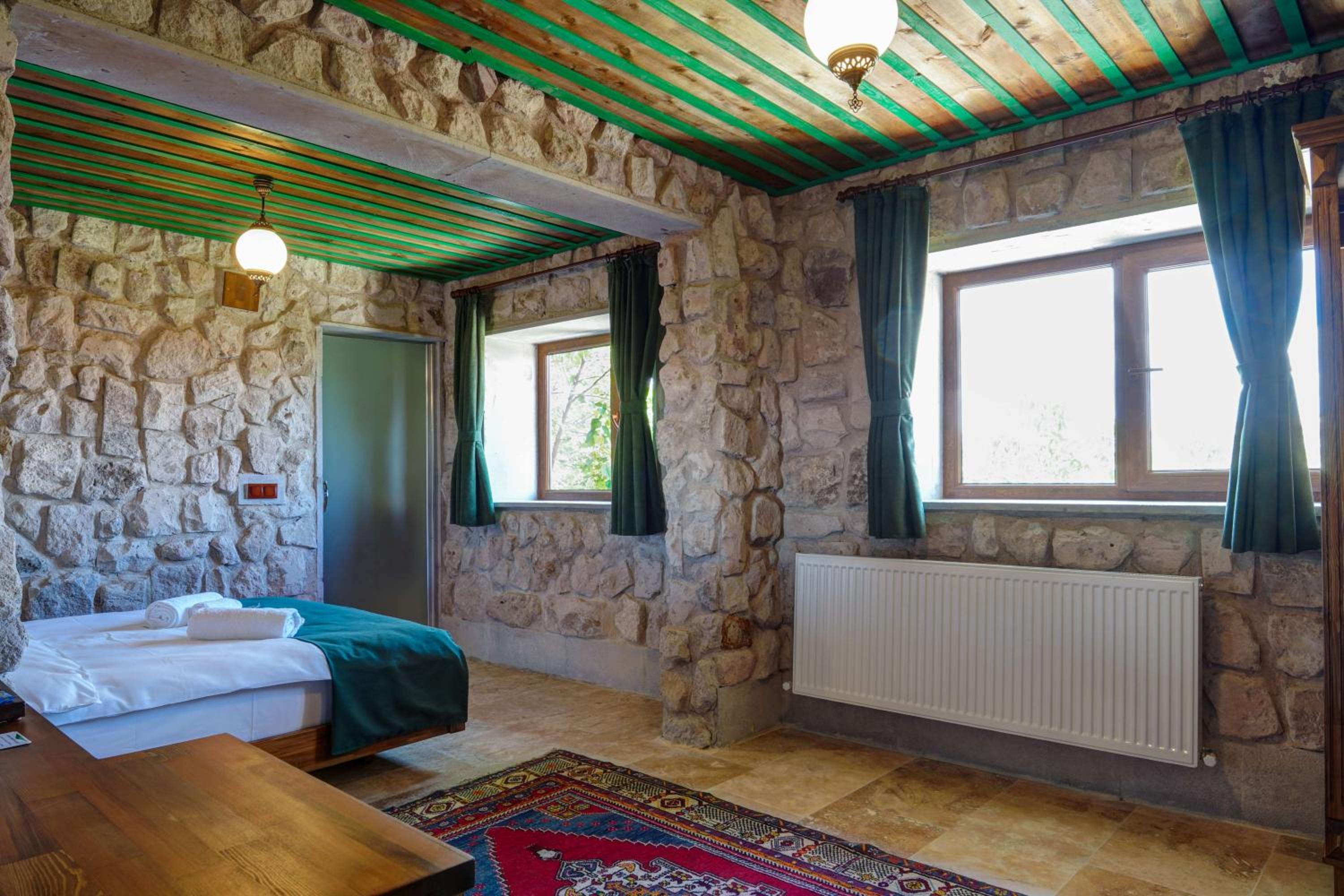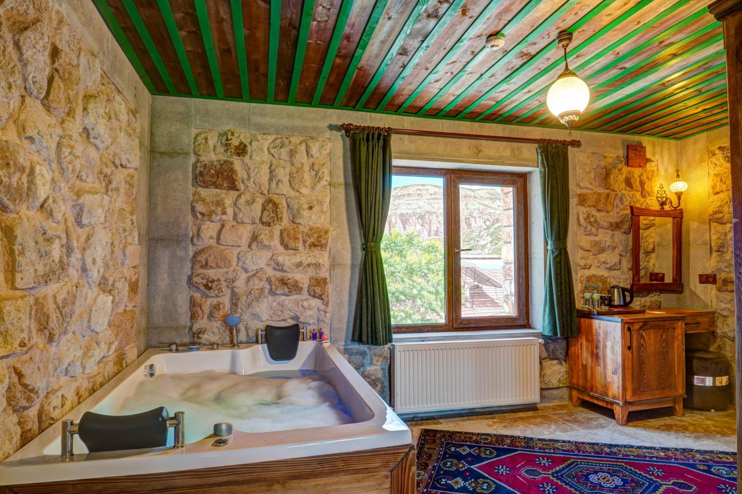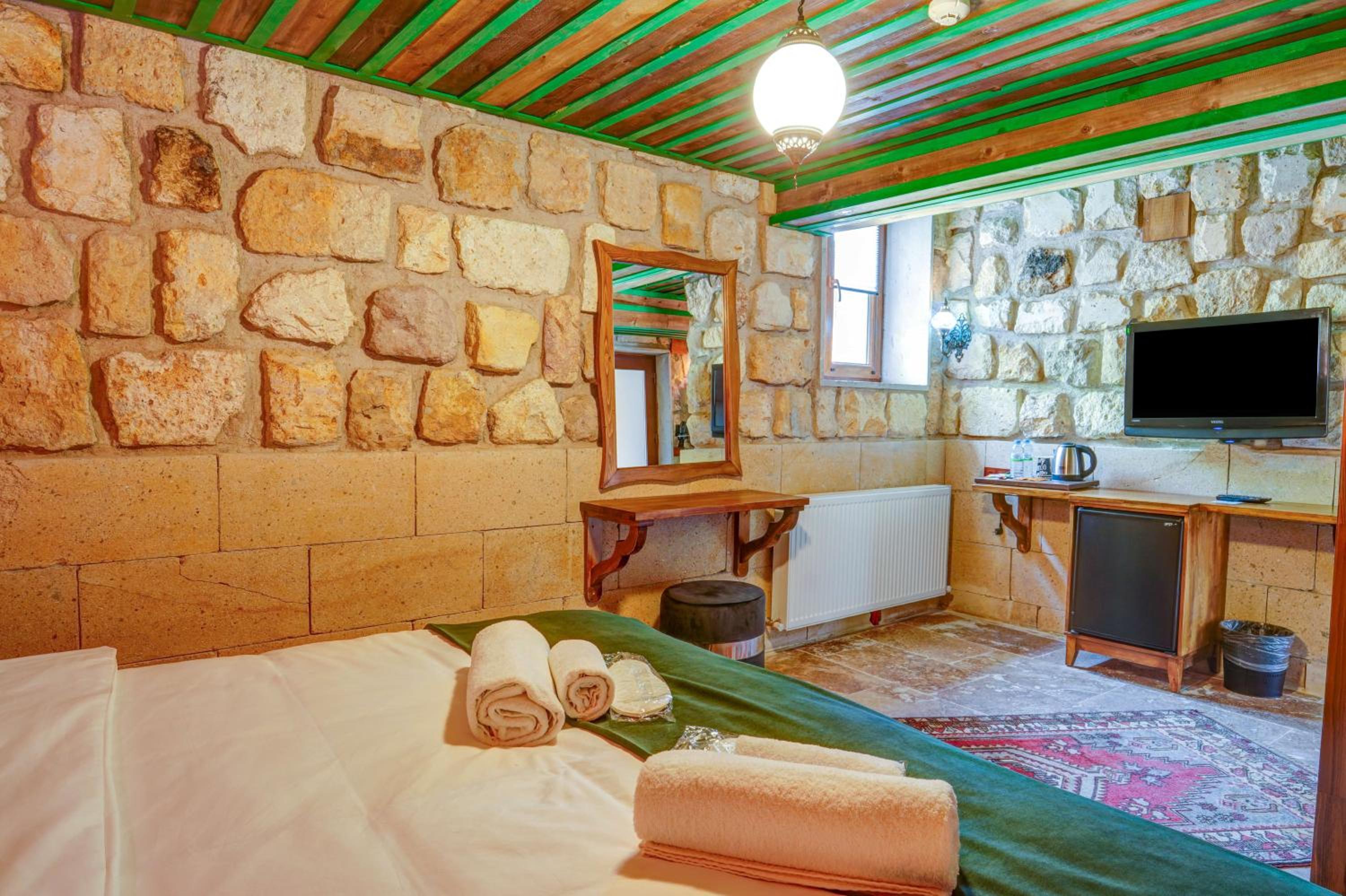 Le bâtiment est magnifique et idéal pour observer les ballons chaque matin depuis les toits en terrasse. La chambre était spacieuse avec tous les équipements nécessaires . L'hôtel est situé au calme et proche des sites de départs de randonnée ou du centre du magnifique village de çavuçin.