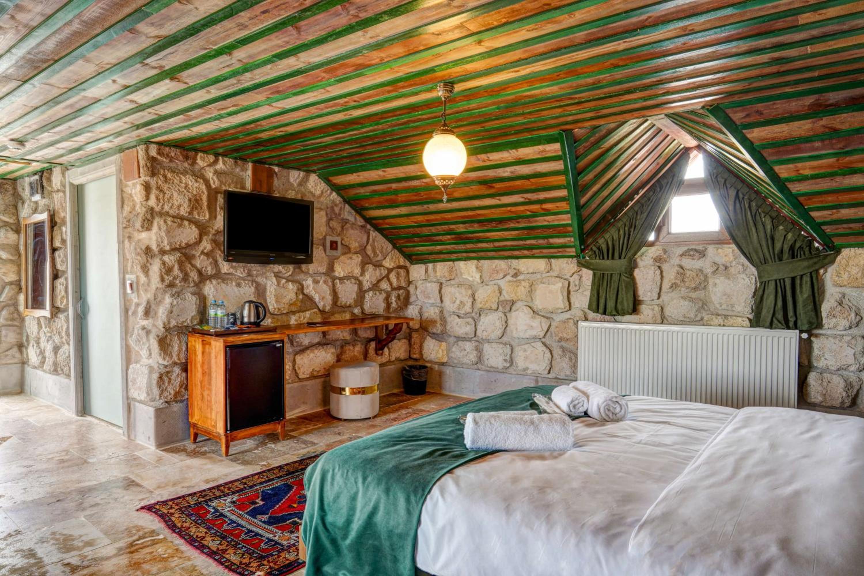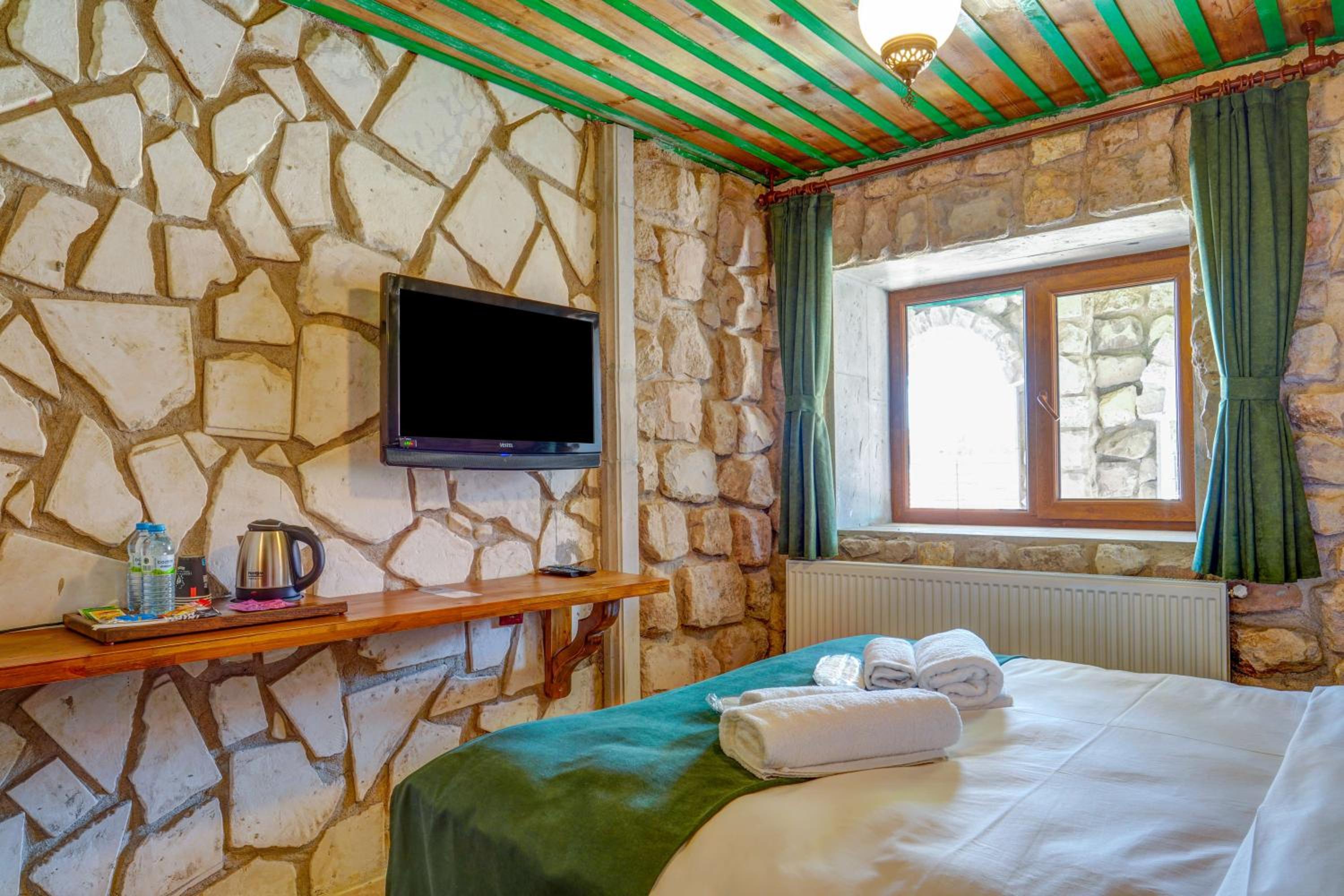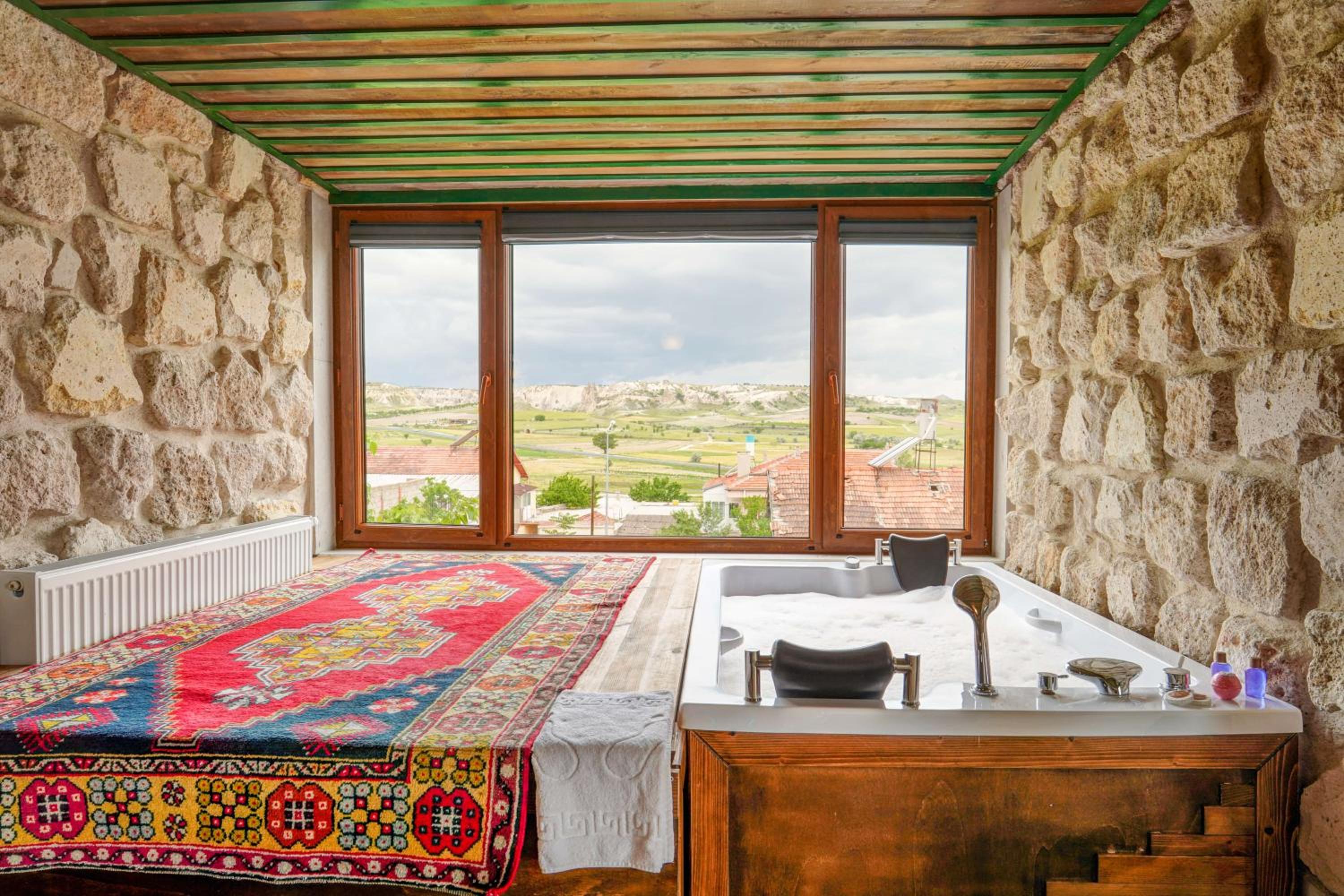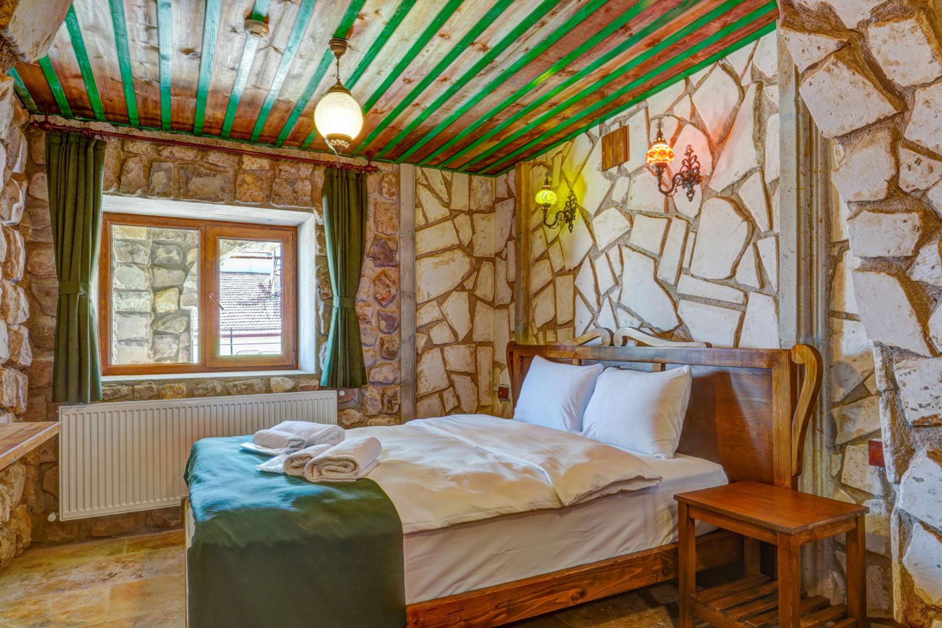 Le bâtiment est magnifique et idéal pour observer les ballons chaque matin depuis les toits en terrasse. La chambre était spacieuse avec tous les équipements nécessaires . L'hôtel est situé au calme et proche des sites de départs de randonnée ou du centre du magnifique village de çavuçin.