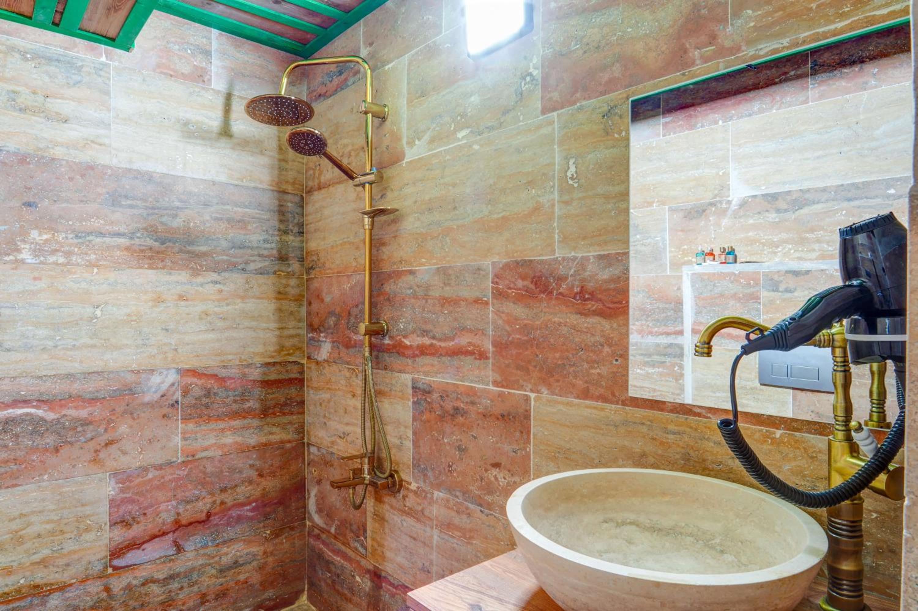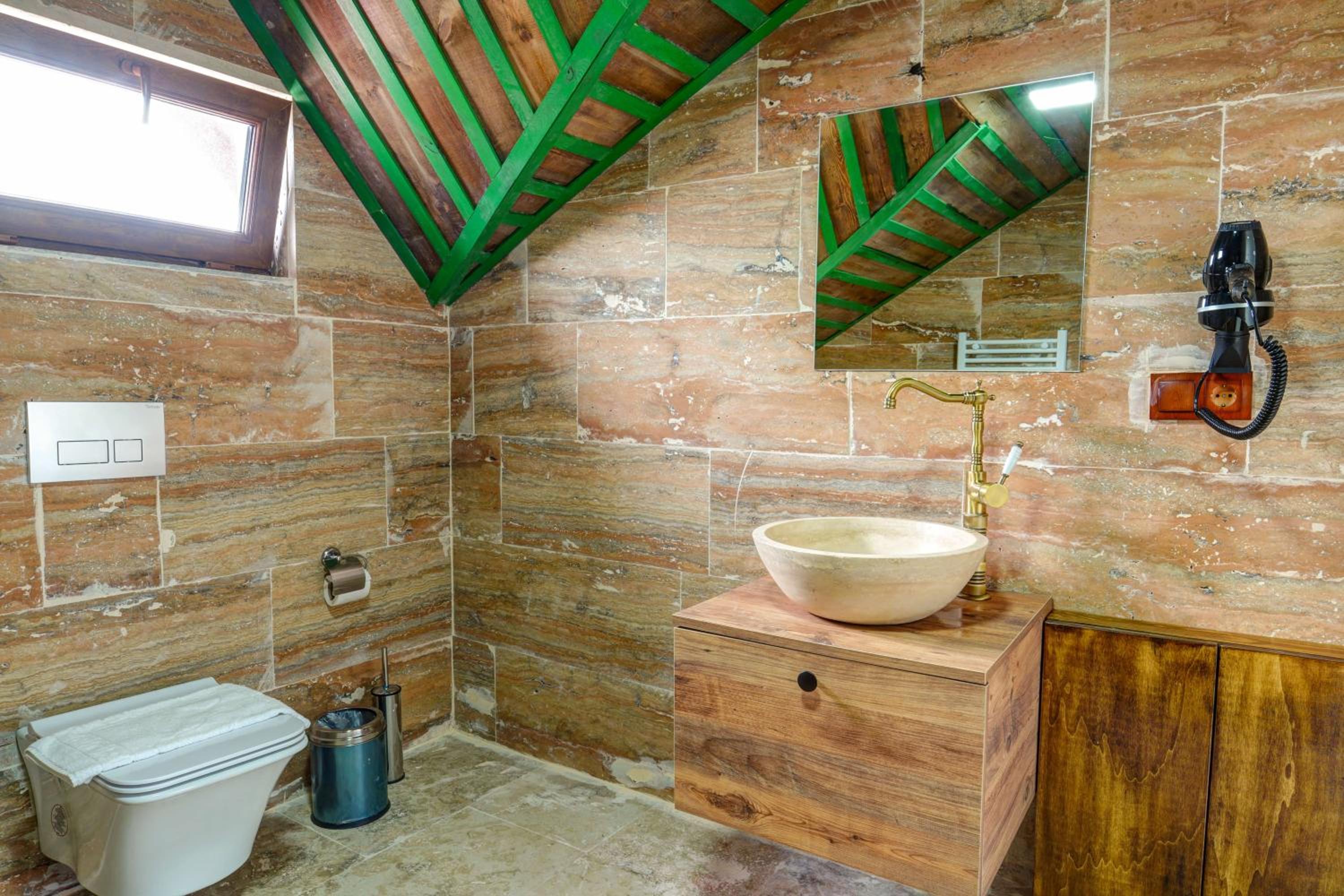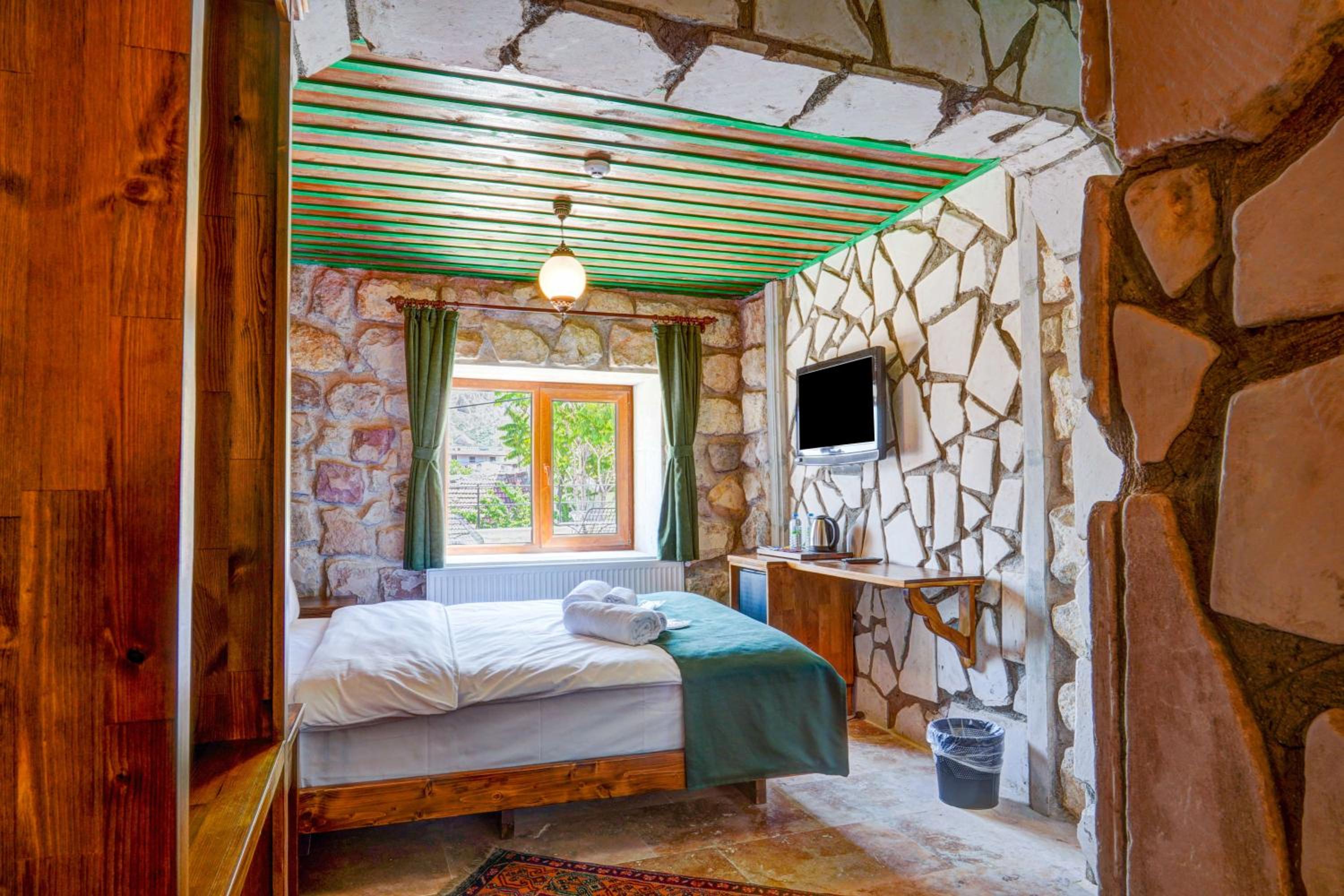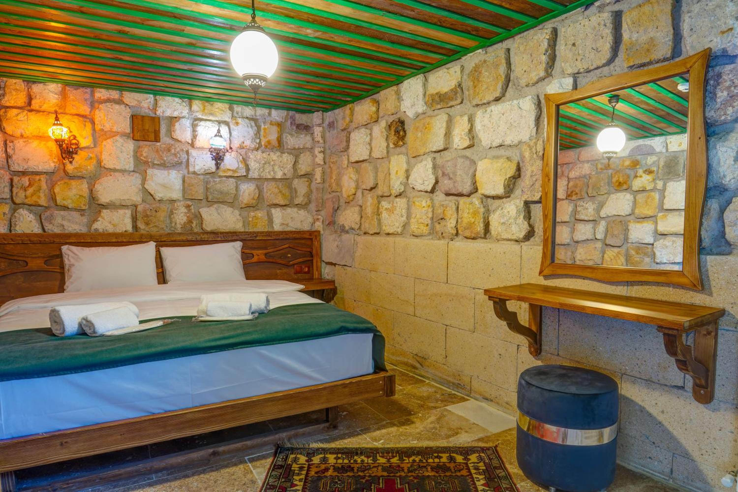 Le bâtiment est magnifique et idéal pour observer les ballons chaque matin depuis les toits en terrasse. La chambre était spacieuse avec tous les équipements nécessaires . L'hôtel est situé au calme et proche des sites de départs de randonnée ou du centre du magnifique village de çavuçin.