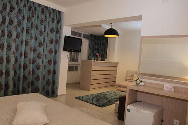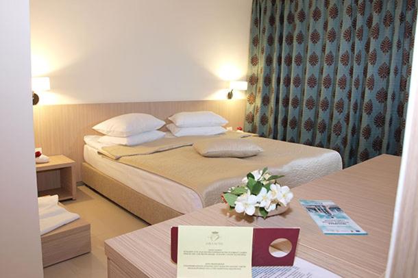 Mic dejun copios cu varietatea necesară. Nu se supăra nimeni daca ne luam fructele la pachet sau cate un sandwich. Servirea rapida si terasa generoasa. Liniște. Curățenie zilnica in camera. Se schimbau zilnic prosoapele daca doreai. Camera mare, saltelele excelente, lenjerie răcoroasă, exista soluții alternative pentru parcare. Șezlonguri incluse la Daytona Beach unde se poate manca bine într-un restaurant de tip impinge-tava. Am fost acolo cu mașina din comoditate de concediu, dar se ajunge si pe jos in 10 minute. Plaja este liniștită. Locul este pentru familii cu copii sau seniori. Hotelul se afla in spatele bisericii, ne-am bucurat deci de slujba de Sf. Maria. Raport bun calitate-pret: am plătit 3000 + 90 de lei taxa de stațiune pentru un sejur de 8 nopți cu rezervare timpurie. Nu au încasat diferența de TVA, desi am rezervat in ianuarie, ceea ce ni s-a parut elegant. Pentru o cina in statiune recomandam restaurantul Sigma. Suntem incantati de sejur. Vom reveni.