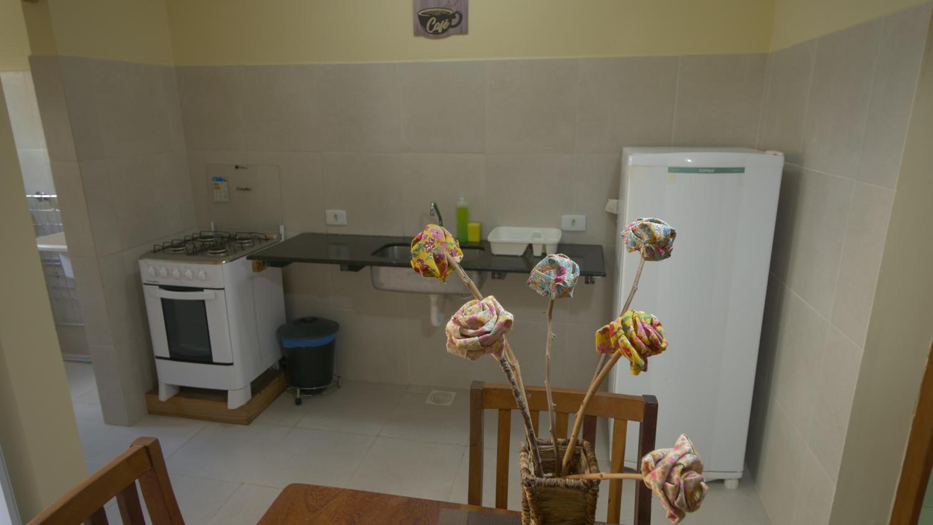 Acomodação com dois quartos, sala dois banheiros, mini cozinha, bom custo beneficio. Bem localizado, rua tranquila mas ao lado da rua principal.