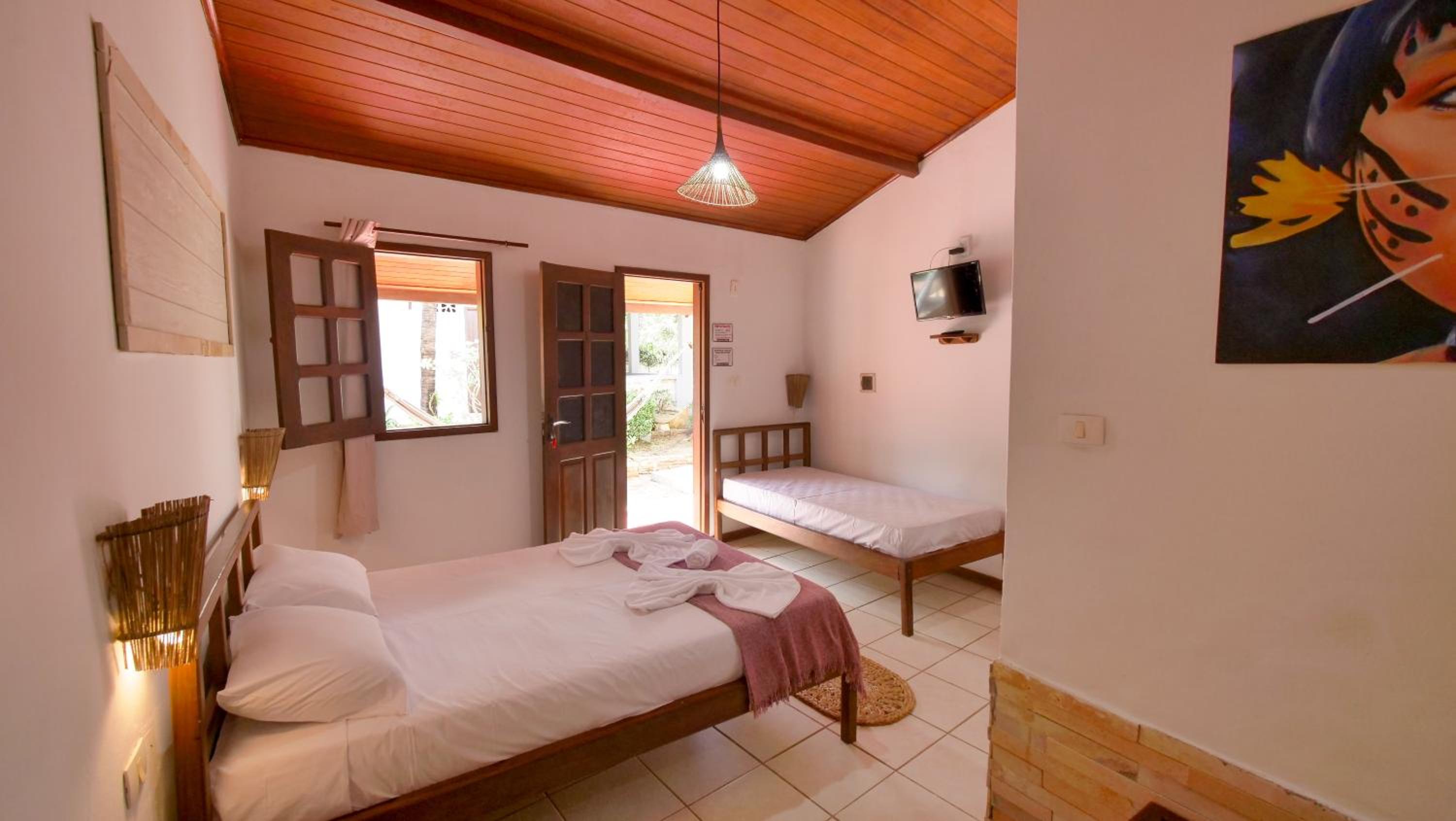 Ficamos em um duplex anexo da pousada, isso não estava claro na hora da reserva. Havia dois banheiros, mas apenas um com chuveiro para 4 pessoas hospedadas. A cama de casal era muito baixa e o colchão muito fino e isso não proporcionava muito conforto. O banheiro do térreo liberava um odor ruim.