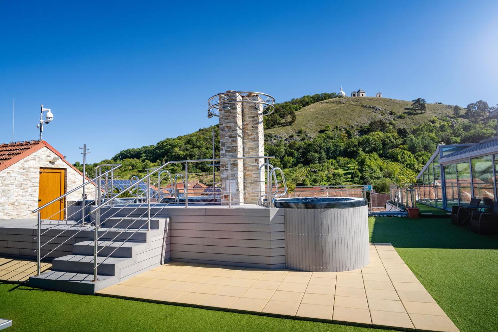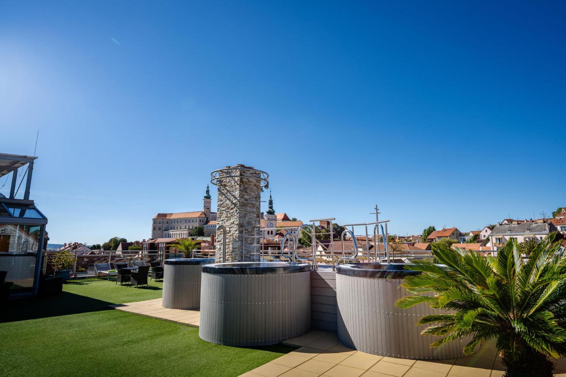 Místo v centru Mikulova s překrásnými výhledy, které si člověk může užívat při snídani, ve vířivce apod.