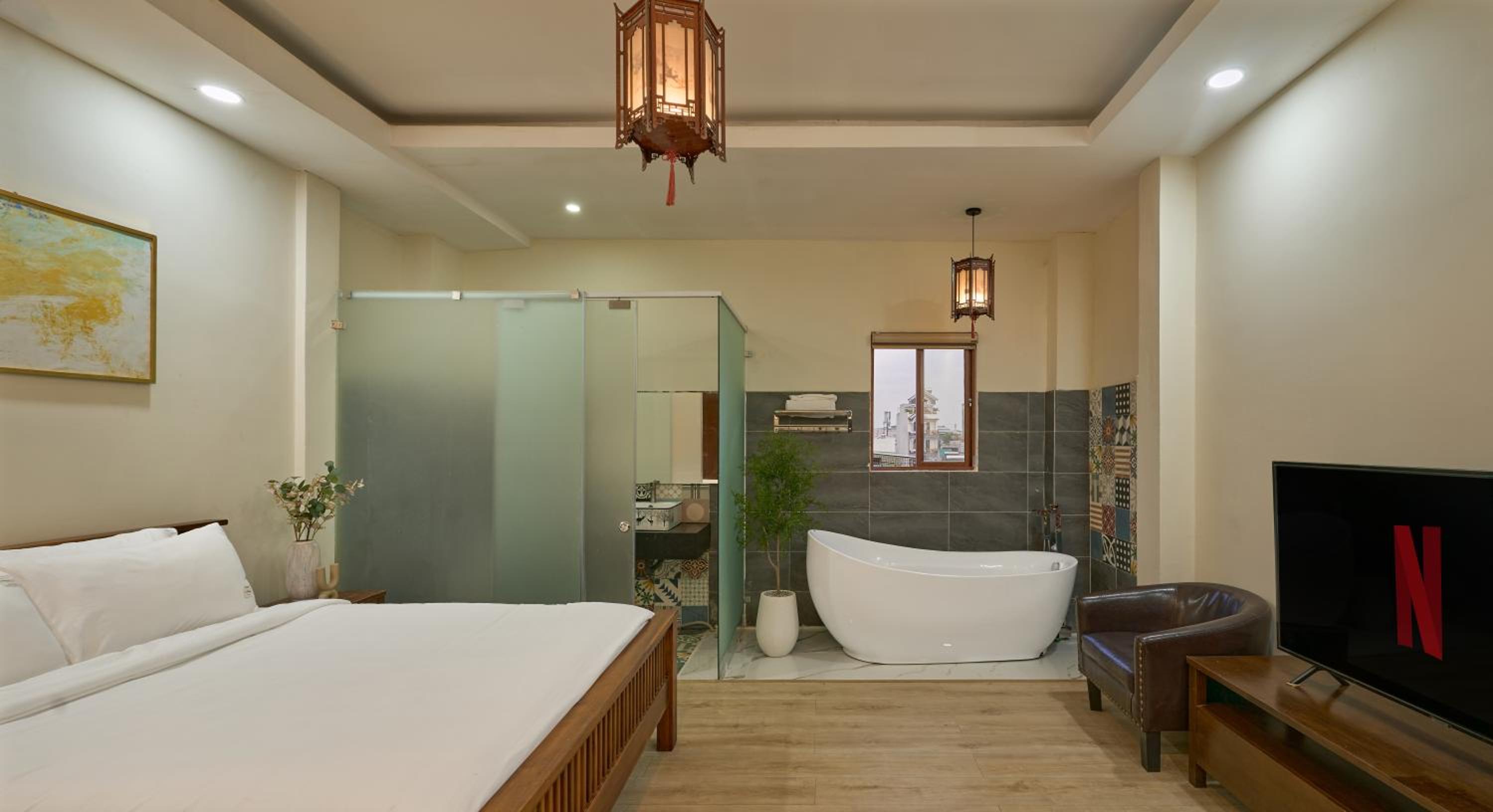 Each air-conditioned room at our 1-star hotel features free WiFi, a private bathroom, a fridge, minibar, kettle, and flat-screen TV. Some rooms even offer a beautiful city view for guests to enjoy.