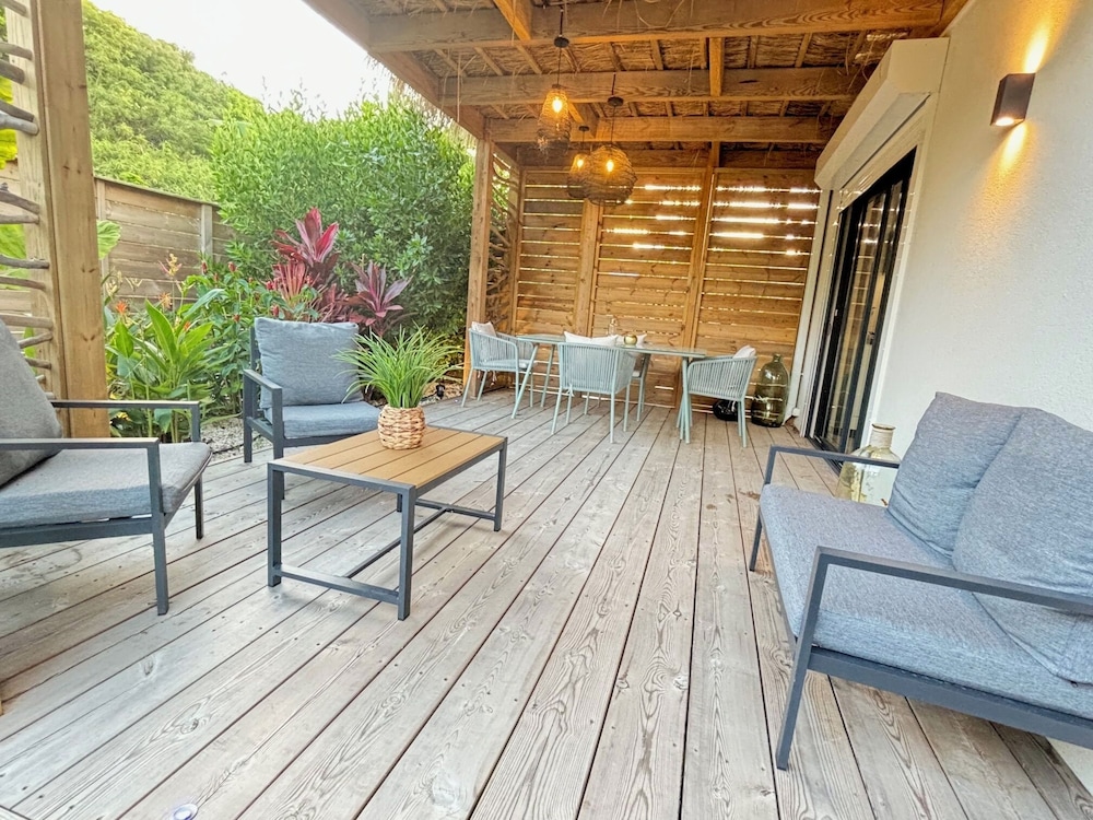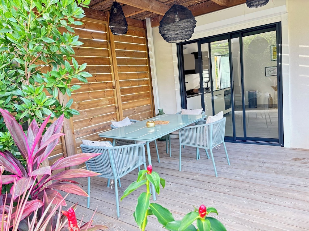 Wonderful, intimate spa like in. Modern rooms, excellent wifi, comfortable bed. If you choose, we used kitchen for our meals, but the food was very good at the poolside bar restaurant. A car is recommended as it's quite hilly. This area has great restaurants and beaches close by, and a nice taste of French culture. Peggy is a wonderful hostess. A great escape!