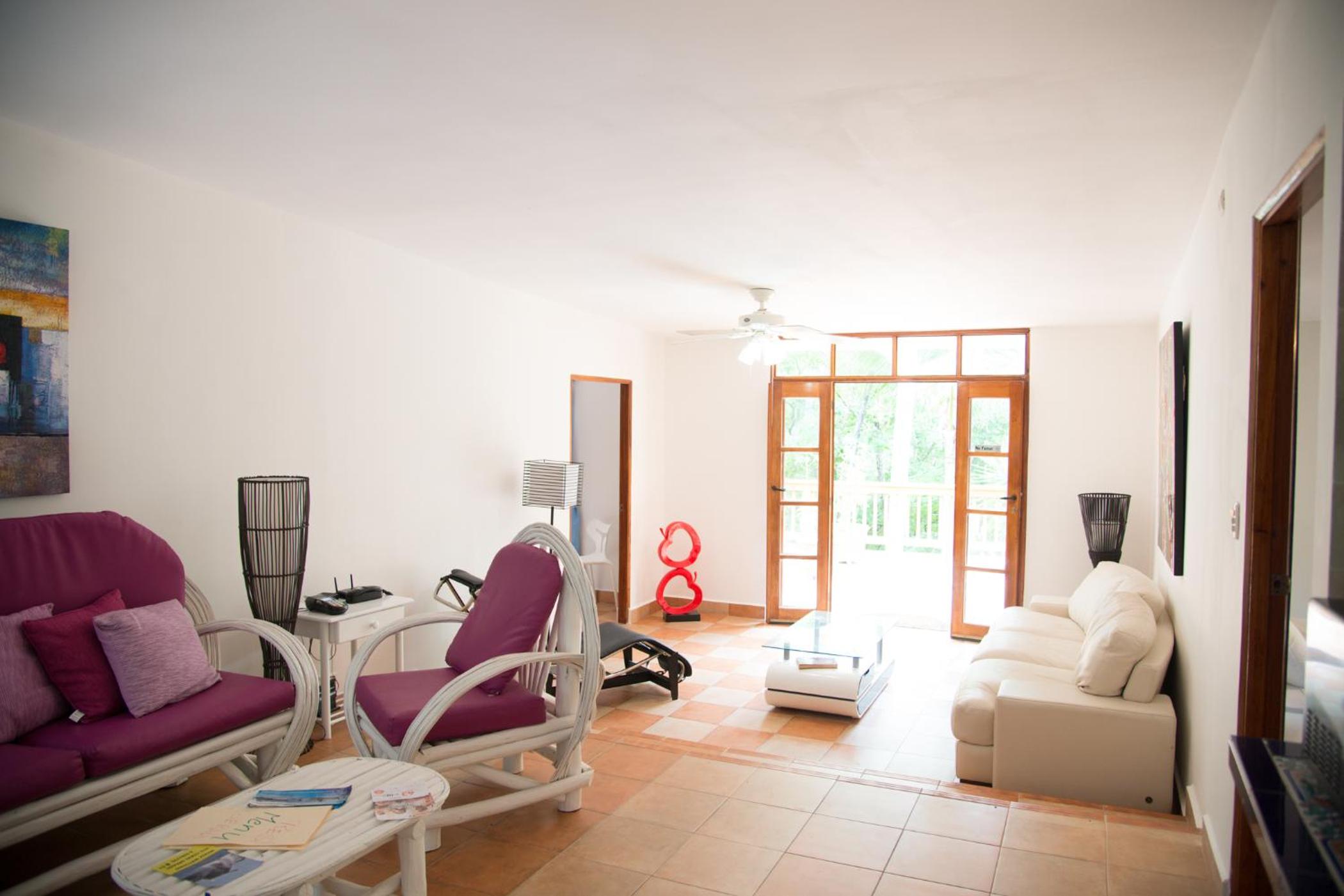 Our host Gabriela picked us up from the ferry. She arranged a golf cart for us, and booked us a snorkeling trip out round the islands. She was very friendly and charming and could not have been more helpful. The roo was basic but very clean with a good shower and good Air con. You can sit on the terrace and see deer and watch the humming birds.