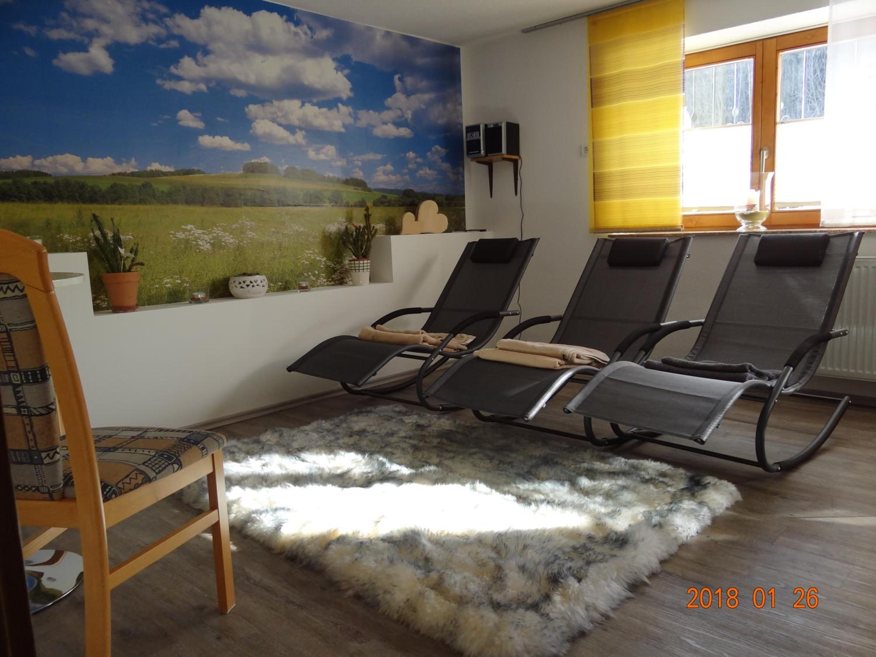 Die Sauna 9€ pP (bis 100 °C) mit separatem Wohlfühlbereich, Kerzenlicht, entspannender Musik und hausgemachtem Kräutertee war das absolute Highlight!
