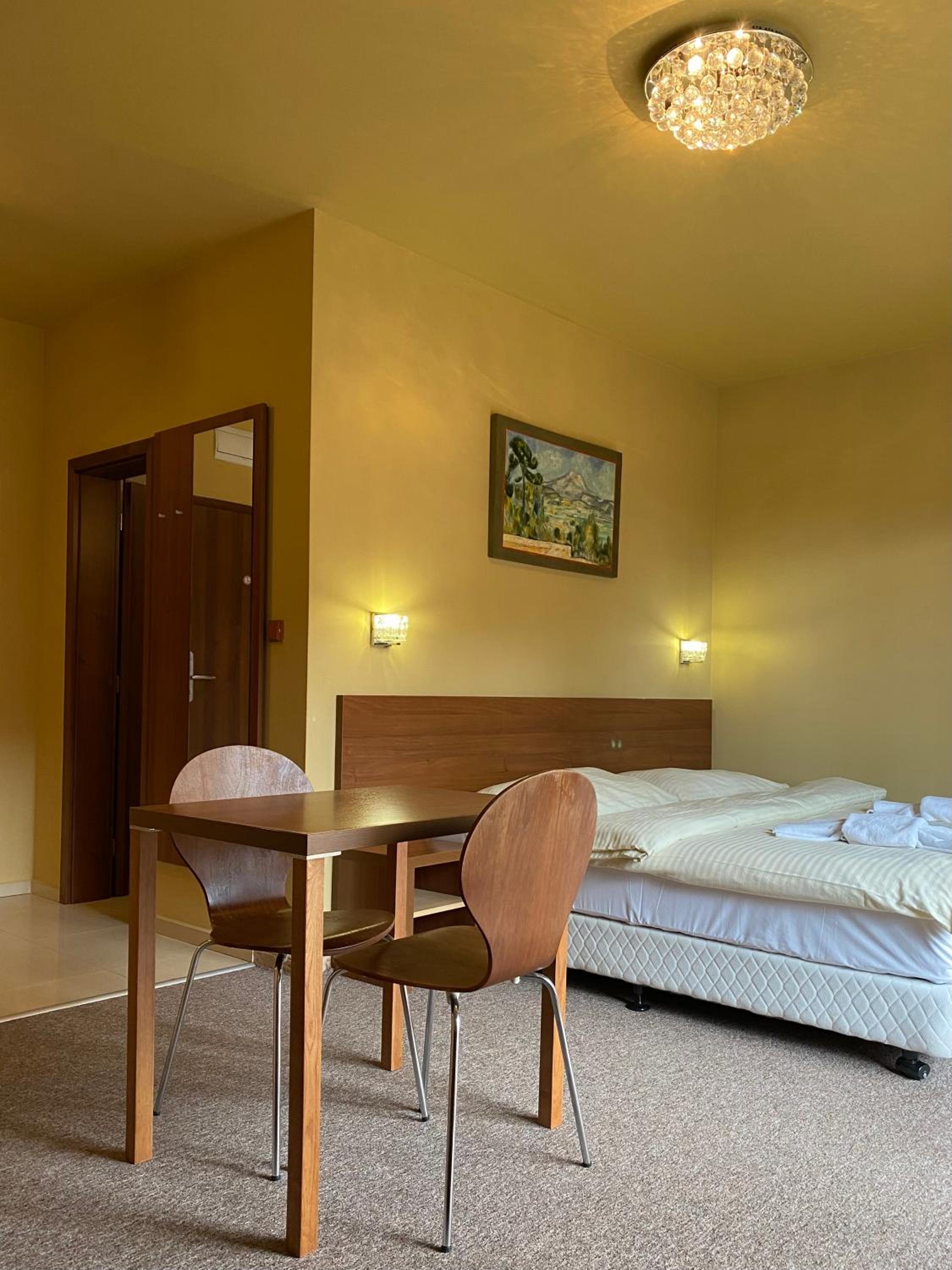 Ubytovani bezkontaktní. Ubytovatel se s nami spojil sms a poslal pokyny. Pokoj byl čistý a dostatečně velký. Přistýlka byla připravena. Problém byl trochu s úložným prostorem. Větší část skříně byla vyplněna ložnice prádlem (asi, možná polstare). V koupelně chybí nějaká políčka ci skříňka na věci. Ale to jsou maličkosti. Celkově byl apartmán pěkný a dostačující pro naše potřeby. Resort je příjemný a klidný. V místě bazén s atrakcemi za 1 euro pro ubytované a hřiště na kartičku (nám tedy nefungovala, ale vzdy nás nekdo vpustil) a minizoo.