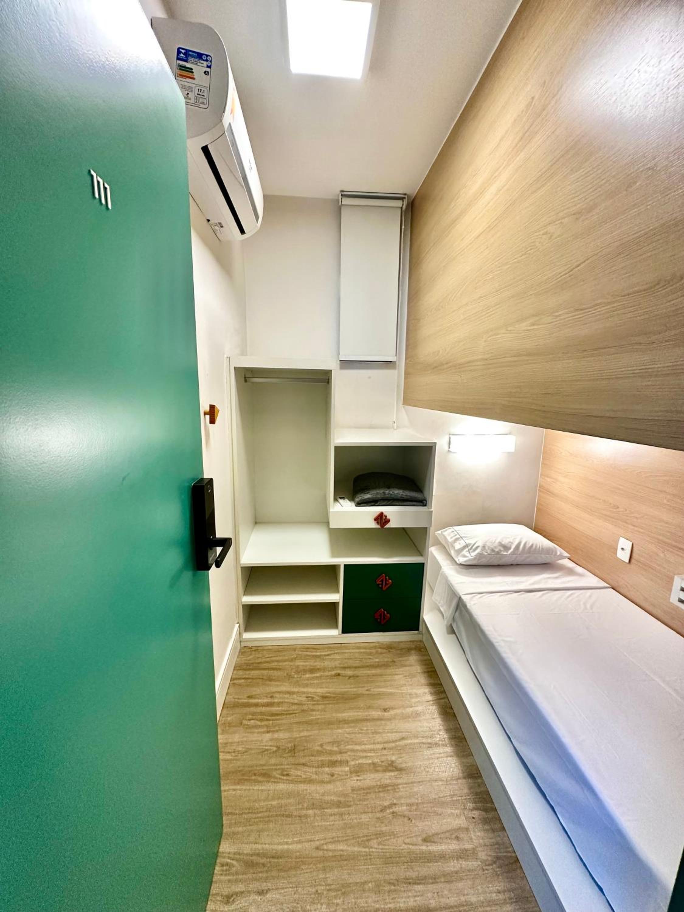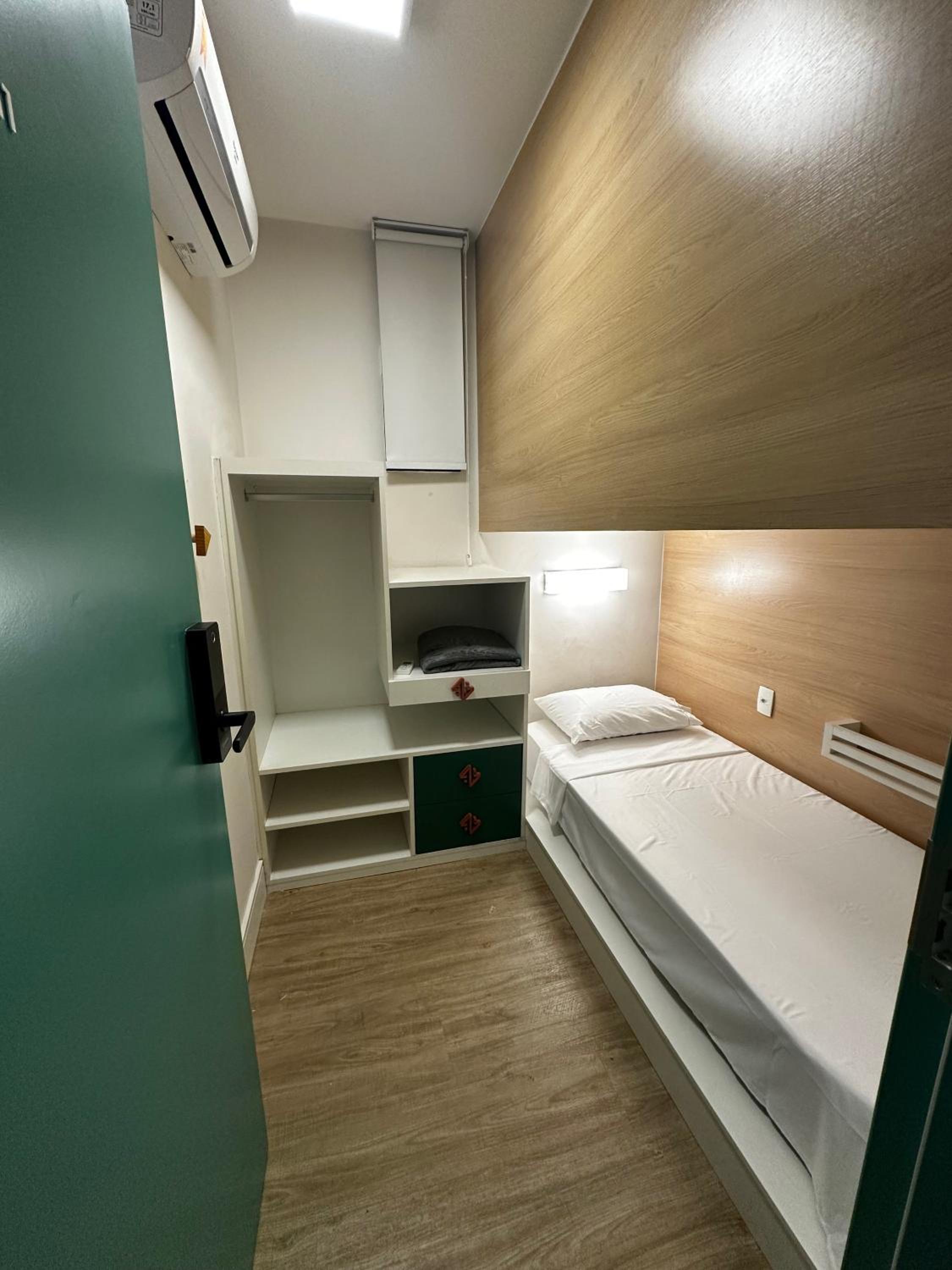 Eu imaginei que o quarto era pequeno, só não sabia que era tanto kk só cabe literalmente 1 pessoa. Não tive uma boa experiência no check-in, pois não tem ninguém na recepção esperando você chegar, é tudo automatizado. Porém, tem que ter acesso com senha, e o anfitrião me deixou me esperando mais de 1 hora até conseguir acesso (não sei o motivo). Um dos banheiros que fui, não funcionou água quente. No mais, sem reclamações. Vale a pena pra quem só vai pra lá pra dormir, o custo-benefício é ótimo, mas se quiser mais conforto, não.