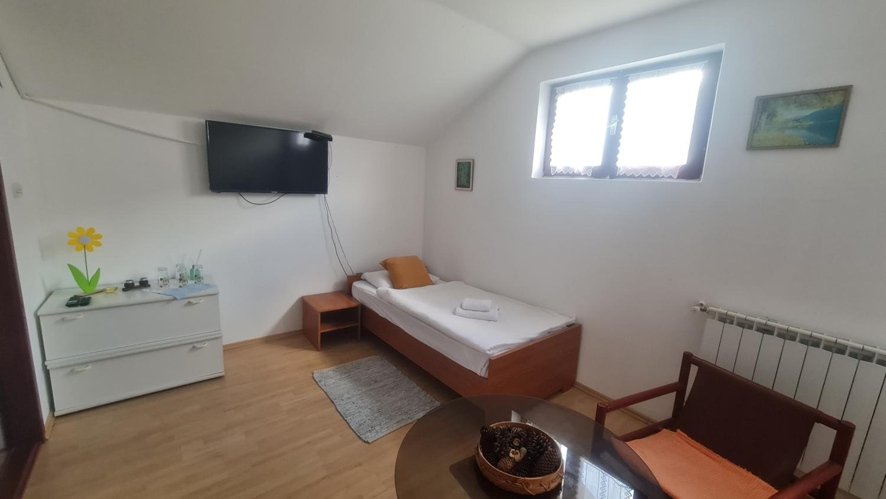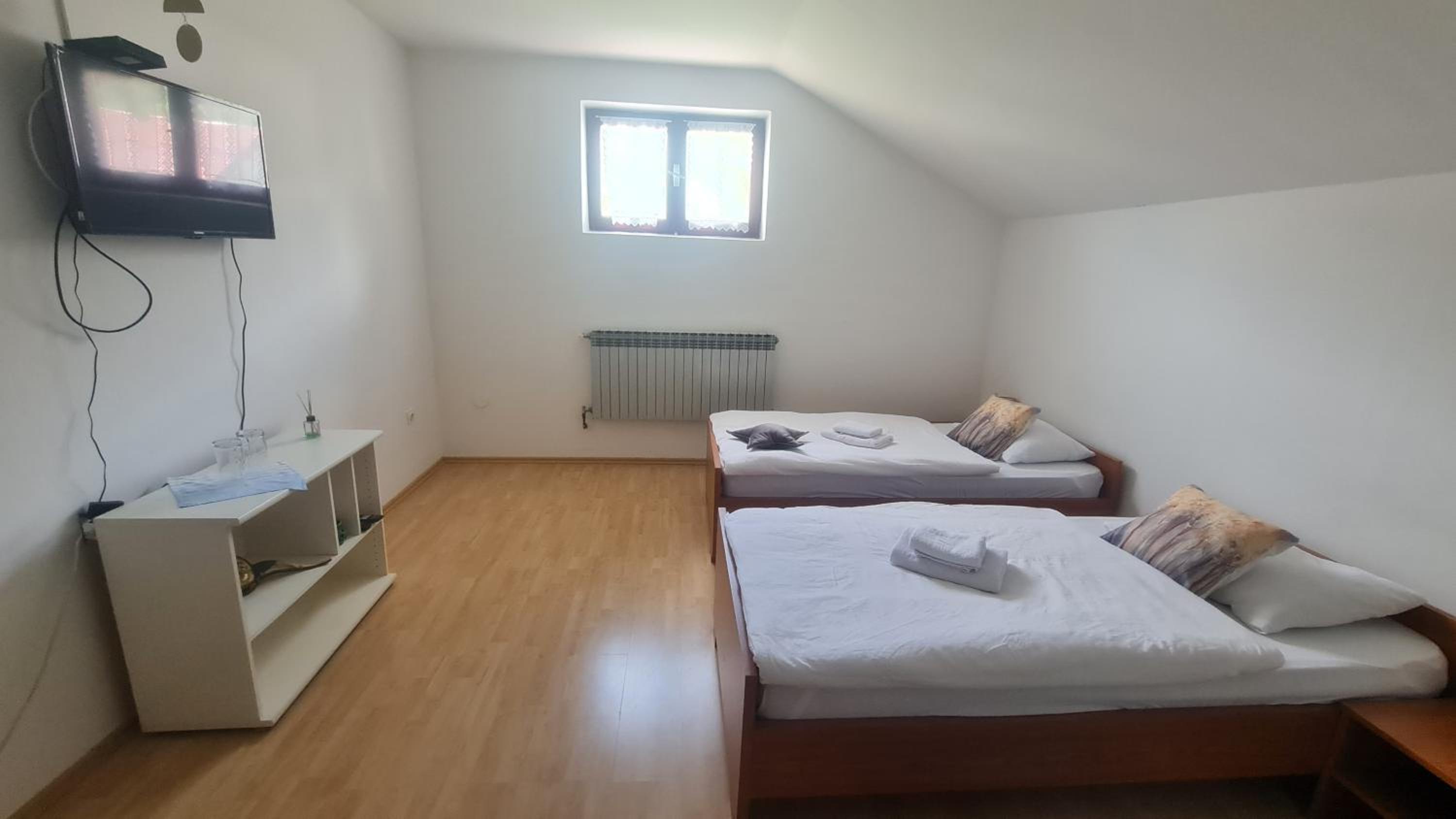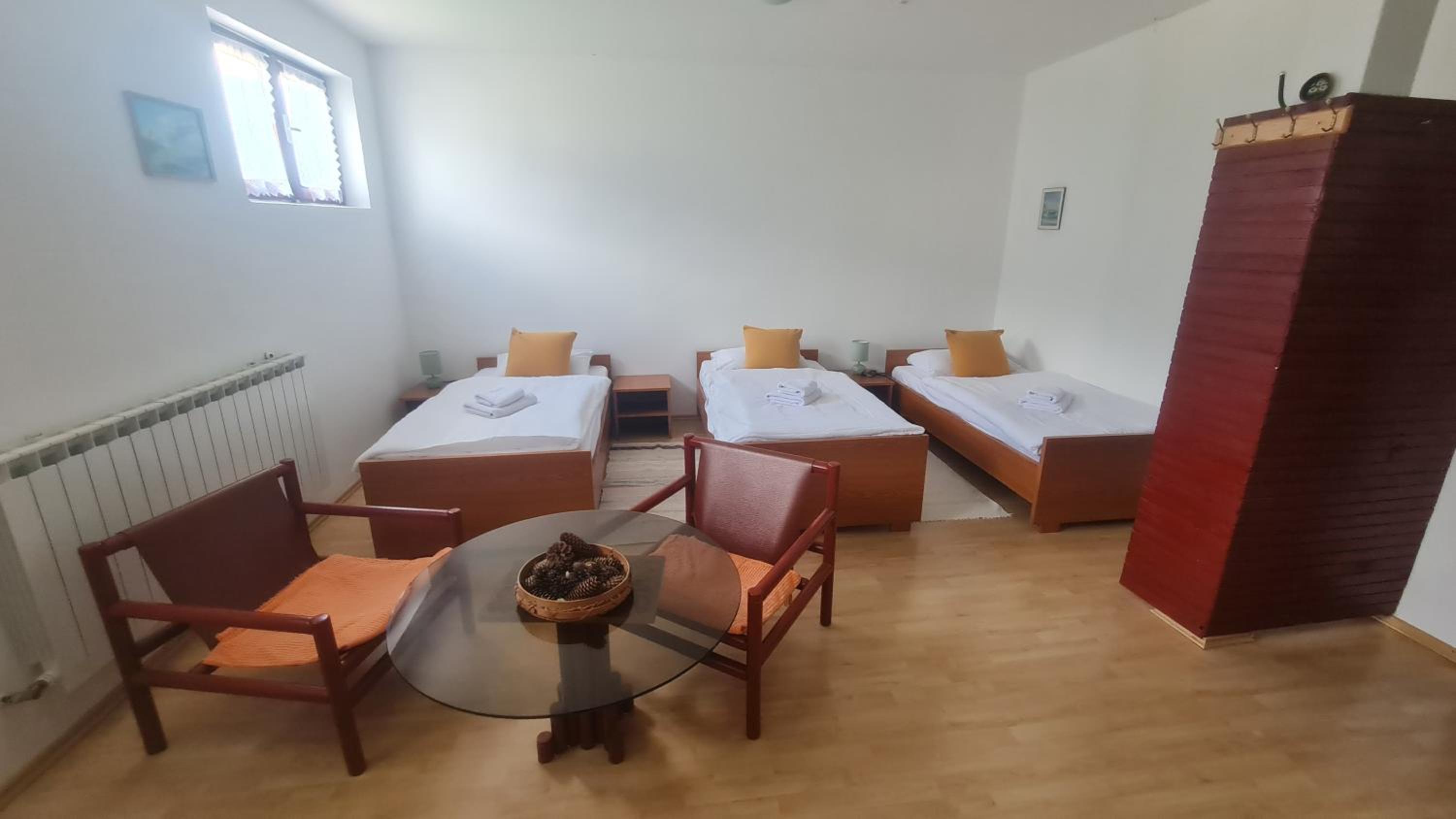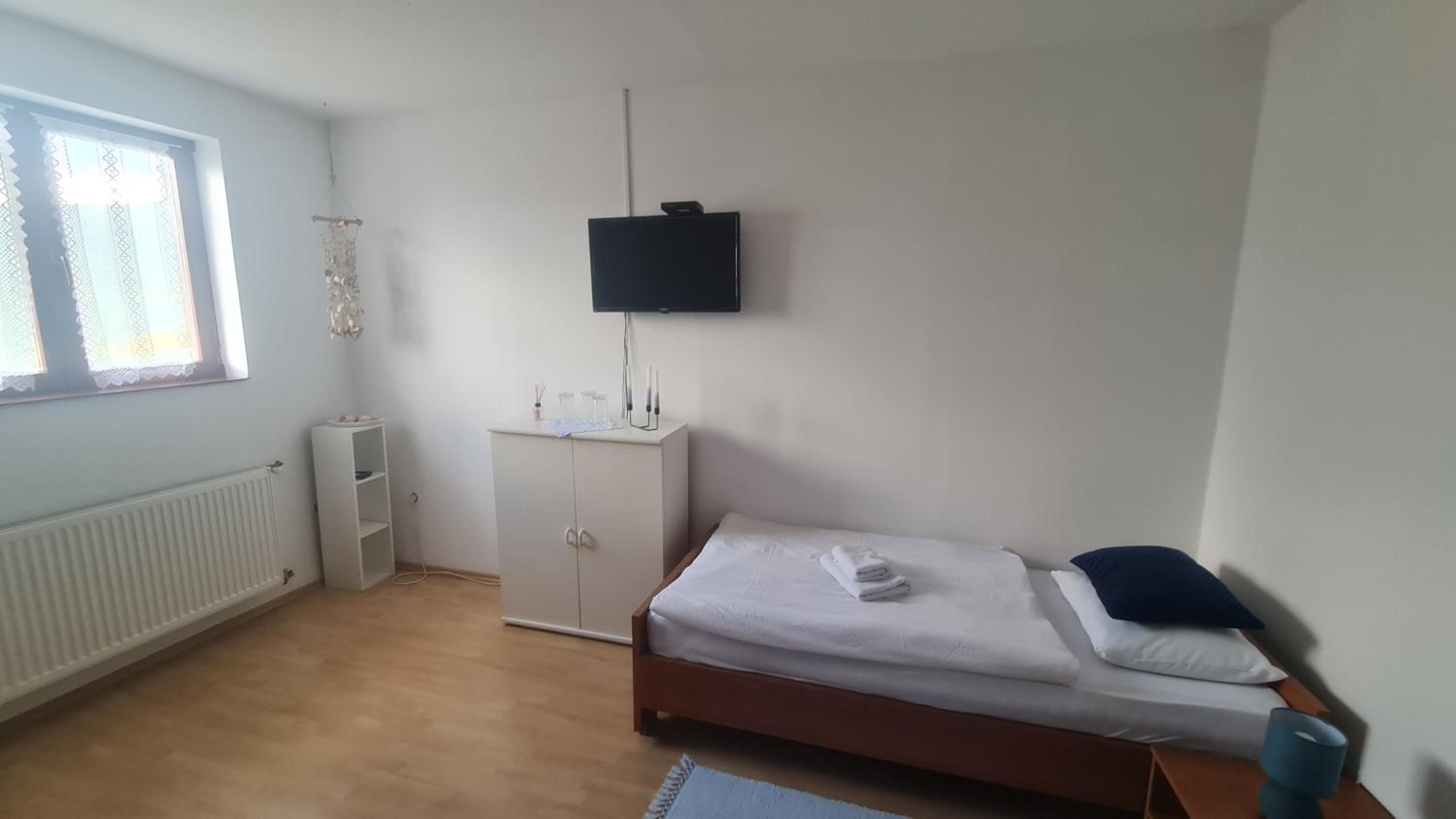 Pokój bardzo brudny, mnóstwo pajęczyn i pająków. Moje dzieci boją się pająków i bały się tam spać, co chwilę jakiegoś znajdowały. W każdym kącie brud, pod łóżka strach zaglądać. Pokój fatalnie wyposażony, nie ma nawet tak oczywistych rzeczy jak szklanki, sztućce, czy krzesła dla każdej osoby, żeby można było usiąść. Jest jeden zdezelowany fotel i tak samo zdezelowany stół. Pościel czysta i pachnąca, ale na niektórych łóżkach była potargana i zniszczona. Właściciela obiektu w ogóle nie widzieliśmy, dom był otwarty i pokój czekał z kluczem w drzwiach, dostałem tylko instrukcje dokąd się udać.