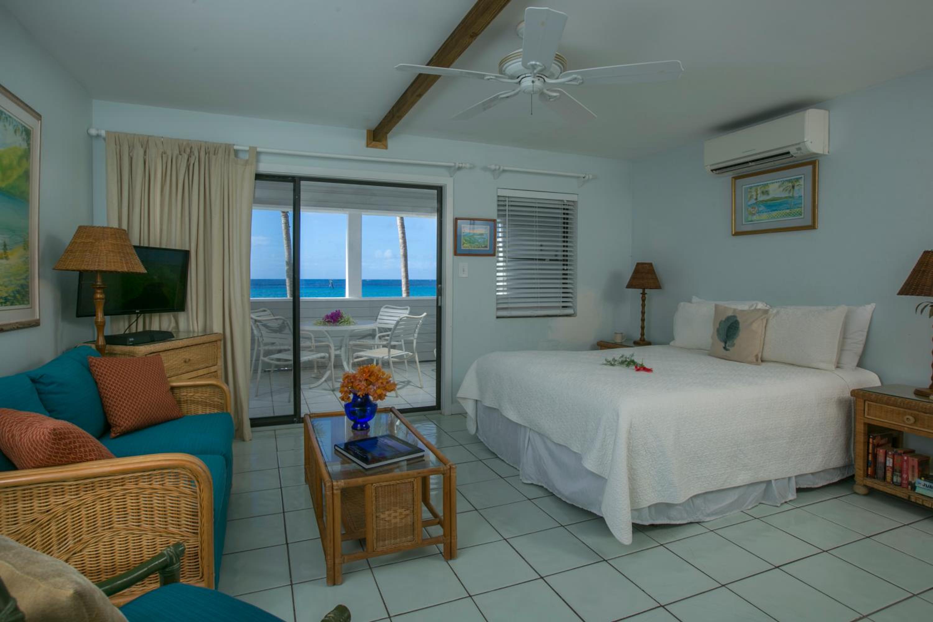 There was a large space to hang out inside. The kitchen was set up nicely to allow us to cook breakfast every day which is good because restaurants on St. John can be expensive. The view from the balcony was awesome. The water is only 50 feet away and in full view from the room. There are an endless number of great snorkeling places and beaches 20 minute drive to an hour away. None were overcrowded and most were free. Walking distance to the downtown area for drinks and food. There is a beach downtown too.
