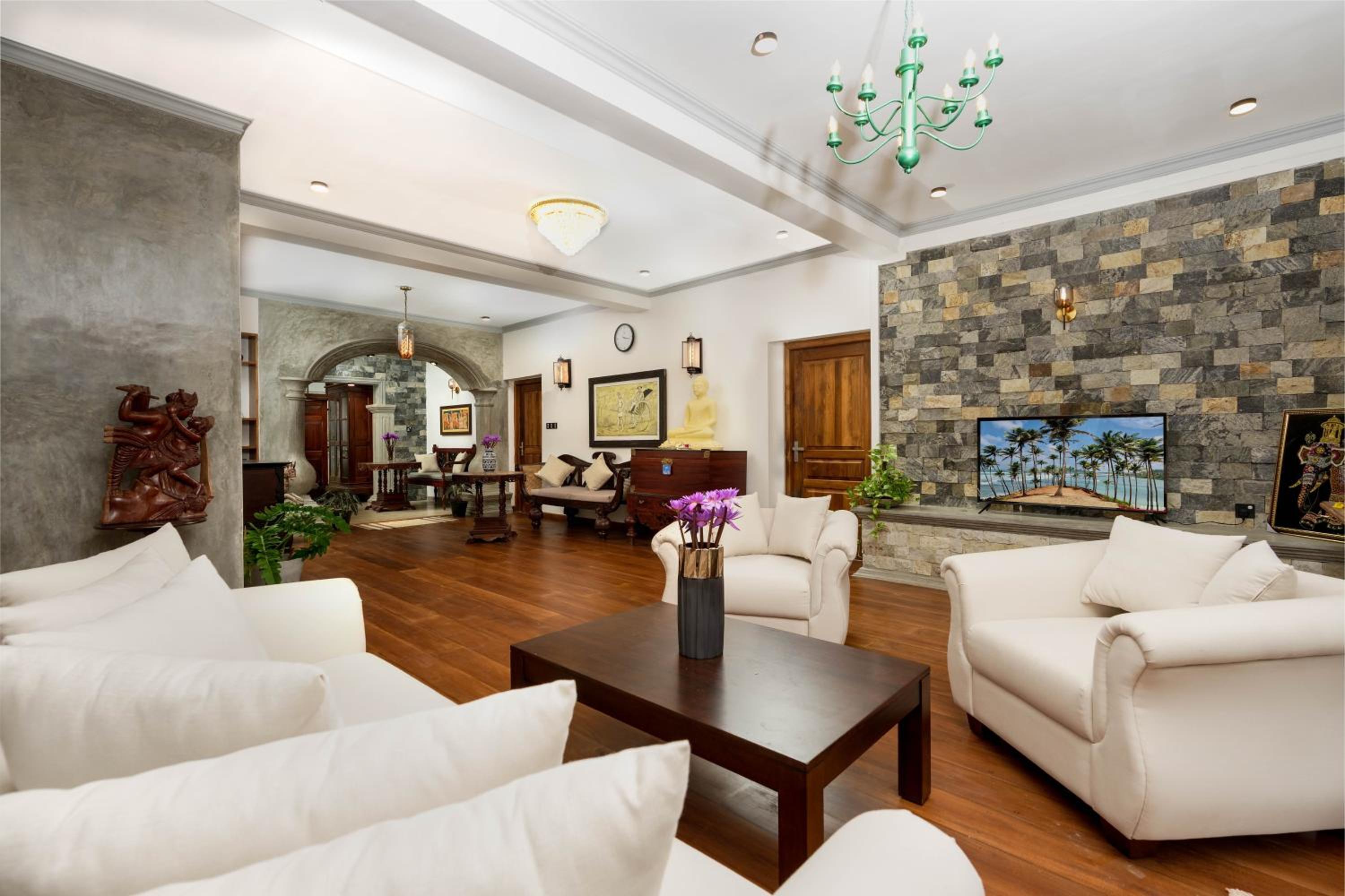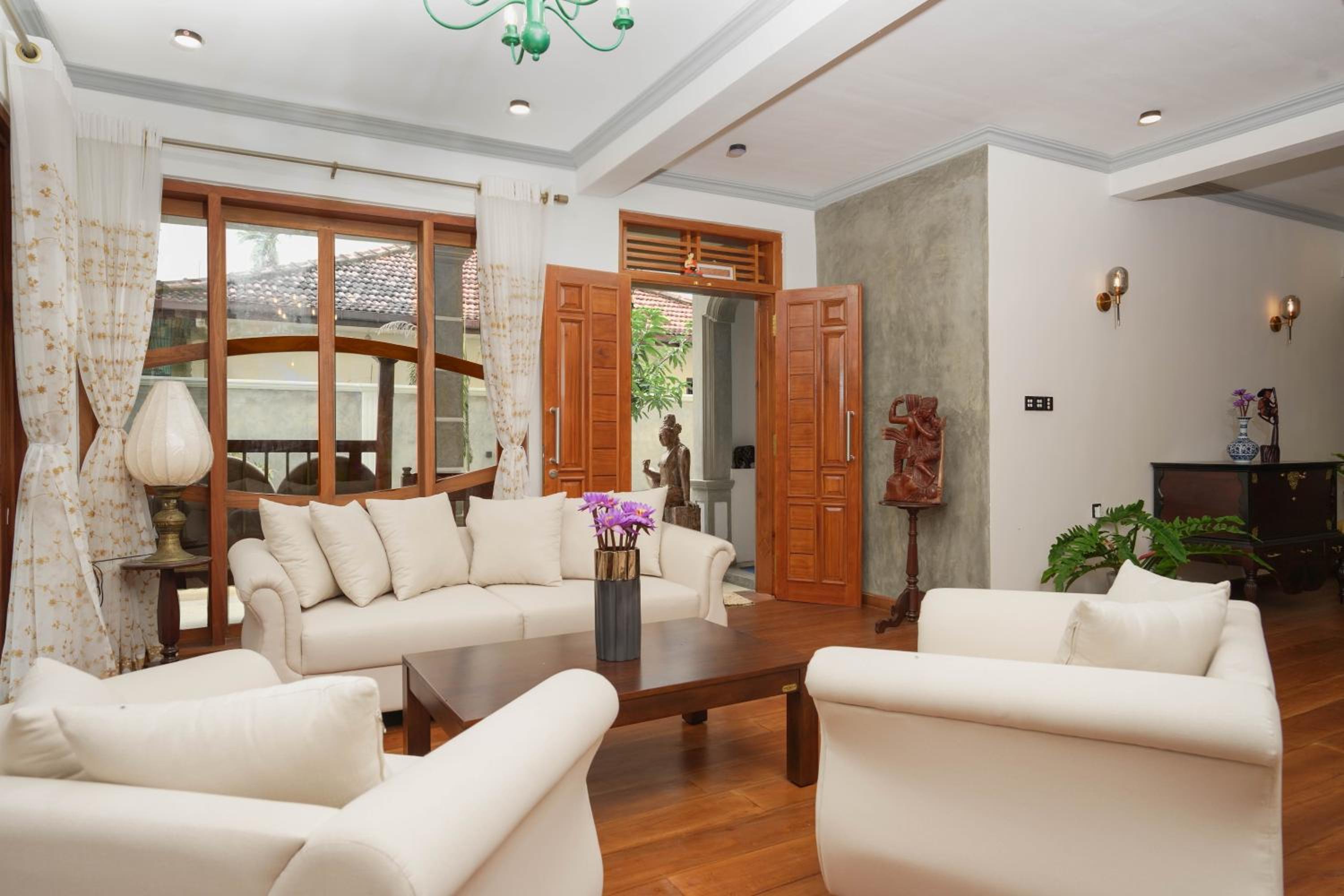 We book villa in ahangama but it not nice likely found Morning star ♥️♥️New, spacious, two-story villa. The place is quiet, but not remote, there is a large supermarket and transport nearby. 5 bedrooms, shared kitchen and living room. Designer interior, lots of wood, paintings, statues. Bathrooms with good plumbing, but hot water does not come right away - you have to wait. Excellent pool, clean, water is filtered normally. The kitchen has everything you need for cooking and serving, the owners offer to cook breakfast at any time convenient for you.. I liked the villa! Nice place!
