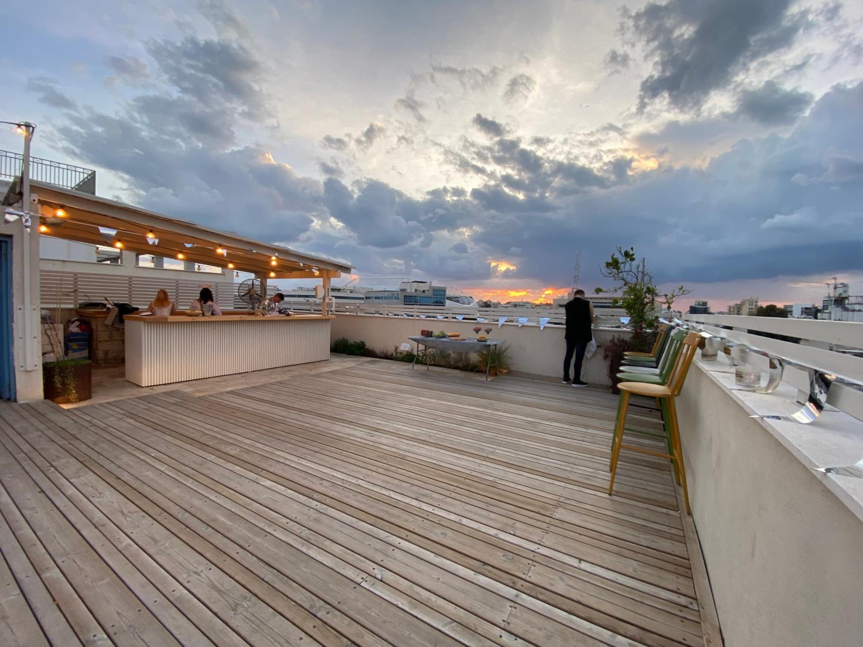 Enjoy breathtaking city views while lounging by the rooftop pool or relaxing on the terrace at Terasa TLV.
