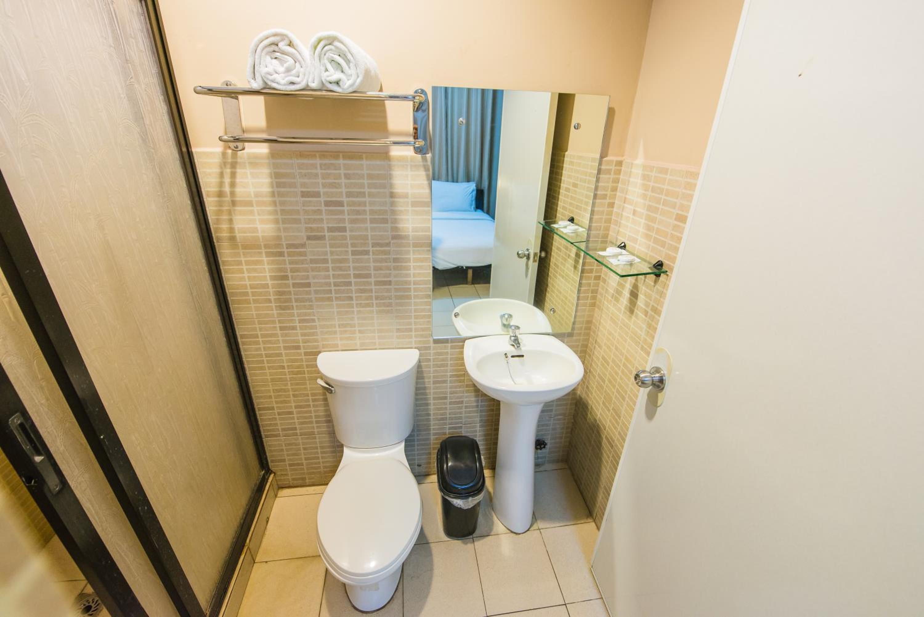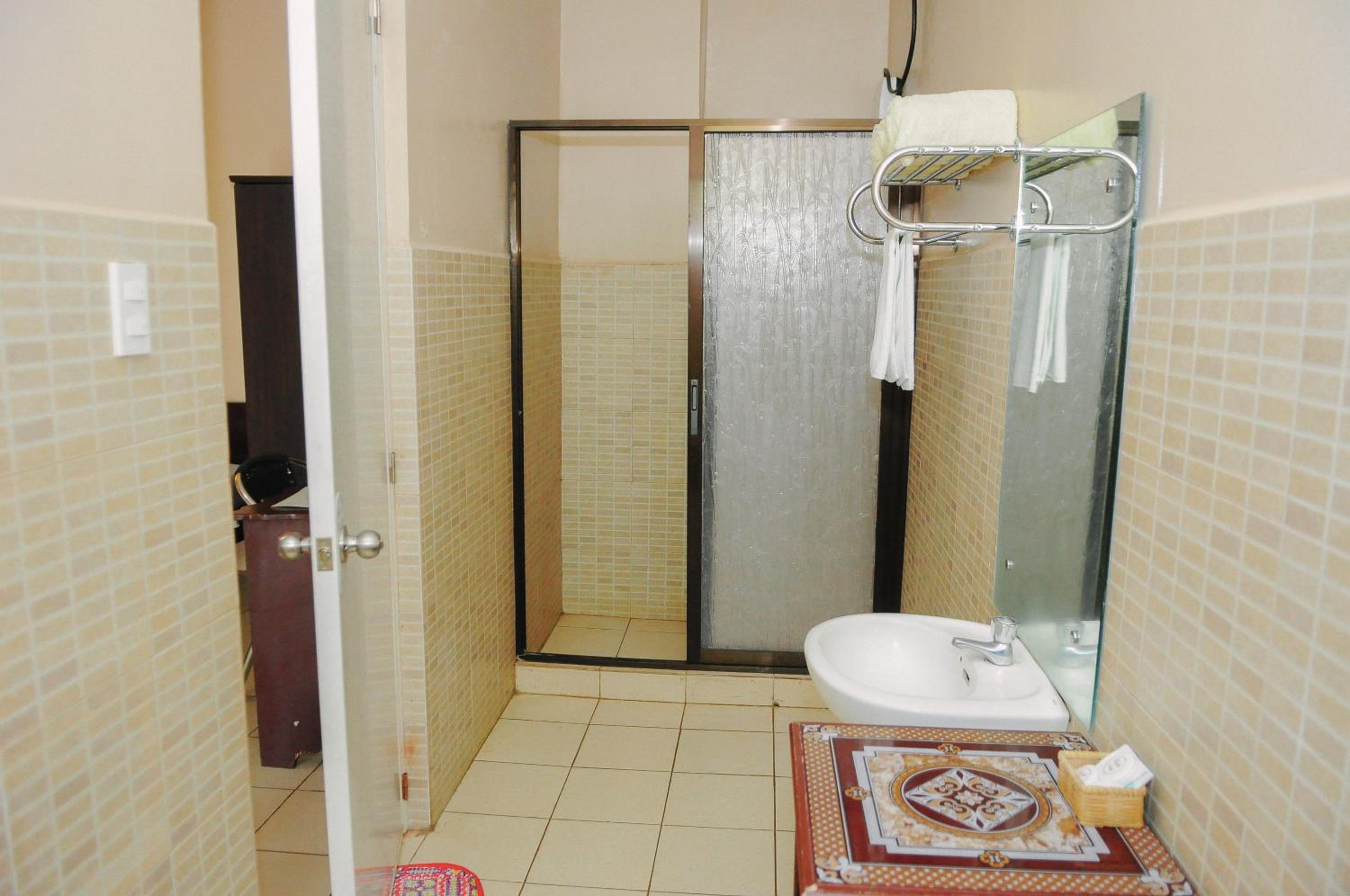 The bathroom in the room is designed very poorly. The dip to the shower drain is not done well so water gets trapped outside of the shower area and sometimes flows into the bedroom.