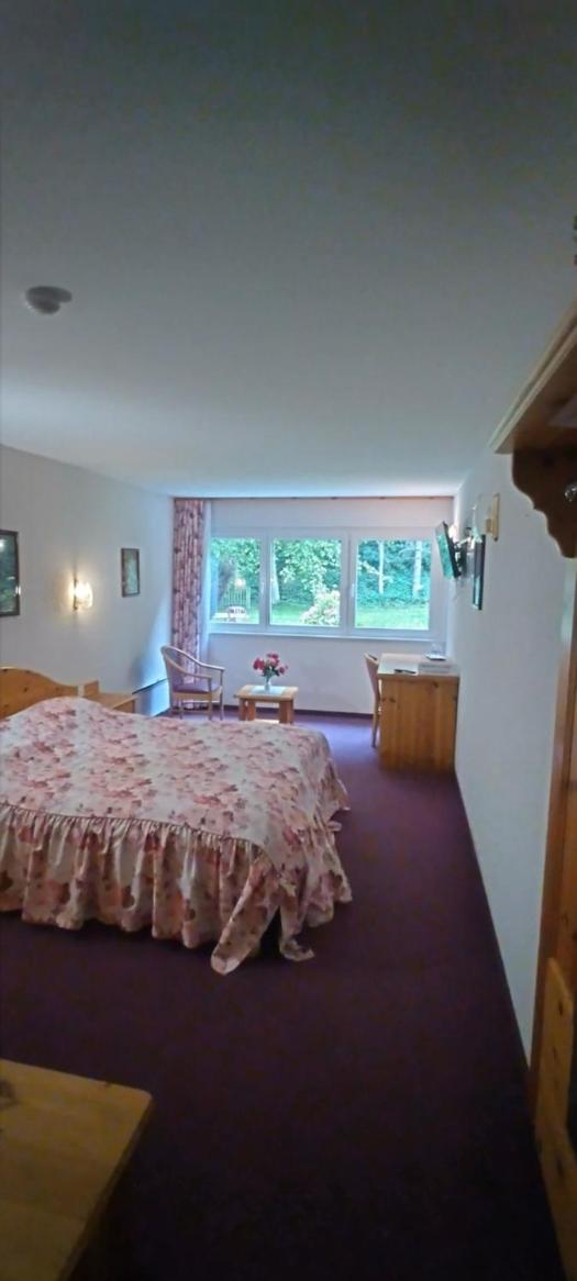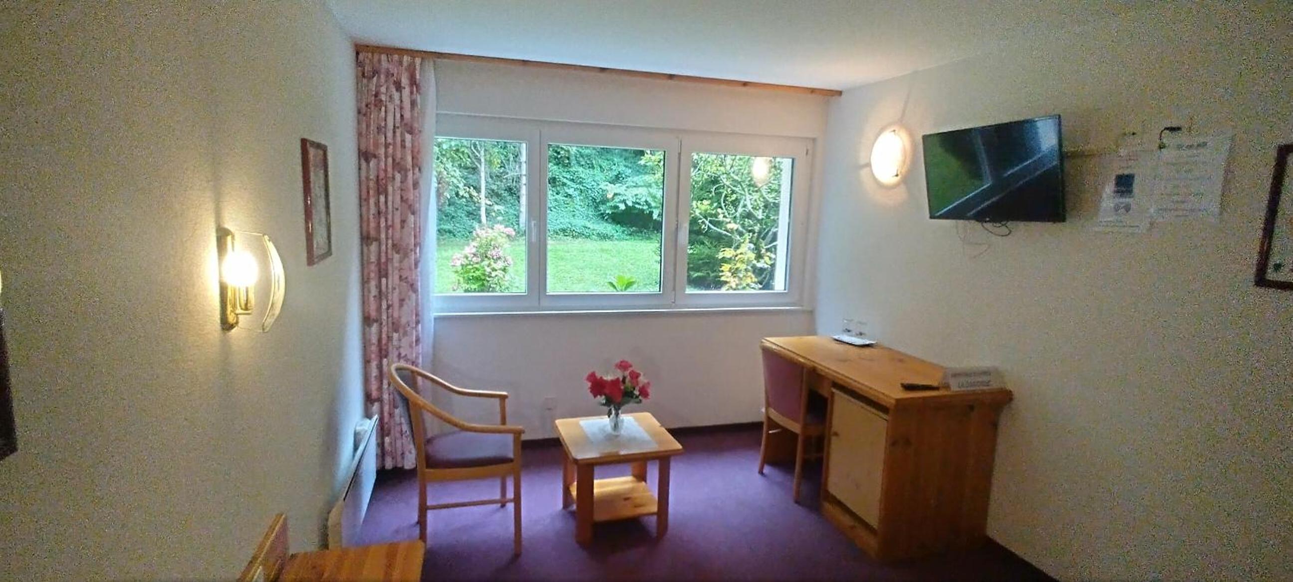 Die Unterkunft war für uns praktisch gelegen nahe an unserem Endziel Bisse du Trient. Das Zimmer war überraschend gross. Die Sicht ins Grüne und auf den Wasserfall hat uns gefallen.