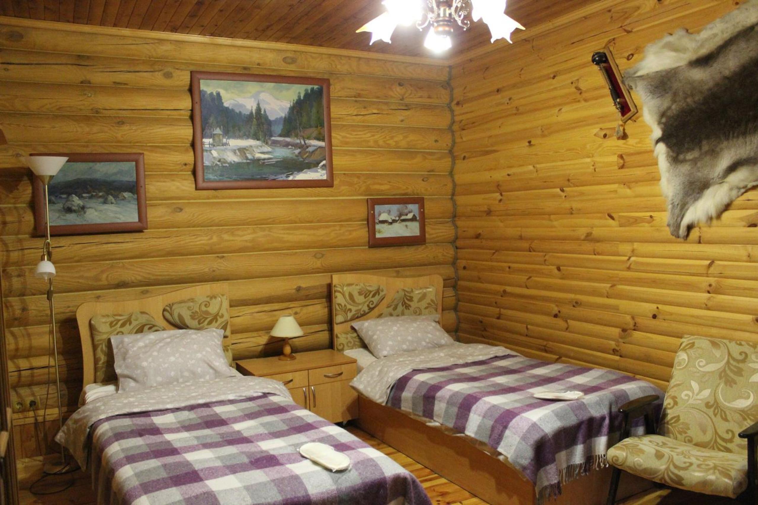Уютный номер в деревянном срубе. Необычно и уютно.